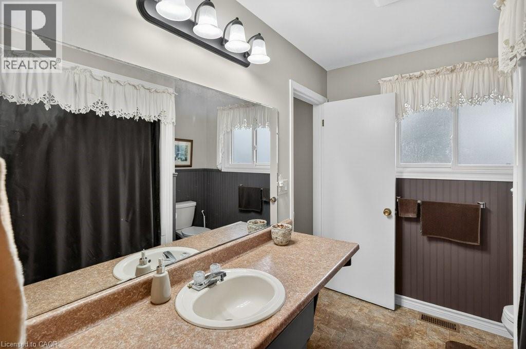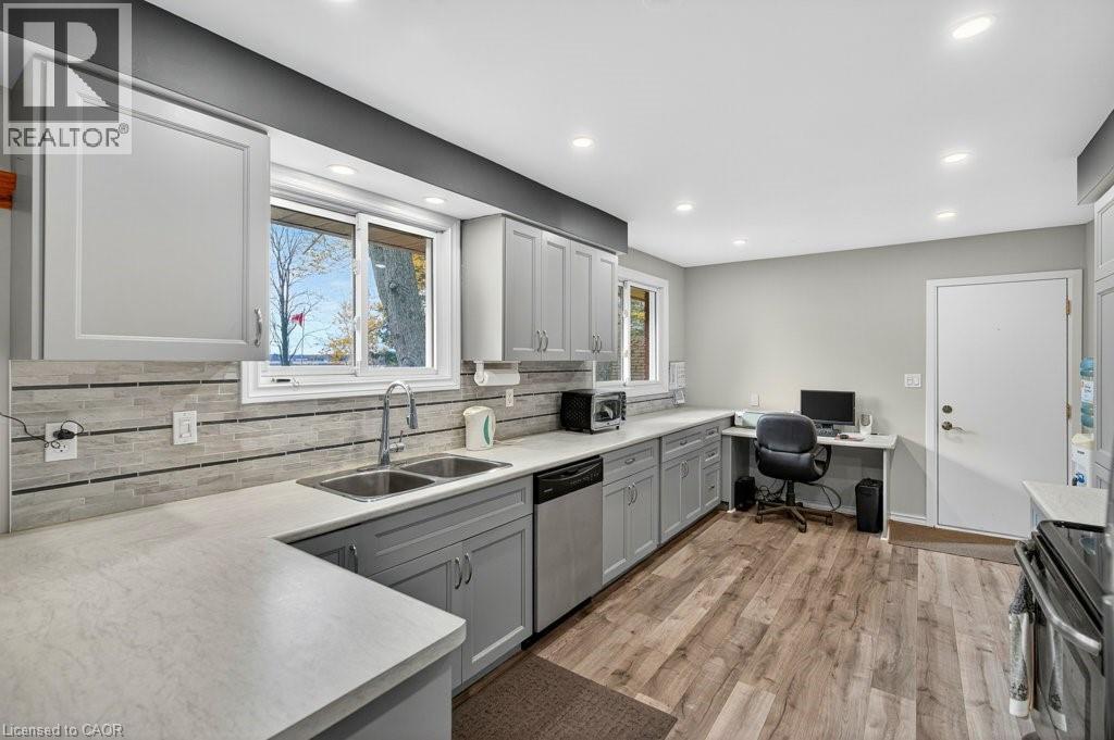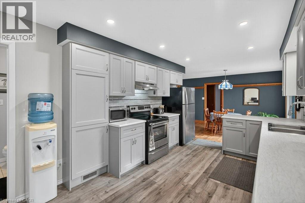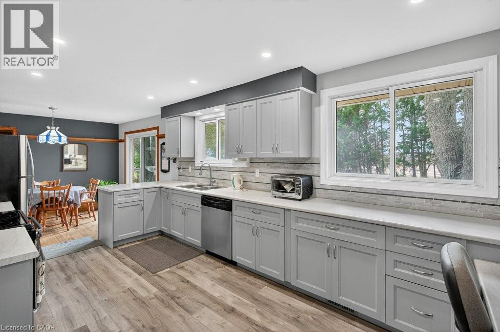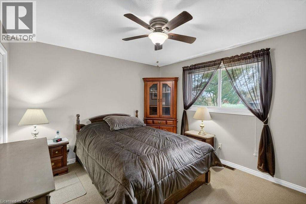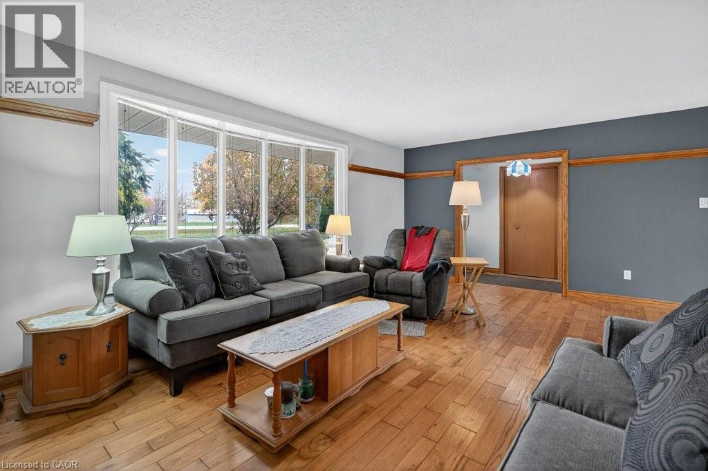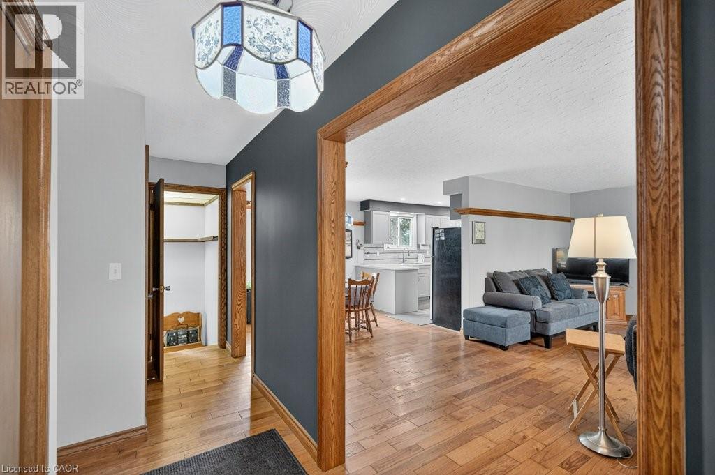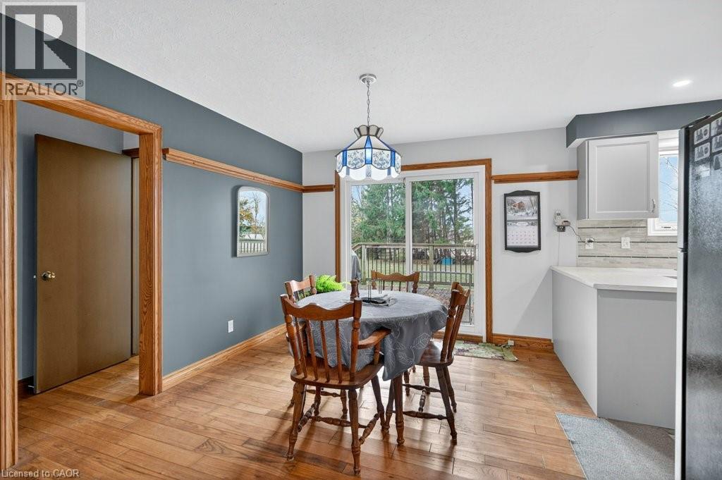 Welcome to this beautiful all-brick bungalow, perfectly nestled on just over an acre and surrounded by mature trees that provide exceptional privacy and a peaceful country feel. This property combines comfort, space, and natural beauty, with plenty of room to enjoy both inside and out. Step inside to discover a warm and welcoming home. The large living room features hardwood floors, a picture window that floods the space with natural light, and a cozy wood-burning fireplace with an updated insert. The adjacent dining area features patio doors that lead to a spacious two-tier deck, ideal for outdoor dining, entertaining, or simply enjoying the peaceful backyard views. The updated kitchen offers plenty of cupboard and counter space, a built-in desk area, and convenient inside access to the garage. There are three generously sized bedrooms, each with a closet, a 4-piece bathroom with ensuite privileges to the primary bedroom, and a second 3-piece bathroom for added convenience. The unfinished basement provides endless potential. With a walk-up to the garage and a separate entrance from the rear yard, it’s an ideal setup for a future in-law suite, recreation area, or workshop. Outside, the possibilities are just as impressive. Enjoy a property large enough for a pool, gardens, or even a chicken coop. There’s so much outdoor space to dream with and make your vision come to life. The peaceful surroundings and mature landscaping create a true sense of retreat. Over the years, the owner has thoughtfully maintained and updated the property, including the roof (2012), installation of gutter guards, a new asphalt driveway, updated pump and pressure tank, UV filtration system, wood fireplace insert, and a refreshed kitchen, among other improvements. If you’ve been looking for a home that offers space, privacy, and potential in a beautiful natural setting, this charming bungalow is one you won’t want to miss. (id:51158)
