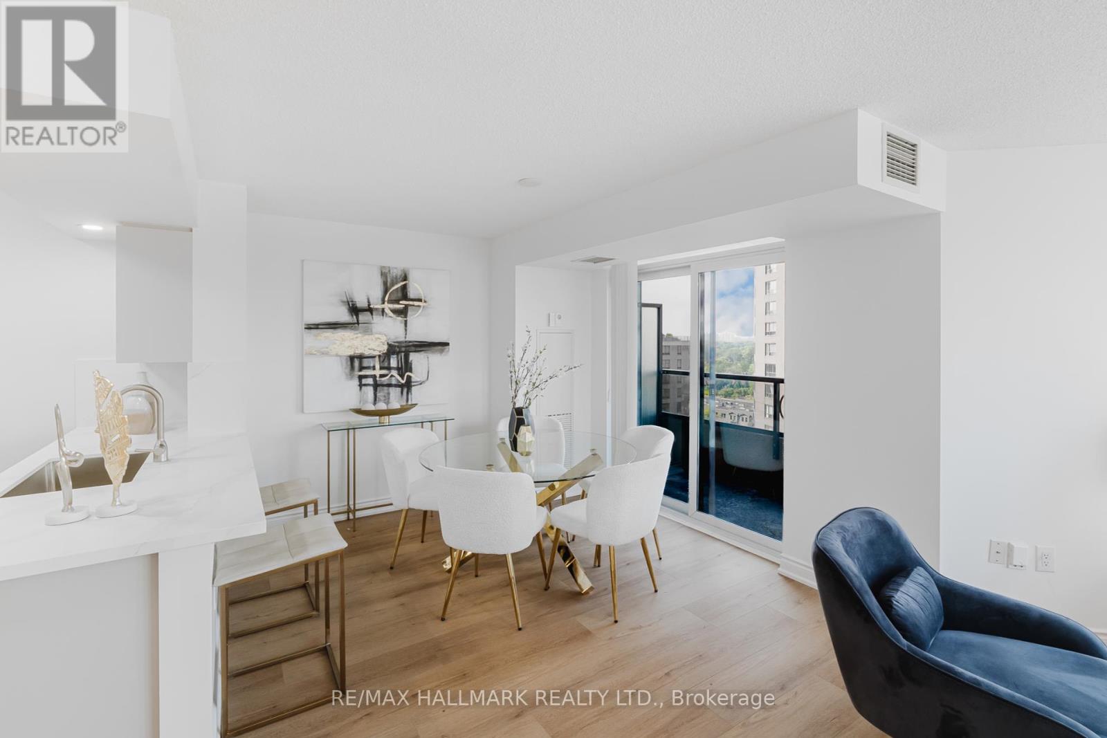 Grand Triomphe II by Tridel. This stunning residence features two spacious bedrooms and a large den, perfect for a home office or easily adaptable as a third bedroom. Recent upgrades include: new laminate flooring (except washrooms), modern kitchen, Stainless Steel appliances (Stove is almost. 3 years old), quartz countertop and backsplash, and a fresh professional paint job all making this home move-in ready. The building is exceptionally well managed and offers an impressive collection of luxury amenities, including: 24-hour concierge, Fully equipped fitness centre with yoga room and golf simulator, indoor pool, sauna, steam room, party room, theatre, games/billiards room, rooftop BBQ terrace and guest suites. Ideally located, the property is just steps from Finch Subway Station, GO, YRT and Viva Transit, and within walking distance to Mel Lastman Square, parks, grocery stores, the library, and a wide selection of restaurants and Cafe. Excellent choice for families seeking proximity to top-rated schools, or professionals who value flexible living space and the convenience of a vibrant urban lifestyle. Two Parking and One Locker included. (id:51158)