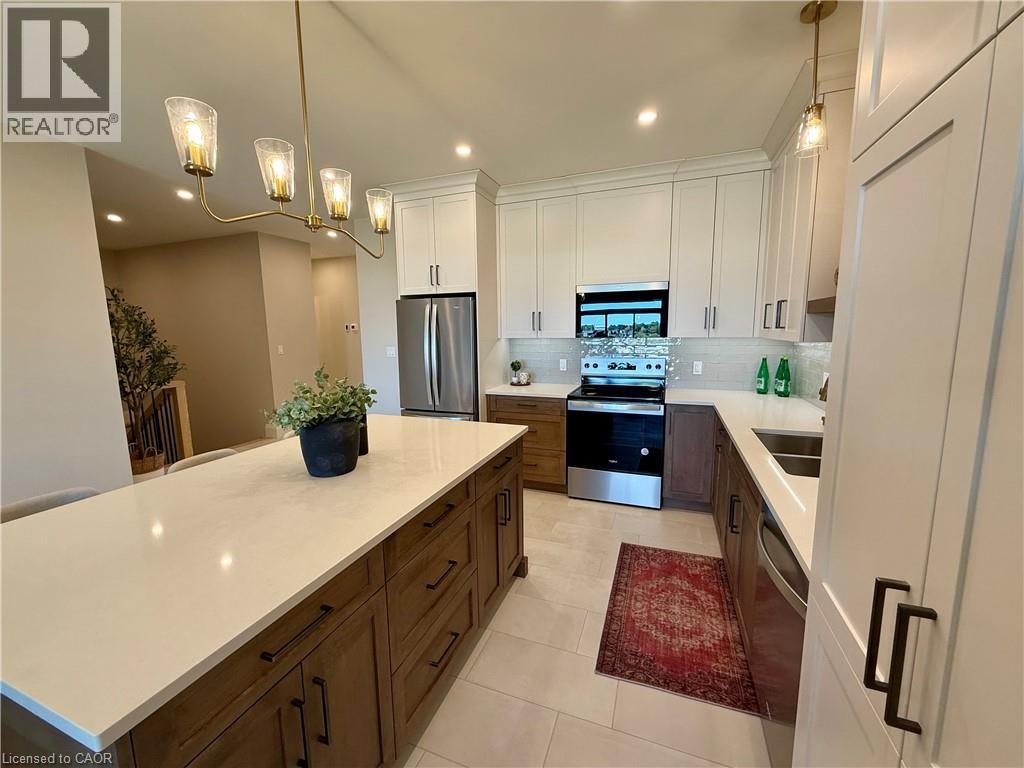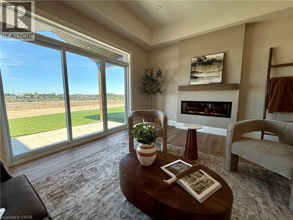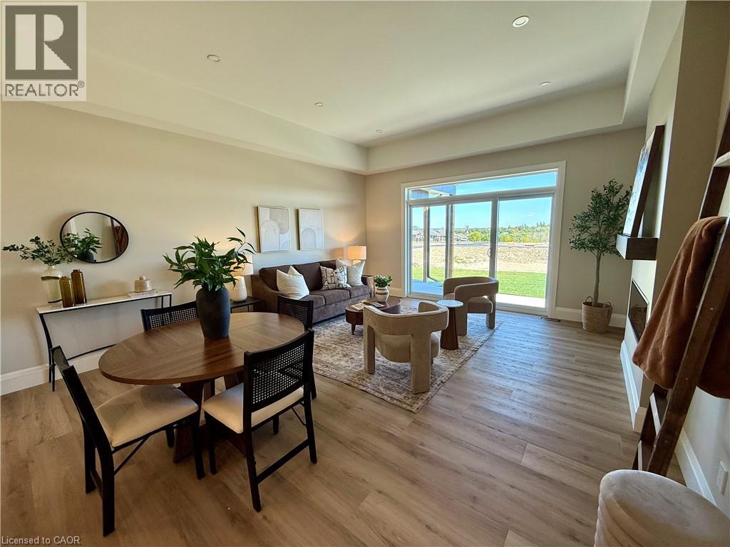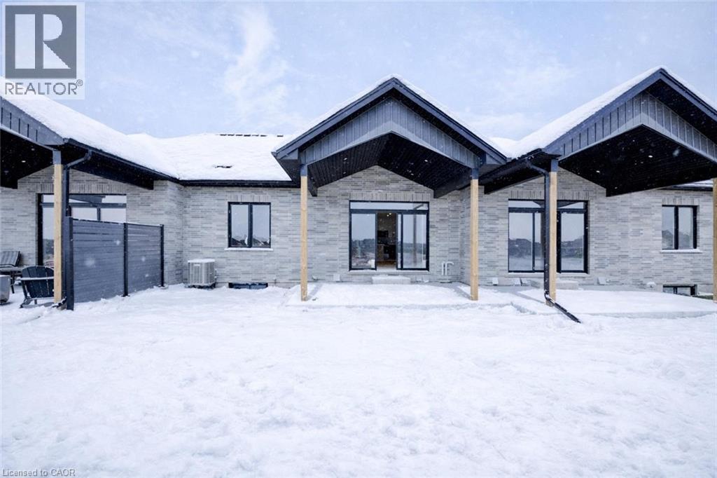 Downsize without compromise in this beautifully crafted end unit bungalow townhome by Duimering Homes, located at the quiet end of Bedell Drive in Drayton. This newly built home offers low maintenance living with elevated finishes throughout. The bright open concept layout features a vaulted great room ceiling, 9’ ceilings, oversized windows, and an electric fireplace with wood mantle. The gourmet kitchen showcases quartz countertops, custom full height cabinetry, stainless steel appliances, and a large island overlooking the living and dining areas. Enjoy a covered rear patio with partial privacy fencing, two generous bedrooms including a primary suite with walk in closet and spa inspired ensuite, plus main floor laundry. Complete with a fully finished attached oversized single car garage and double wide paved driveway plus a lovely covered front porch. Quiet location offering refined single level living in a welcoming small town community in one of the most indemand neighbourhoods built by the premier local home builder. (id:51158)