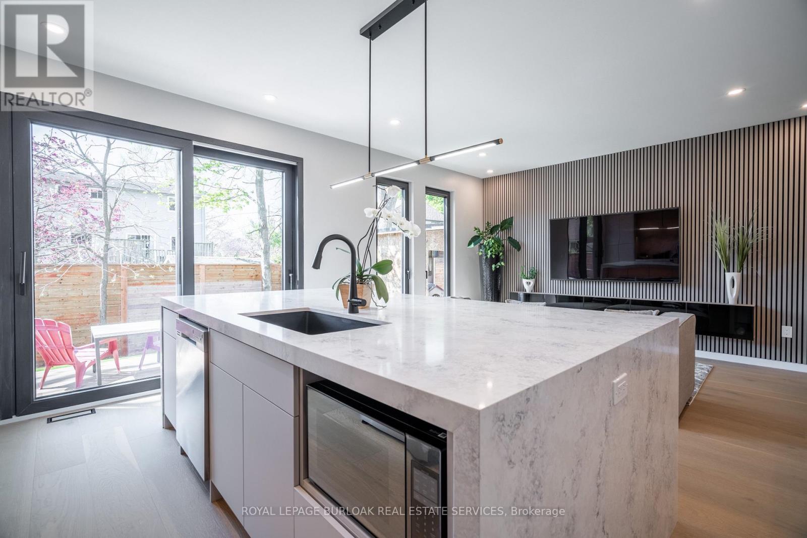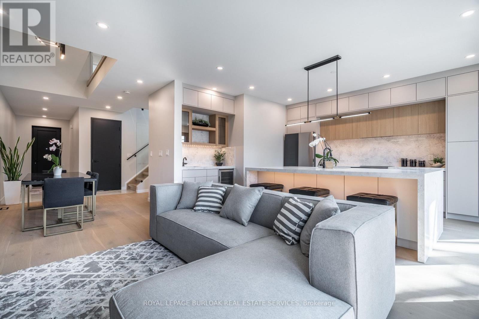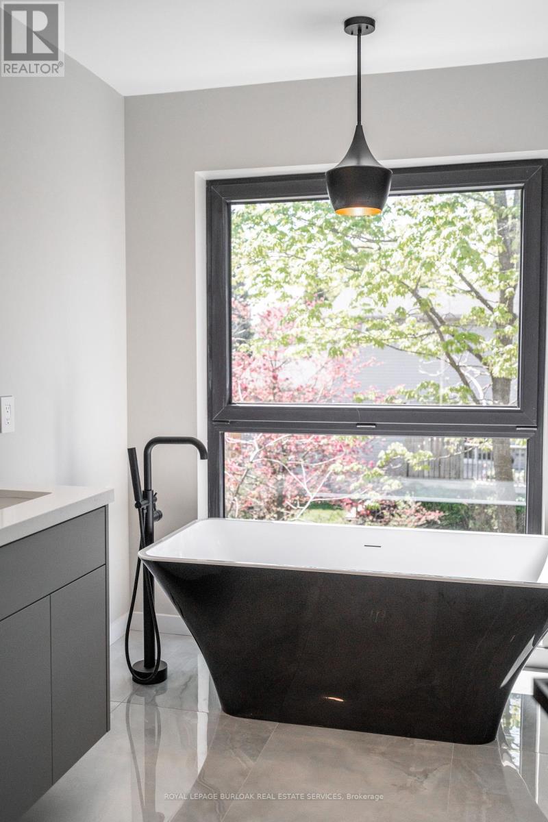 Remarkable legal duplex offering 3,535 sq. ft. of high-end living with two self-contained units! The main unit spans three levels with 4 spacious bedrooms, 3 full bathrooms plus a powder room, a chef-inspired kitchen with quartz waterfall island, custom coffee bar with beverage fridge, and a stunning third-floor retreat featuring a stunning kitchenette with Brazilian granite and two rooftop terraces. Premium finishes include 8-inch European oak hardwood floors (no carpet), European tilt-and-turn windows, frameless glass railings, solid wood doors with brass hardware, imported tile, and 9-ft smooth ceilings. The completely separate lower-level apartment is fully registered with the city, separately metered, and features a private entrance, 9-ft ceilings, full kitchen, 3-piece bath, laundry rough-ins, and superior insulation, ideal for an income-generating suite or multi-generation living. Outdoors, enjoy a zero-maintenance backyard with composite decking and pet-friendly turf. Situated close to amenities, transit, and schools, this rare offering combines luxury, versatility, and long-term value. (id:51158)