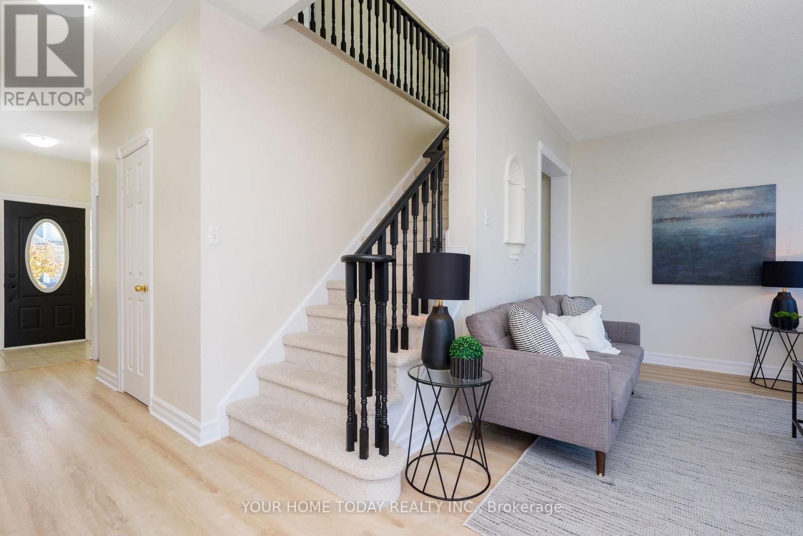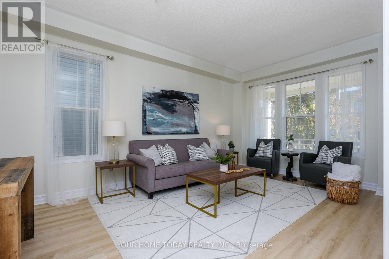 A charming covered front porch welcomes you to this 1,850 sq. ft. two storey home in the heart of a vibrant family neighborhood, close to recreation centers, shopping, GO Transit, and the friendly small town lifestyle where neighbors know you by name. This warm and bright 4 bedroom, 2.5 bath home features 9 foot ceilings on the main floor, freshly laid vinyl plank flooring, brand new carpet upstairs, and professional painting throughout. With an upgraded kitchen showcasing sleek quartz countertops and proximity to excellent schools, it offers the perfect blend of comfort, style, and convenience. (id:51158)