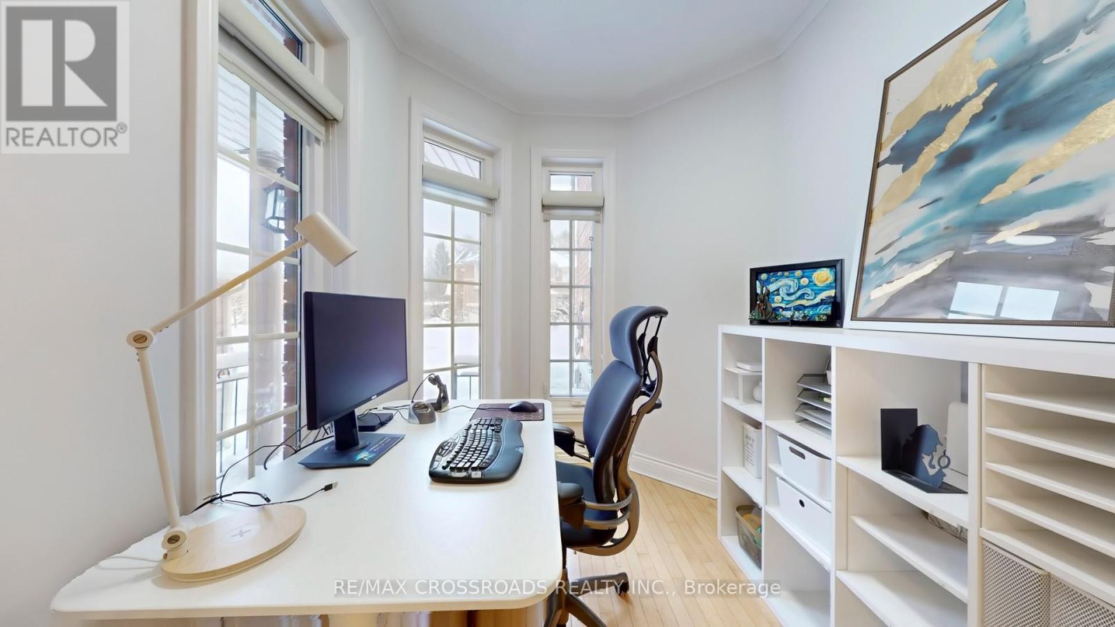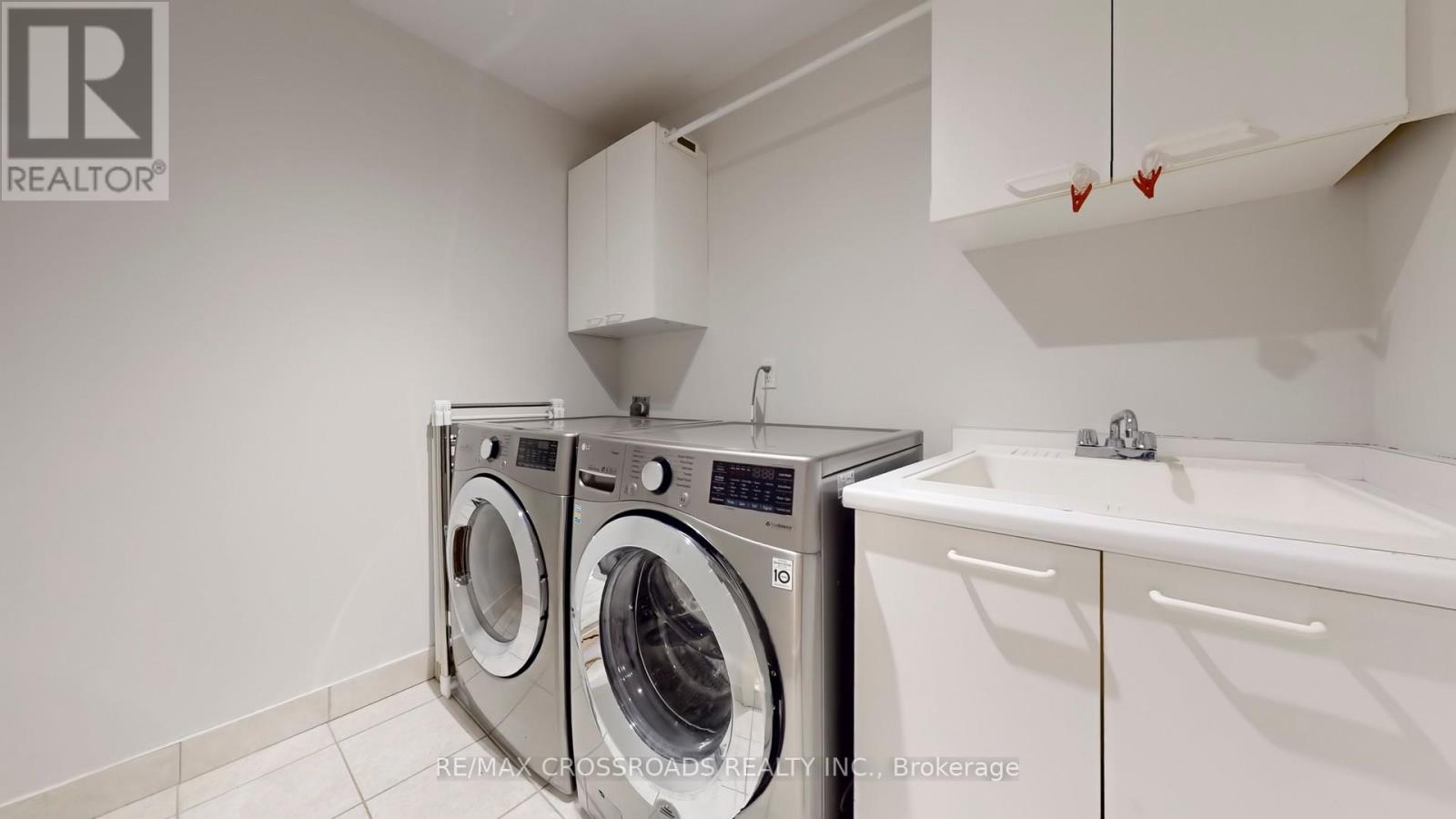 Tucked into the desirable Westbrook community, this freehold townhome backs onto tranquil mutual woods and offers approximately 3,000 sq ft of finished living space. The main floor features 9-ft ceilings, a bright open-concept living area, and a front-facing office ideal for work-from-home. The modern kitchen with breakfast area walks out to a treetop deck overlooking serene, resort-like views. Upstairs, enjoy second-floor laundry, spacious bedrooms, and a primary suite with a fully updated ensuite (2022). The finished walk-out basement expands your living space and opens to a deep backyard with interlocking completed in 2023. Freshly painted and thoughtfully upgraded with newer HVAC (furnace 2025, heat pump 2024, rented water heater 2025), updated stove/range hood (2021), washer and dryer (2021), and customized blinds throughout. Conveniently located near parks, trails, transit, and top-ranked schools. Low POTL fee of $224.23/month includes grass cutting, snow removal, and exterior maintenance-an ideal blend of nature, comfort, and convenience. (id:51158)