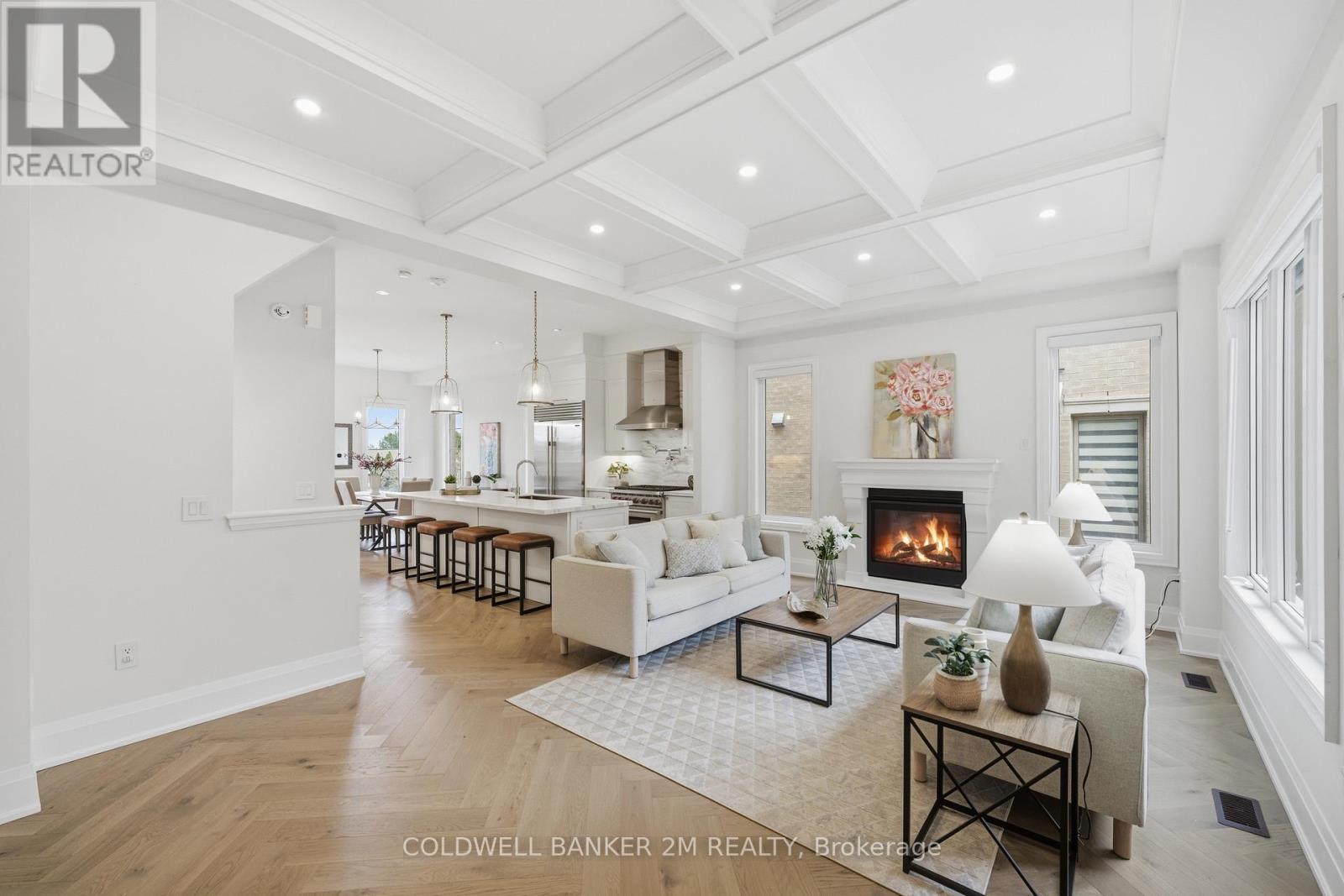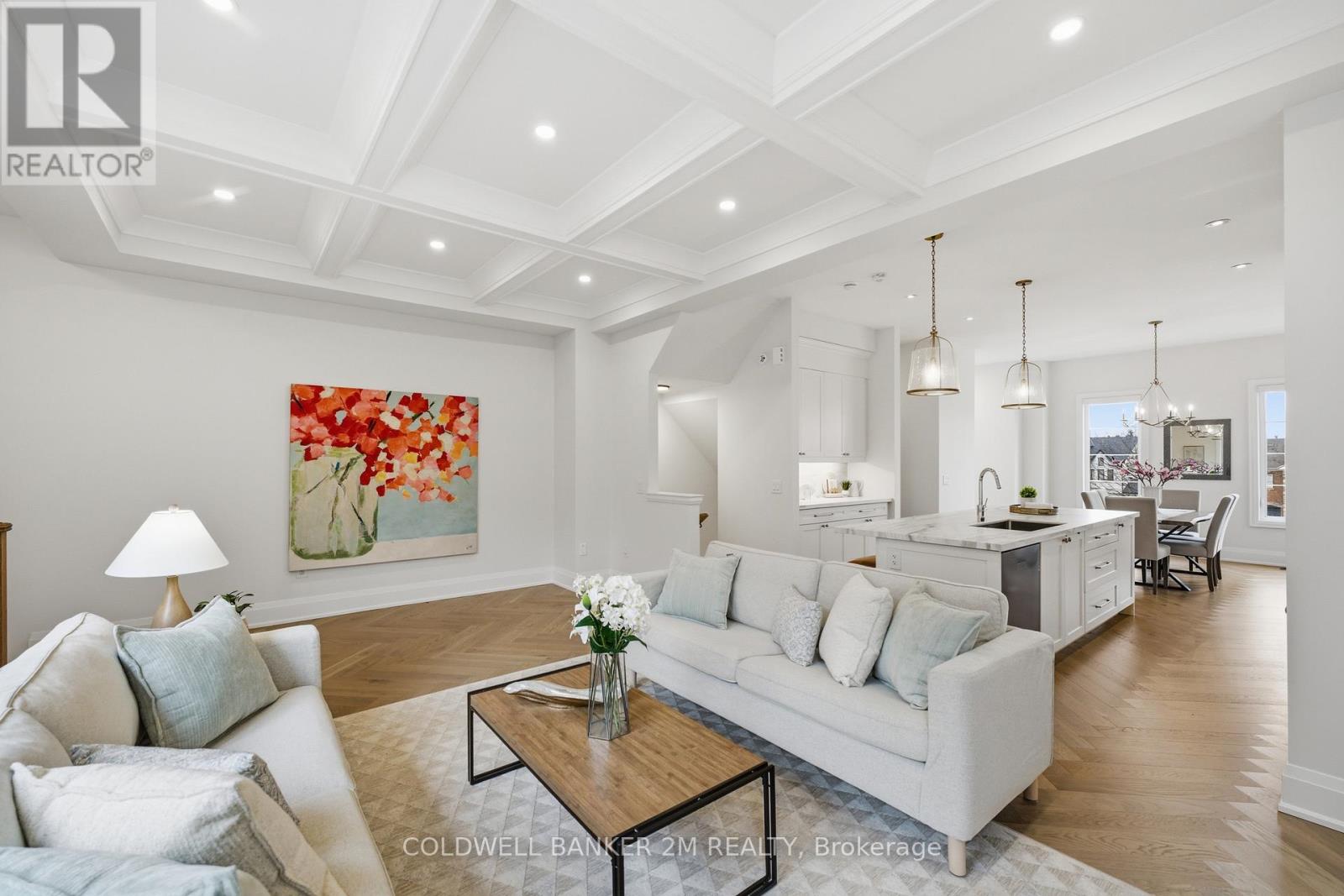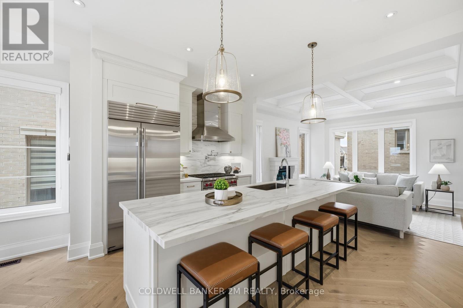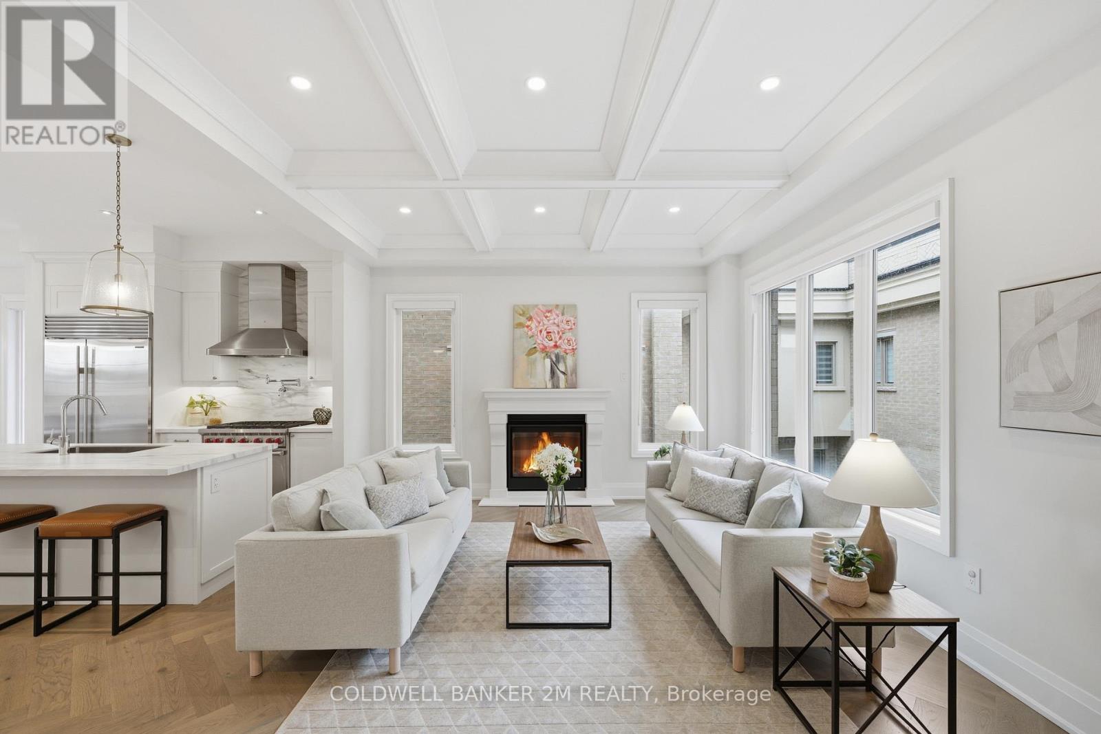 A rare offering that blends sophisticated design with unmatched versatility-this sun-filled end-unit townhome lives like a semi-detached residence and offers the rare convenience of a two-car garage. Inside, you'll find approximately 3,470 sq. ft. of refined living space, complemented by a beautifully finished, fully detached one-bedroom, 584 sq. ft. coach house.Inside, elevated design meets everyday comfort. The main level showcases 10-foot ceilings and rich herringbone white oak flooring, paired with a striking waffle ceiling that creates a refined architectural statement within the open-concept living space. At the heart of the home, a true chef's kitchen features premium appliances, including a Sub-Zero refrigerator, a Wolf six-burner gas stove, and an ASKO dishwasher-crafted for both intimate dinners and grand entertaining. The upper level retreat is nothing short of spectacular. The primary suite features soaring ceilings, a spacious walk-in closet, and a spa-inspired five-piece ensuite with a deep soaker tub-your private escape at the end of the day. Two additional bedrooms, a beautifully appointed main bath, and a thoughtfully designed laundry room with quartz surfaces complete the space. What truly sets this property apart is the detached coach house - fully self-contained with its own entrance. At 584 sq. ft., it is ideal for extended family, a live-in nanny, guest accommodations, or income potential. Located within the highly sought-after Bayview Secondary School catchment and close to Richmond Hill Montessori, as well as Hillcrest Mall, Highways 404 and 407, parks, transit, and everyday amenities, this property offers an exceptional balance of luxury and convenience. This is luxury living-reimagined. (id:51158)