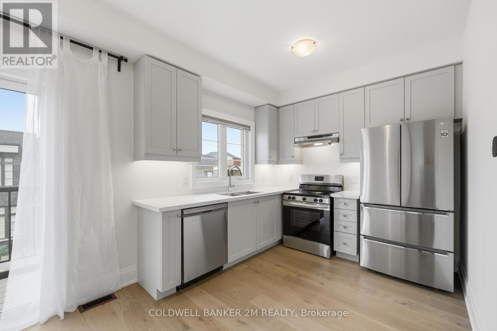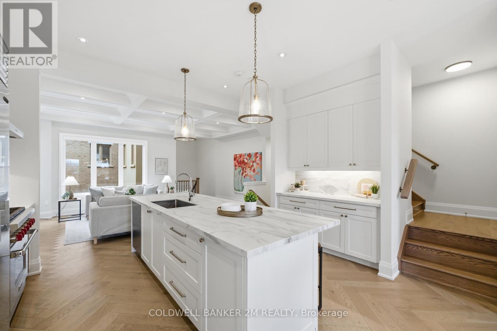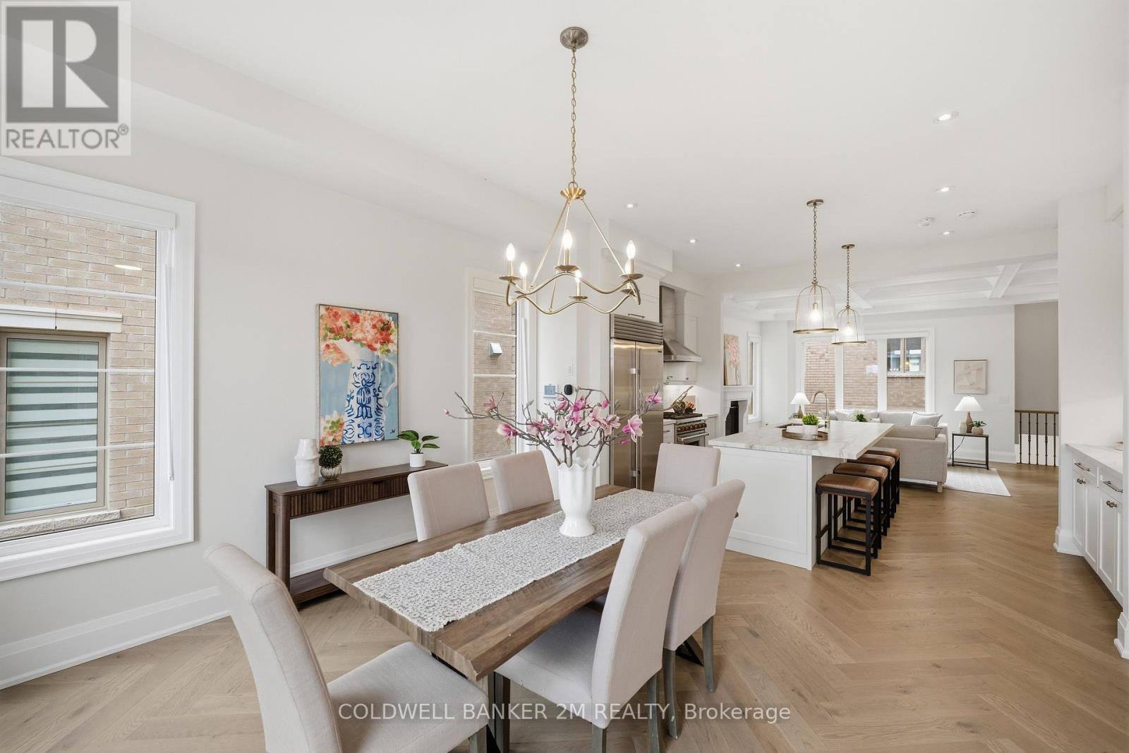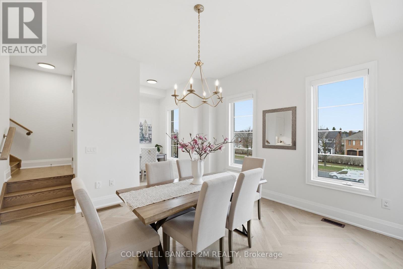 A rare offering that blends sophisticated design with unmatched versatility-this sun-filled end-unit townhome lives like a semi-detached residence and offers the rare convenience of a two-car garage. Inside, you'll find approximately 3,470 sq. ft. of refined living space, complemented by a beautifully finished, fully detached one-bedroom, 584 sq. ft. coach house.Inside, elevated design meets everyday comfort. The main level showcases 10-foot ceilings and rich herringbone white oak flooring, paired with a striking waffle ceiling that creates a refined architectural statement within the open-concept living space. At the heart of the home, a true chef's kitchen features premium appliances, including a Sub-Zero refrigerator, a Wolf six-burner gas stove, and an ASKO dishwasher-crafted for both intimate dinners and grand entertaining. The upper level retreat is nothing short of spectacular. The primary suite features soaring ceilings, a spacious walk-in closet, and a spa-inspired five-piece ensuite with a deep soaker tub-your private escape at the end of the day. Two additional bedrooms, a beautifully appointed main bath, and a thoughtfully designed laundry room with quartz surfaces complete the space. What truly sets this property apart is the detached coach house - fully self-contained with its own entrance. At 584 sq. ft., it is ideal for extended family, a live-in nanny, guest accommodations, or income potential. Located within the highly sought-after Bayview Secondary School catchment and close to Richmond Hill Montessori, as well as Hillcrest Mall, Highways 404 and 407, parks, transit, and everyday amenities, this property offers an exceptional balance of luxury and convenience. This is luxury living-reimagined. (id:51158)