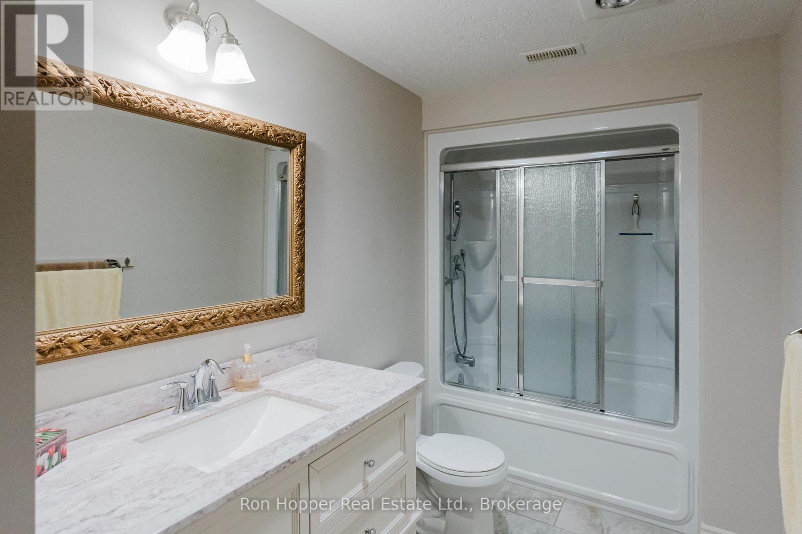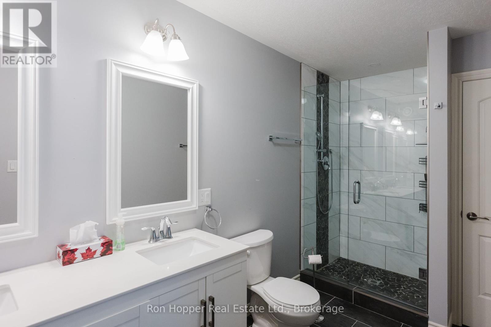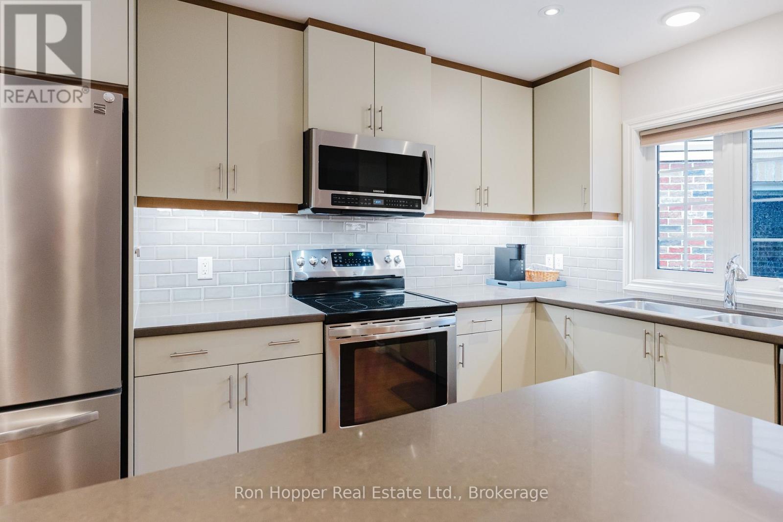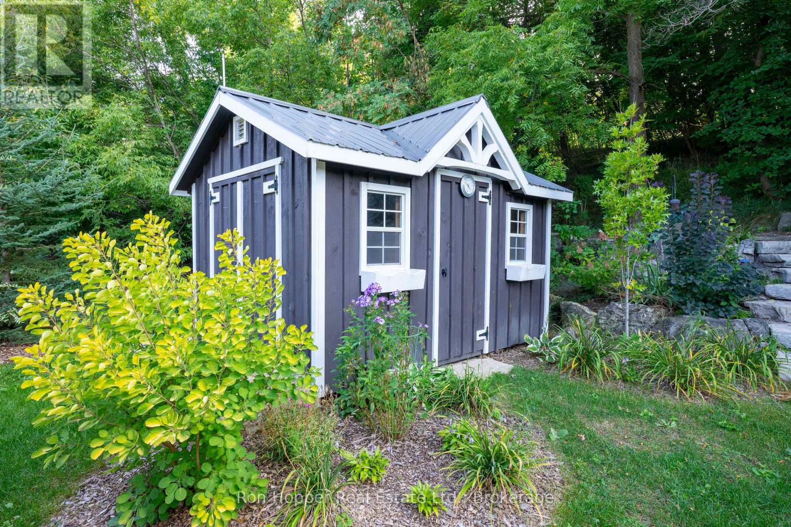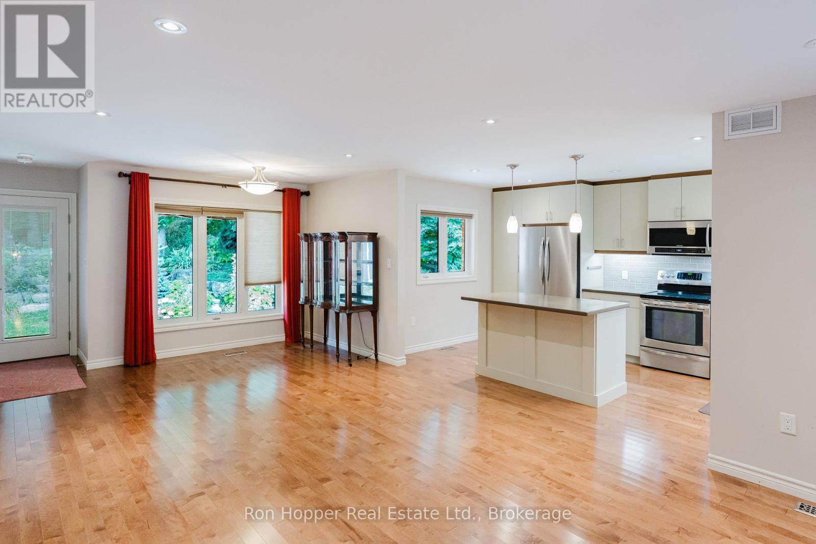 This beautiful freehold detached home backs onto the escarpment and combines an upscale living with natural outdoor beauty. This home will surprise you with over 2,000 square feet of total finished living space and its bright, modern open-concept design. The main floor features stunning hardwood floors, vaulted ceilings, pot lights, the main foyer has direct entry from the garage, complete with mezzanine with storage and a two piece bath. The heart of the home is the modern kitchen, perfect for entertaining, with stainless steel appliances, a large island, and a seamless flow into the dining and living area with walkout to the rear deck and professionally landscaped backyard. The main level also has the primary bedroom which boasts a spa-like ensuite with walk-in shower and large closet with built-ins, then there is a second good sized bedroom also with a large closet. The fully finished lower level offers expansive additional living space, with a bright family room with gas fireplace, two more bedrooms, another full bathroom, laundry, utility room and more storage space. Relax in the backyard with a private deck and awning surrounded by beautiful professionally landscaped yard and a large storage shed. Green Ridge Estates is a quiet friendly freehold community (no condo fees) with walking distance to downtown shopping, parks, the library, and is also close to the Julie McArthur Recreational Centre. Do not miss the chance to experience simple, luxury living. (id:51158)
