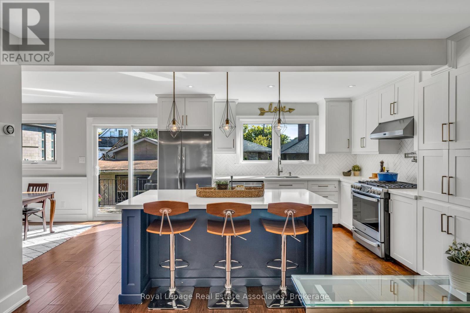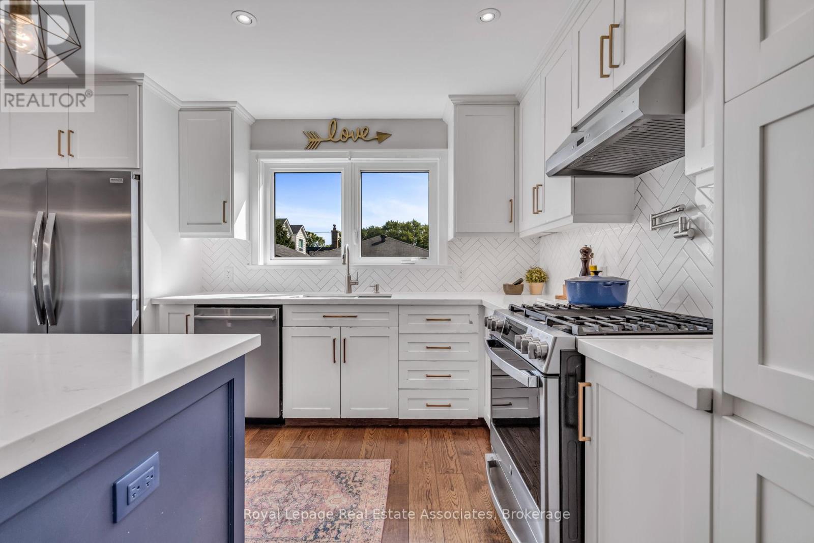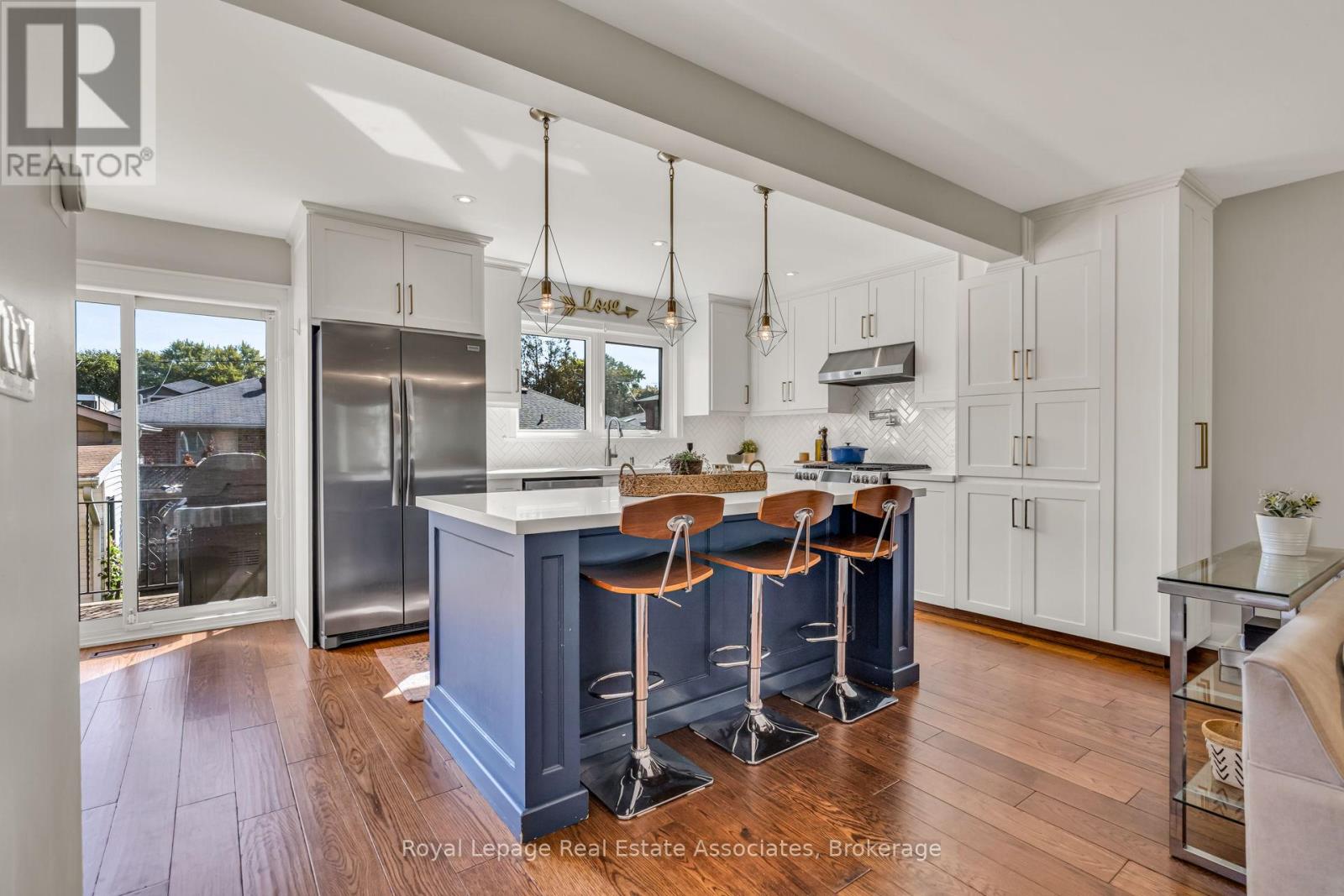 A perfect tenth. Detached 2-storey in Lakeview with main floor reno, bright open layout, and timeless red brick curb appeal. White kitchen with quartz counters, gold hardware, and island seating. Finished lower level with separate entrance, kitchenette, and gas fireplace. Updated baths, solid-core doors, new siding, garage door & front door (2024). Fenced yard with deck, stone patio & shed. Close to Port Credit, GO, QEW, and the future Lakeview Village. This pocket of Mississauga has that real neighbourhood feel, friendly faces, leafy streets, and a front-porch kind of pace! (id:51158)