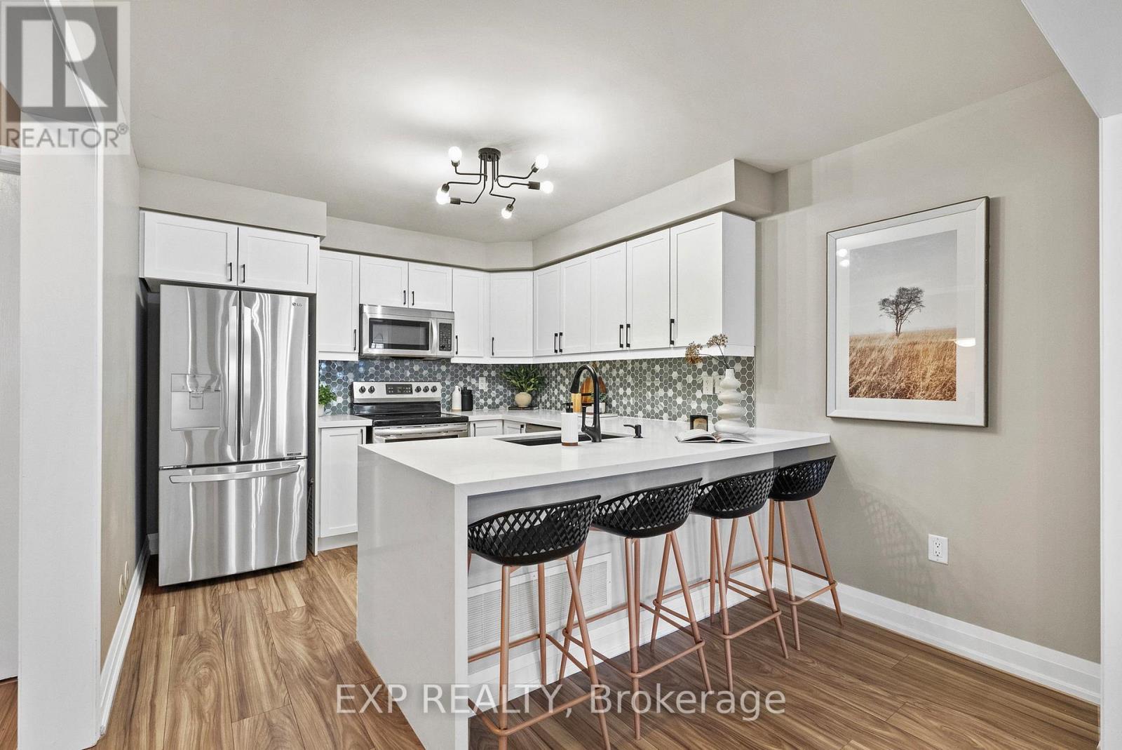 Welcome home to this beautifully updated freehold three-storey townhome, built by Mattamy Homes and ideally located in Milton's sought-after Hawthorne Village, a well-established community known for its walkability, family-friendly atmosphere, and strong sense of neighbourhood.Step inside and head up to the sun-filled second level, where you'll find the heart of the home. The renovated kitchen features custom Carrara-style quartz countertops with a full waterfall edge, professionally installed to create a timeless focal point. The extended peninsula offers generous seating, making it the perfect place for morning coffee, casual meals, or gathering with friends. The open-concept living and dining area flows seamlessly to a private balcony, ideal for relaxing at the end of the day or enjoying warm summer evenings.The home has been freshly painted throughout, is completely carpet-free, and showcases new flooring on all levels, including a newly updated staircase, delivering a clean, modern look and low-maintenance living. Updated light fixtures throughout further enhance the bright, welcoming feel.Upstairs, three comfortable bedrooms provide flexibility for families, young professionals, or those working from home. Both bathrooms have been thoughtfully updated with new ceramic flooring, modern fixtures, and new toilets, while the powder room features a new vanity with quartz countertop and backsplash. Convenient second-level laundry located beside the kitchen and powder room adds everyday ease.The ground level offers a versatile den with direct garage access, ideal for a home office, workout space, or cozy retreat. Parking for three vehicles, including one in the garage and two on the private driveway, adds rare convenience. Close to top-rated schools, parks, trails, shopping, transit, and the Milton GO Station, this move-in-ready home offers not just a place to live, but a lifestyle that truly works for modern living. (id:51158)