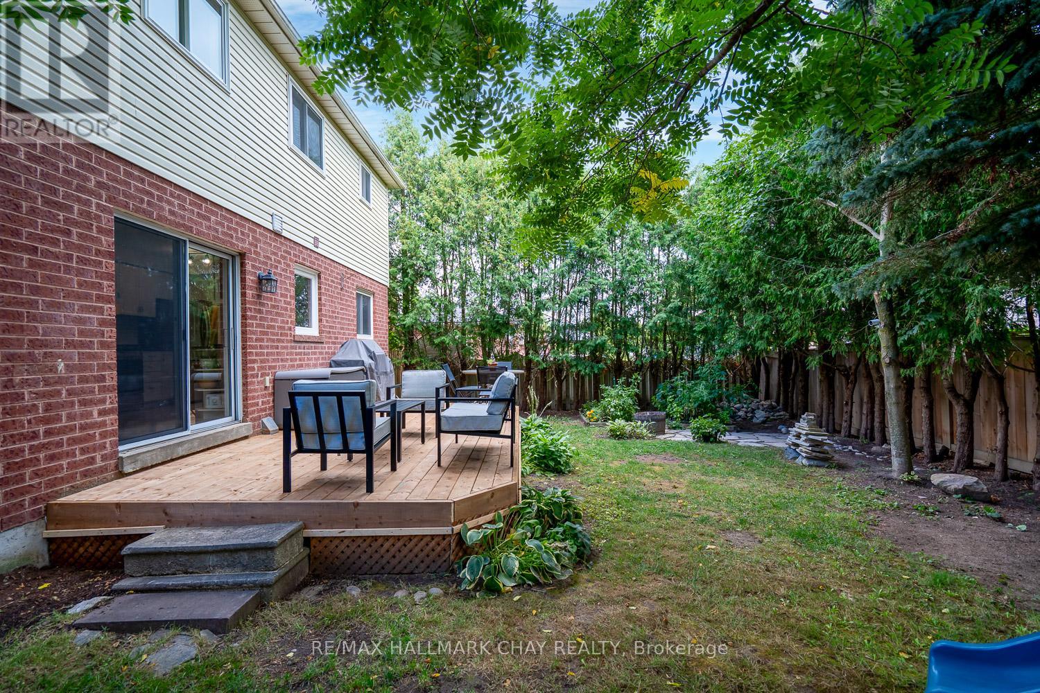 Welcome to this fantastic home on a quiet family friendly street in the heart of Alliston! Inside this well-maintained 3 bedroom, 4 bathroom home you will find may recent updates including built in cabinets & shelving in the kitchen eating area(2024) vanity in main floor powder room(2024) laminate flooring upstairs(2024) & new front walkway(2024). A large & bright primary bedroom with sitting area & 3 piece ensuite upstairs with another two bedrooms & 4 piece bathroom to complete the second level. Downstairs you will find a large rec room with pot lights(2024) & updated 2 piece bathroom. Main level has a walkout to the new deck(2025) from the eat-in kitchen area & you will certainly enjoy entertaining in this very private & fully fenced backyard! Many mature trees line the perimeter in the backyard and offer upmost privacy. Double car garage with convenient access directly to main floor laundry room. Close to schools, parks, amenities, hospital and Honda plant. A definite must see! (id:51158)