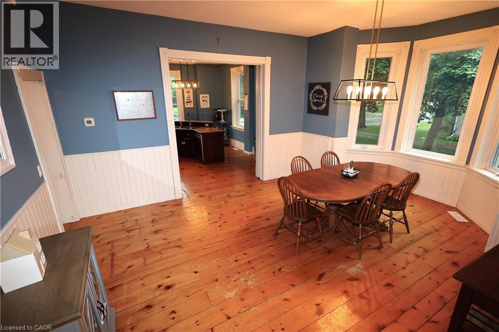 Move-In Ready Century Home with Heated Shop & In-Law Potential! Welcome to your family’s next chapter! This fabulous yellow-brick century home offers the charm of yesteryear with modern updates in all the right places. Situated on a generous 82’ x 132’ landscaped lot, this home is ideal for growing families seeking comfort, character, and convenience. Step onto the inviting front porch, through the stately red door, and into a spacious foyer with soaring 10’ ceilings that showcase the grandeur of this classic home. Original pine floors, pot lights, and bright principal rooms create a warm, welcoming atmosphere throughout. The heart of the home is the updated kitchen featuring stainless steel appliances, laminate countertops, and a massive center island perfect for meal prep or casual family breakfasts. Adjacent is the formal dining room and a large family room/mudroom with sliders to two decks — perfect for summer entertaining with approx. 460 sq ft of decking. The main floor has updated 2-piece bath and convenient laundry. Upstairs, discover 4 bedrooms, including a spacious primary suite above the addition, complete with a 4-piece ensuite, large walk-in closet, sitting area, and laminate flooring. The original bedrooms feature charming pine floors, and the main bath offers a double vanity and walk-in shower. Mechanical upgrades include roof, electrical & plumbing, vinyl windows and 2 gas furnaces. Tradesman will love the crown jewel — a 24’ x 32’ heated, plumbed, and insulated shop built in 2017 featuring 2 bays plus a rear drive-through, gas heater, 60 amp subpanel and R22 wall & R50 attic insulation. This home sits on a quiet, family-friendly street close to downtown Harriston and has easy highway access. Don’t miss this rare blend of charm, space, and functionality — ready for your family to move right in! (id:51158)