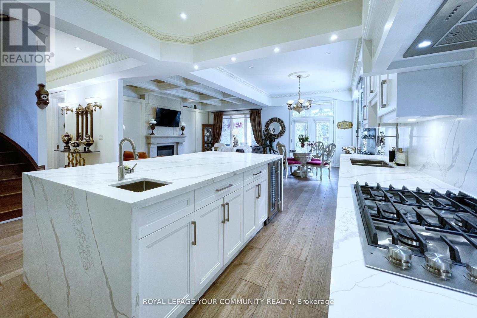 PRICED TO SELL!!!!Rare Opportunity - Prestigious Custom-Built Home on a Massive 50 Ft x 209 Ft Lot!Nestled on a quiet cul-de-sac and surrounded by multi-million-dollar custom homes, this one-of-a-kind residence combines distinguished charm, elegance, and breathtaking curb appeal.Mature trees frame the property, creating a private and prestigious setting that is truly exceptional. A grand custom entry door opens to an awe-inspiring foyer with soaring ceilings that set the tone for the luxurious living spaces beyond. The main floor boasts 10-foot ceilings with waffled detailing, accented bulkheads, and plaster crown moldings. The newly renovated chef's kitchen is complete with built-in JennAir stainless steel appliances, dual sinks, a custom backsplash, a tailored grand island, and built-in wine storage with a wine fridge. The spacious main-floor primary suite features a spa-inspired five-piece ensuite with heated floors. Modern upgrades include a newer AC and furnace (2023) and a Tesla EV charger in the garage, while the third floor offers a loft space ideal for additional storage. The lower level provides an oversized, open-concept three-bedroom apartment with large windows, nine-foot ceilings, and a separate laundry, expanding the living space to nearly 6,000 square feet. Hydronic heated floors are installed (as-is, unused in recent years), adding another touch of comfort and quality. The backyard is a true oasis with a saltwater pool and hot tub, fully landscaped grounds, and a sprinkler system (as-is). Private seating areas create the perfect atmosphere for entertaining family and friends, complemented by the convenience of a three-piece outdoor bath.Enjoy what this gorgeous home has to offer your family and friends ! (id:51158)