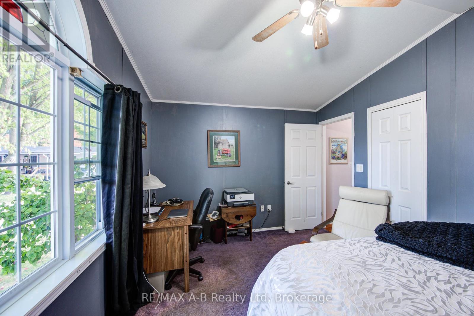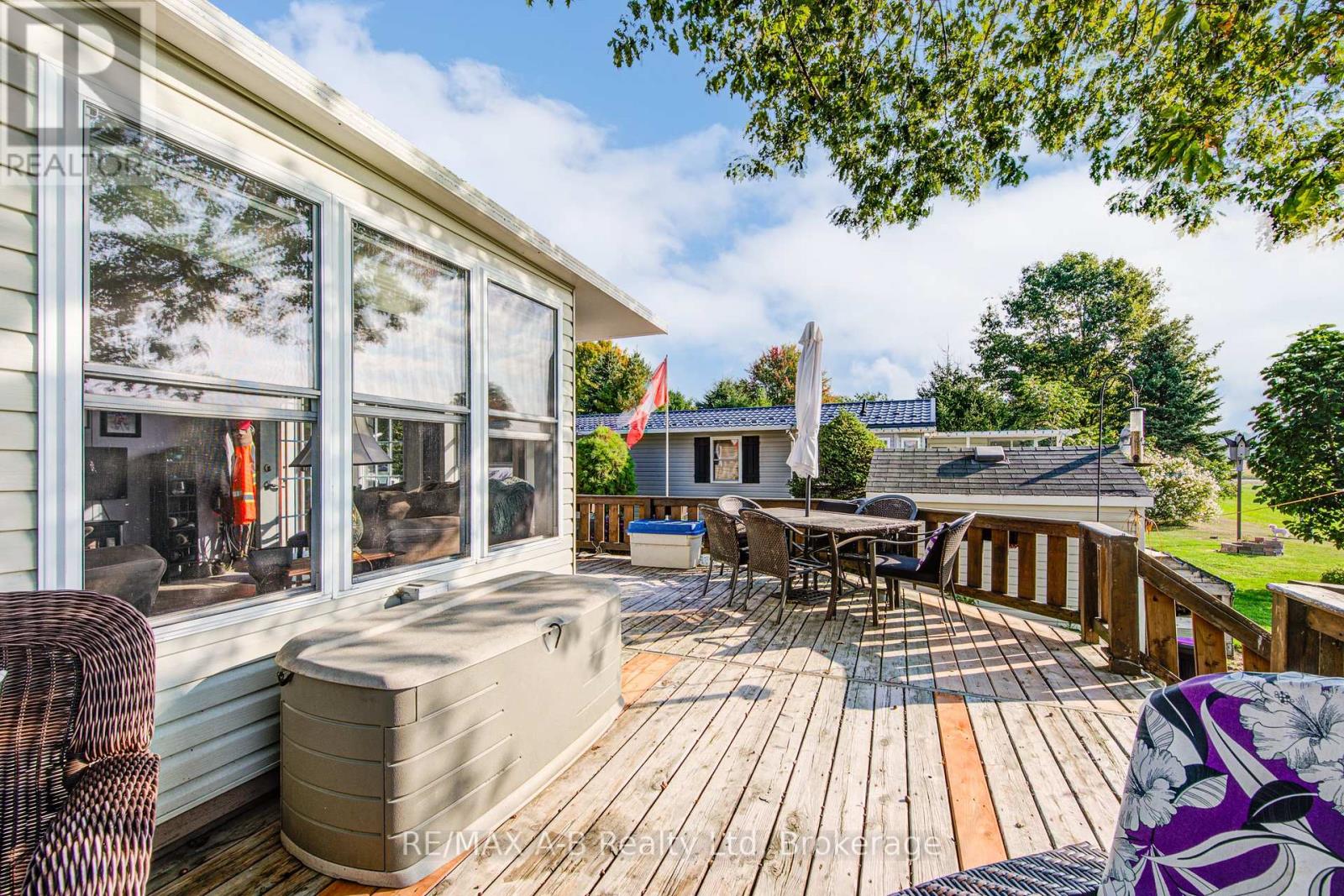 Welcome to this beautifully upgraded home in the highly desirable Happy Hills Retirement Community, perfectly situated with a private backyard overlooking open farmland. This open-concept residence features gleaming hardwood floors and a spacious kitchen with ample cabinetry. With approximately 1400 square feet of living space this lovely property offers 2 bedrooms plus a bright sunroom, 1.5 bathrooms (fully renovated 4 years ago), the home is designed for comfort and functionality. With Quadro fibre optics, you can enjoy seamless streaming or enjoy outdoor living on the private back deck, complete with hot tub hookup. This home also offers generous storage space beneath the home and in the shed complete with hydro hookup. Happy Hills offers resort-style amenities, including controlled gate entry, a recreation hall, indoor heated pool, and golf facilities, providing a vibrant and secure lifestyle. Note with owning a property in the retirement all year living side, you have full access to the facilities on the camp ground side during the camping season, which is ideal for your grand children. The sellers will be installing a new roof in October 2025- which is an added bonus. Don't miss your chance to own in one of the most sought-after locations in the park. Call for your private viewing today. (id:51158)