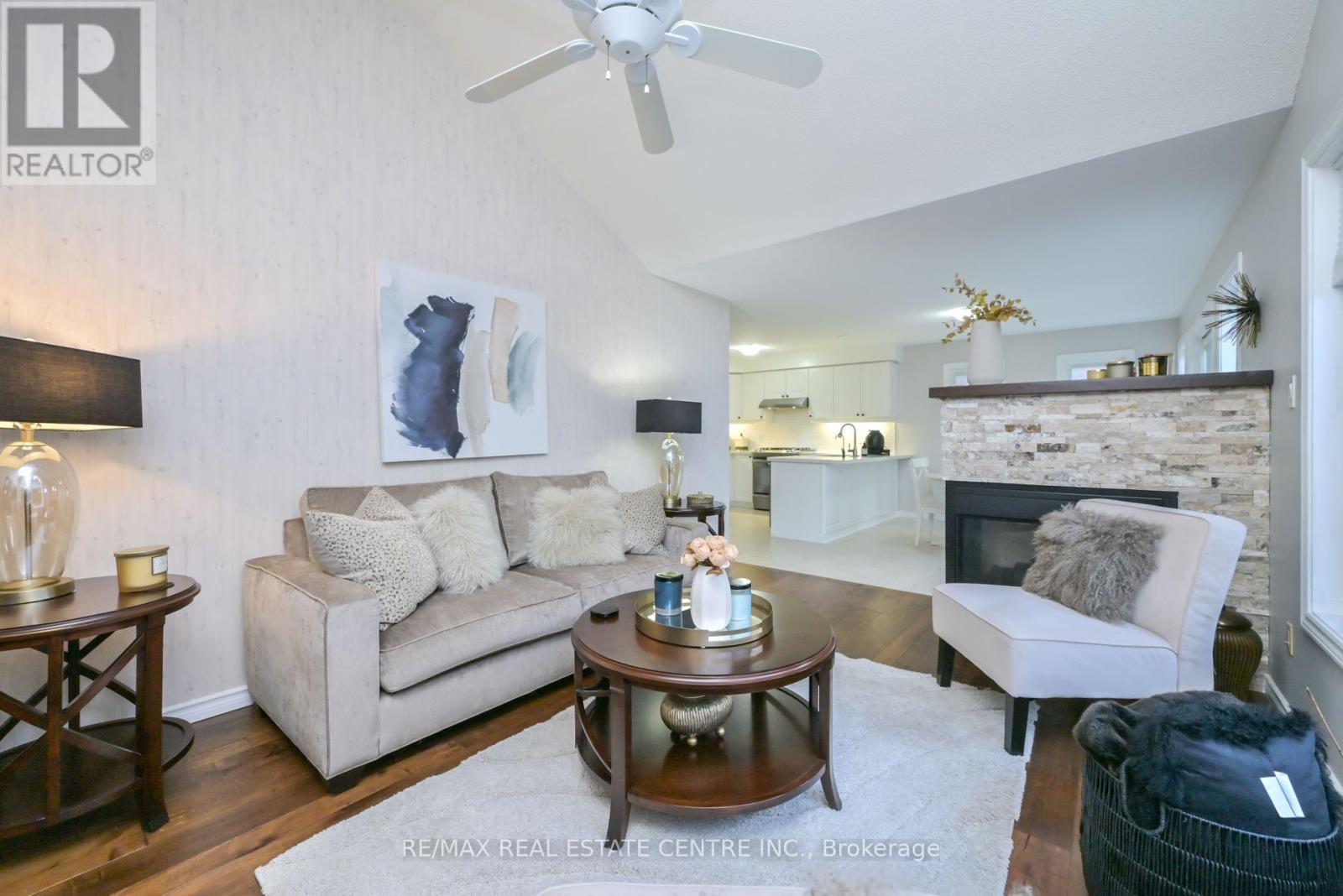 Don't miss out on this gorgeous, highly sought after bungalow in Georgetown South! Beautifully landscaped with aggregate concrete at front & side and interlock in rear. Pergola, $$$ spent on landscaping. Irrigation system. Hardwood on main floor. Hardwood to basement (with runner). 2 gas fireplaces. Kitchen features: gas stove, high-end stainless steel appliances, quarts countertops, undermount lighting, backsplash, pot lights, storage everywhere, huge kitchen pantry (with r/i for washer & dryer). Gas bbq hookup. Massive lot with mature trees. HRV system in basement. Door to garage. Loft storage in garage. 3 bdrms & 1 bsmt + 3 pc bathroom. Primary ensuite with skylight & glass shower. Workable pond in backyard. Superb location - close to schools, parks, etc. Hurry before this is long gone! Check HD tour. (id:51158)