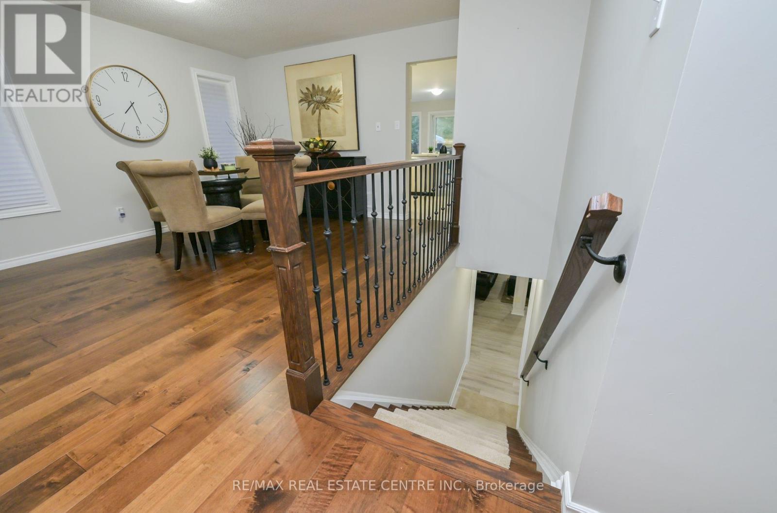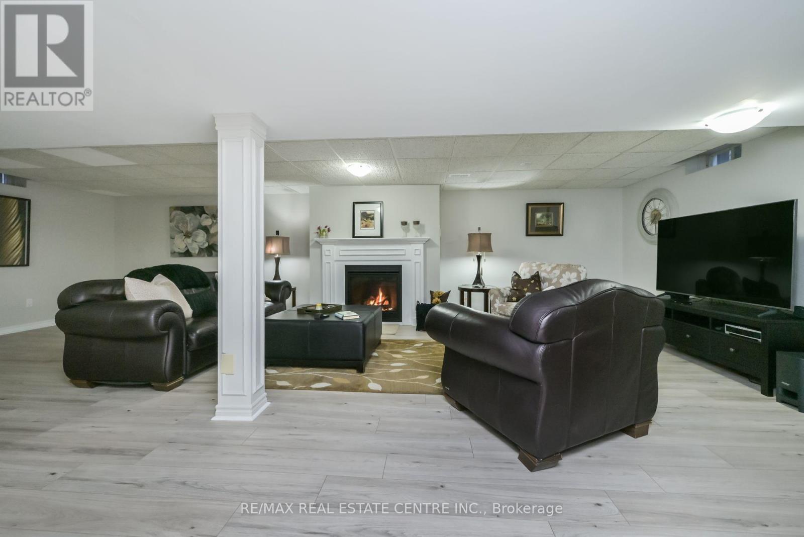Don't miss this stunning and highly sought-after bungalow in Georgetown South! Beautifully landscaped with aggregate concrete walkways at the front and side, interlocking patio in the rear, and a charming pergola - with $$$ invested in professional landscaping. Enjoy an irrigation system, a working backyard pond, and a massive lot surrounded by mature trees for added privacy. Inside, you'll find hardwood floors throughout the main level and staircase, two cozy gas fireplaces, and a bright, open-concept layout. The gourmet kitchen features a gas stove, high-end stainless steel appliances, quartz countertops, undermount lighting, stylish backsplash, pot lights, and an abundance of storage - including a huge pantry with rough-in for washer & dryer. The primary suite boasts a skylight, glass shower, and modern 3-piece ensuite. The finished basement offers an additional bedroom, 3-piece bath, HRV system, and plenty of space for entertaining or relaxing. Additional highlights include: gas BBQ hookup, inside access to garage with loft storage, close to top-rated schools, parks, and all amenities. This home truly has it all - act fast before it's gone! (id:51158)