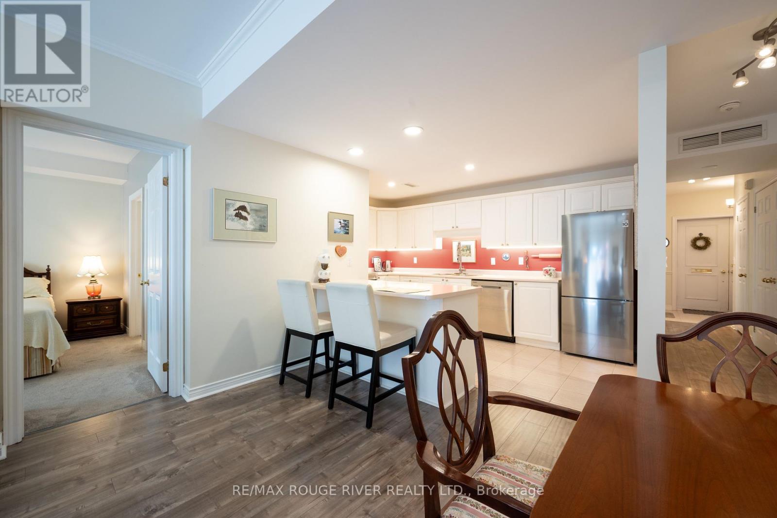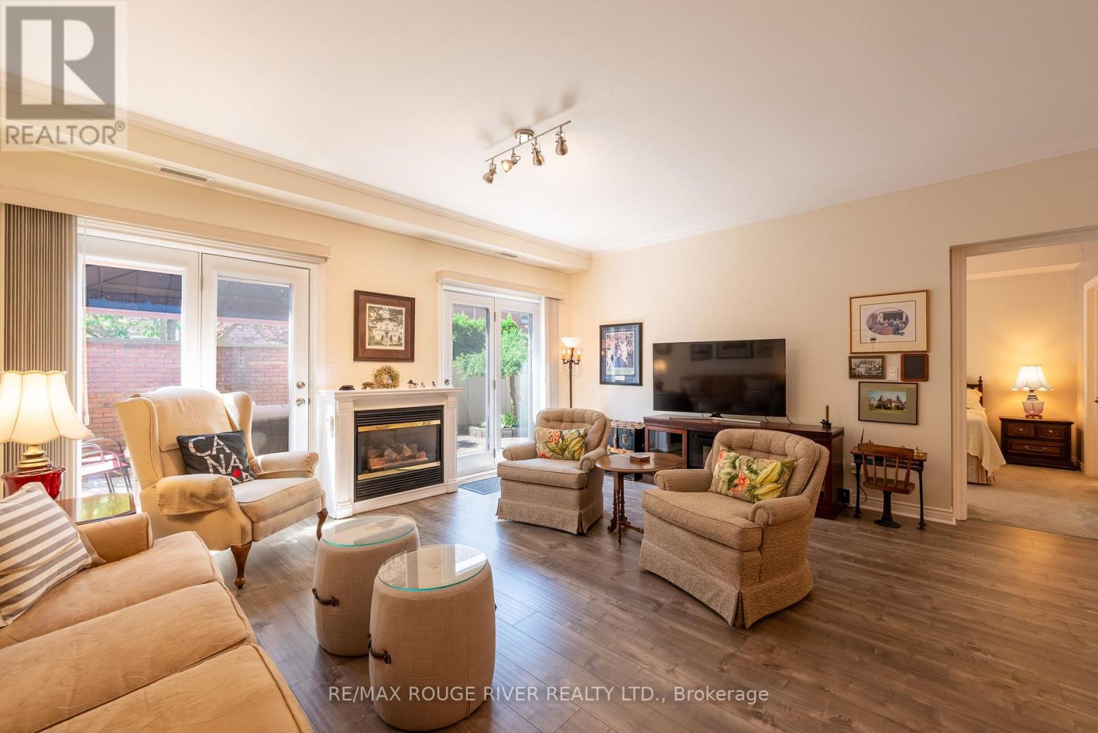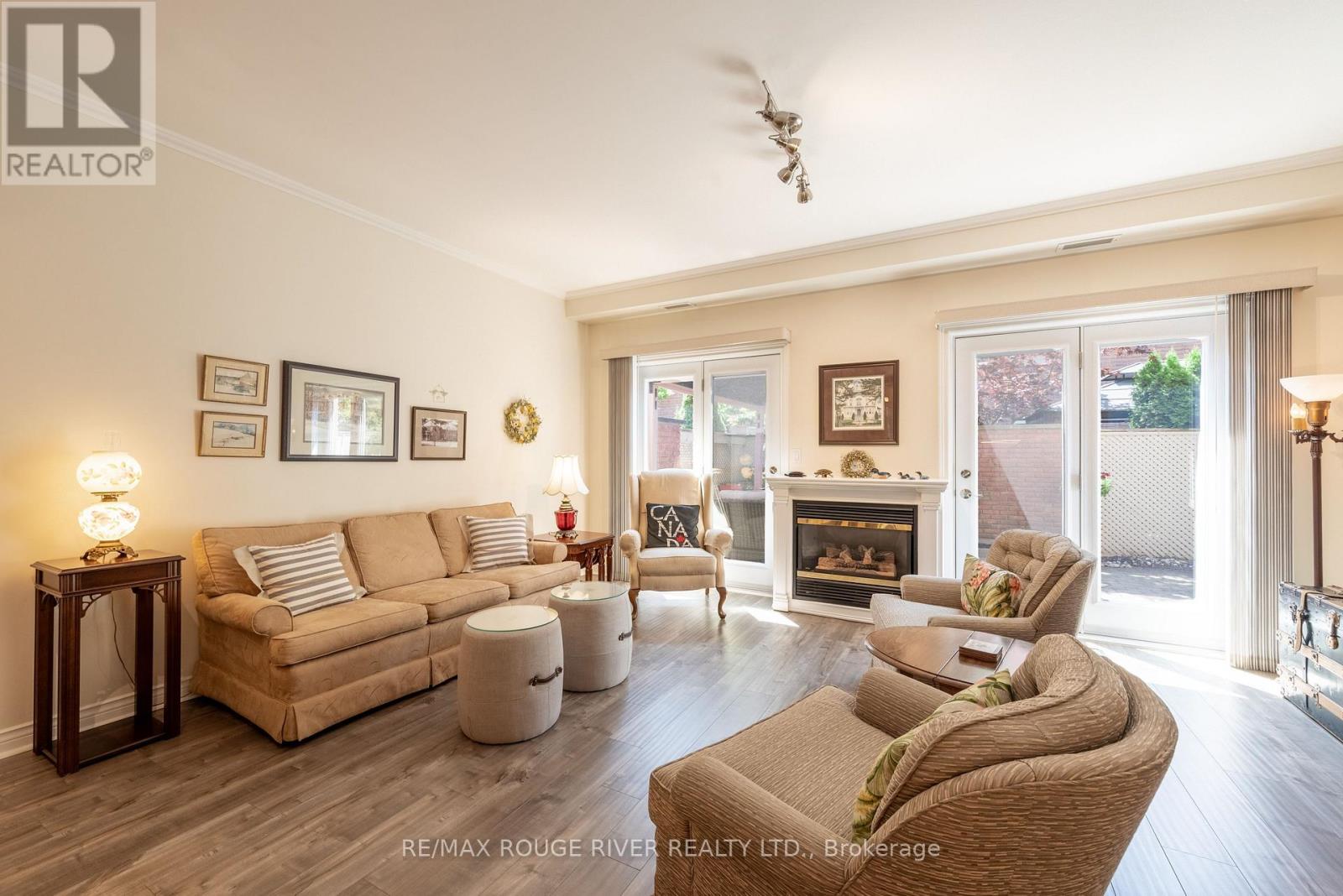 $609.10 MonthlyPerfectly positioned just steps from Cobourg's picturesque harbour, this stylish 2-bedroom, 2-bath condo offers the ease of single-level living in one of the towns most desirable locations. The open-concept layout with 9-foot ceilings combines a modern kitchen complete with stainless appliances, breakfast bar, and ample storage with a bright living and dining area anchored by a cozy gas fireplace. The spacious primary suite features a walk-in closet and ensuite, while the second bedroom and full guest bath provide flexibility for visitors or a home office. Enjoy private outdoor living on the south-facing terrace ideal for dining, relaxing, or light gardening complete with gazebo. With a new furnace and air conditioning (2024), and a rare attached garage, this move-in-ready condo offers low-maintenance comfort for retirees, downsizers, or investors seeking a prime Cobourg address near shops, parks, and the waterfront. (id:51158)