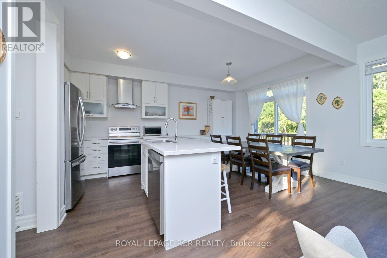 Thoughtfully designed for modern family living, this beautiful all-brick 2-storey home offers the perfect blend of comfort, function, and outdoor space. Built in 2021 and nestled on a rare 174 ft deep lot backing onto peaceful greenspace and walking trails, it's a private backyard oasis where kids can play, parents can unwind, and the whole family can enjoy time together inside and out. Step inside to a welcoming foyer with soaring 18 ft ceilings and oversized windows that fill the home with natural light. The main floor open concept layout perfect for busy family life and weekend entertaining. At the heart of the home is a stylish kitchen with quartz countertops, white cabinetry, stainless steel appliances, and a large island with breakfast bar seating. The adjoining dining area walks out to a balcony with tranquil views - ideal for morning coffee or family dinners with a sunset backdrop. Upstairs, you'll find 3 generous bedrooms, including a serene primary suite with walk-in closet and spa-like ensuite featuring a soaker tub, double vanity, and glass-enclosed shower. The unfinished walkout basement with bathroom rough-in offers amazing potential - whether its a playroom, home gym, in-law suite, or media room. The possibilities are endless. Located in a friendly, well connected neighbourhood just minutes from schools, shopping, parks, major highways and Base Borden, this home combines peaceful living with everyday convenience. ** This is a linked property.** (id:51158)