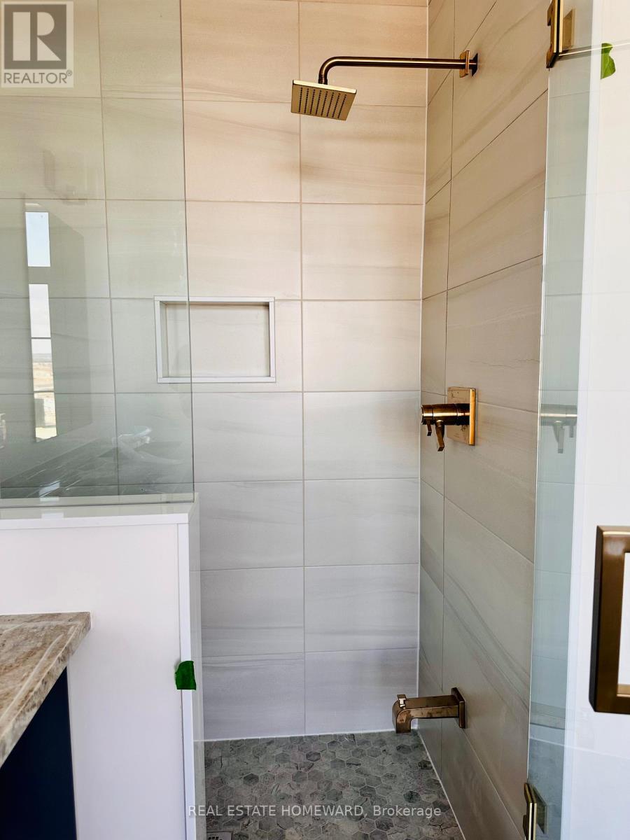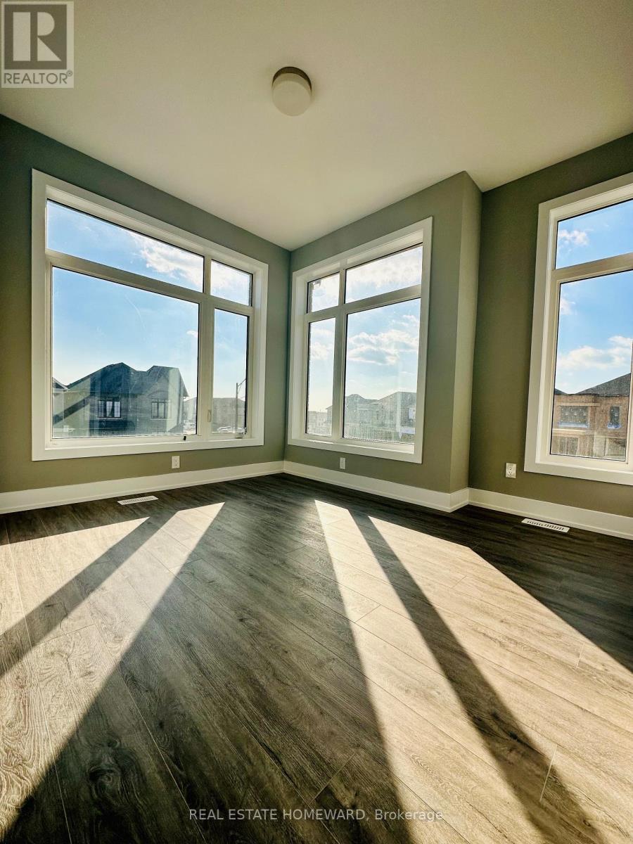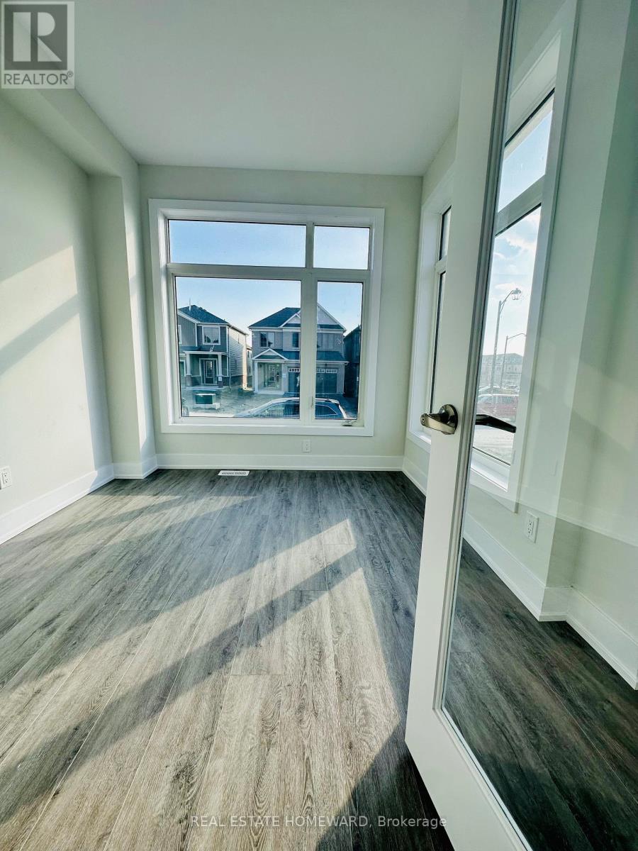 Welcome to this premium 4+1 bedroom all-brick and stone premium corner-lot detached home in the prestigious Kedron community of North Oshawa. Built in November 2023 on a rare 62' frontage lot, this property features over $150,000 in upgrades including 9' smooth ceilings, premium flooring, upgraded oak staircase with iron pickets, sun-filled family room with Upgraded Gas Fireplace with Elegant Mantel in Living Room, and an open-concept dining area with walk-out to a fully upgraded loggia-style covered porch-a beautifully finished outdoor living space enhanced with approximately $40,000 in custom upgrades for year-round enjoyment. The chef-inspired kitchen offers extended custom cabinetry, granite countertops, stylish backsplash, premium built-in stainless steel appliances, a centre island with breakfast bar, champagne bronze hardware, and a dual-fuel compatible cooktop connection (electric or gas) with a gas line installed. A spacious main-floor office/den provides flexible living space. Upstairs features a luxurious primary suite with walk-in closet and spa-like 5-piece ensuite with freestanding soaker tub and frameless glass shower, along with three additional bedrooms and second-floor laundry. The full basement includes a cold room and offers endless potential. Additional highlights include direct garage access, private double driveway for 4 vehicles, HRV system, energy-efficient mechanicals, central vacuum, smart home package (video doorbell, programmable thermostat, water leak sensor), and full Tarion warranty. Ideally located minutes from Durham College, Ontario Tech University, Costco, shopping, restaurants, top-rated schools, Lakeridge Hospital, parks, Hwy 407/7, and backing onto a future school site with no rear neighbours. (id:51158)
