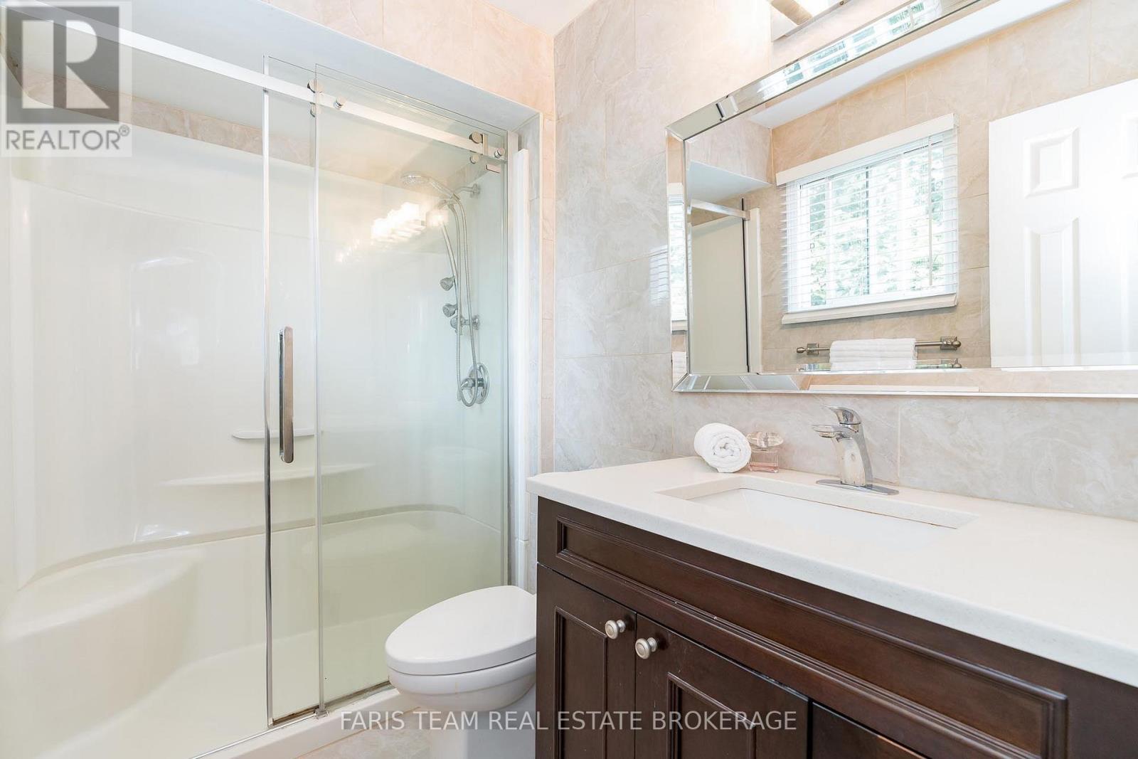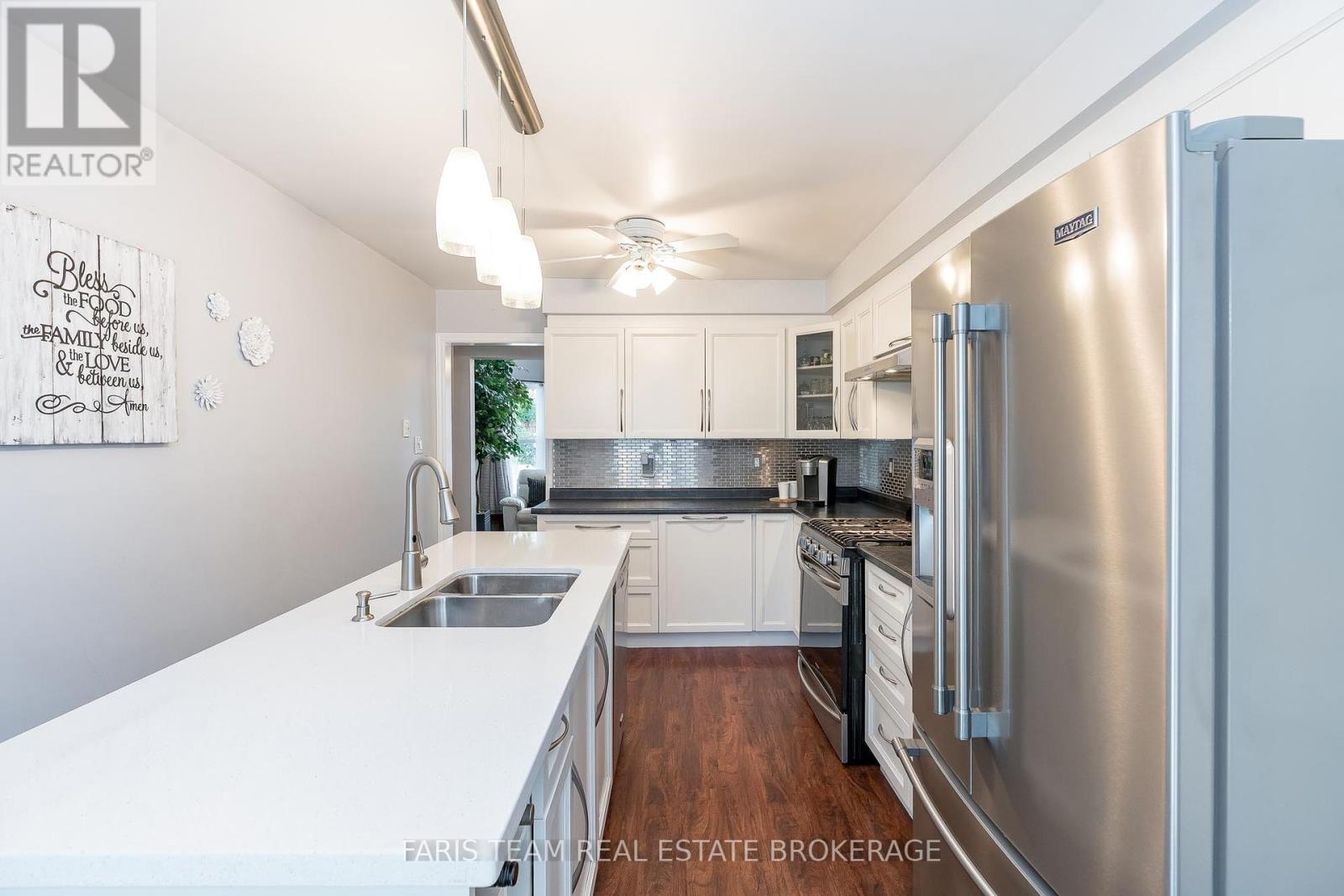 Top 5 Reasons You Will Love This Home: 1) Established in a highly sought-after neighbourhood, this charming home offers beautiful curb appeal and is just minutes from parks, Nantyr Beach, and convenient shopping 2) The main level welcomes you with new laminate flooring, abundant natural light, a spacious laundry room, a gorgeous kitchen with a large island, and a living room with soaring ceilings seamlessly connecting to the upper level 3) Two generous bedrooms share a newly renovated main bathroom, while the primary suite boasts its own beautifully updated ensuite with a glass shower, creating a private retreat 4) The partially finished basement hosts an additional bedroom for guests or family and plenty of flexible space to design the perfect recreation room, office, or hobby area 5) Set on a large corner lot with mature trees, the backyard and deck provide the ultimate privacy and a serene space to relax or entertain during the warmer months. 1,863 sq.ft. plus a partially finished basement. (id:51158)