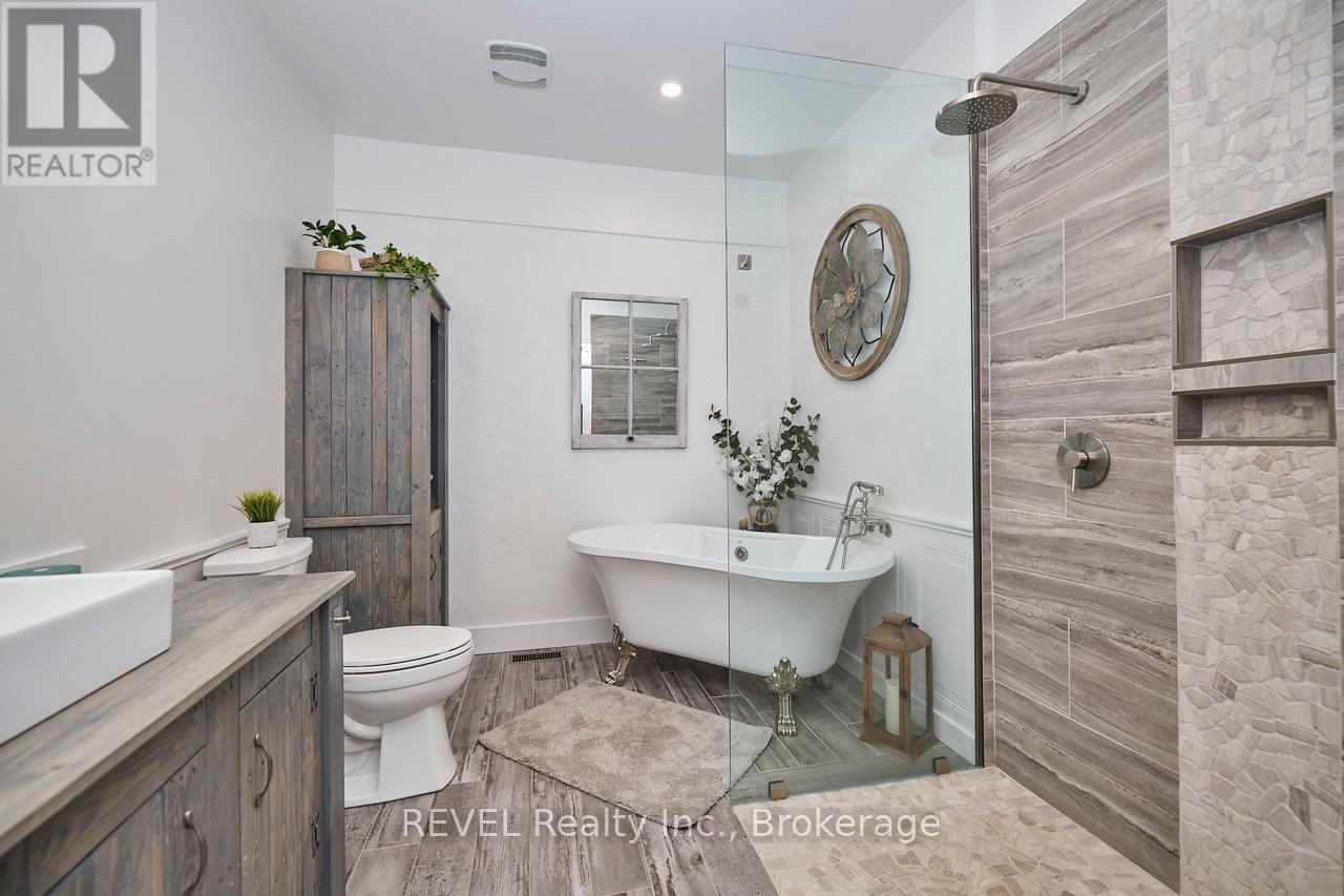 Looking for that Northern Muskoka feel in Niagara? How about 4.49 Acres with 430' of Frontage on the Welland River? Or the option to jump in the pool and finish the night off with a soak in the hot tub all with views of the River? Than look no further because here's your chance to own this piece of paradise that has it all! On top of all that you'll find a 13yrs young 2 story home totalling 3300 sq.ft with superior modern rustic finishes throughout! 9' ceilings on both levels, main floor bedroom and bathroom, open concept feeling throughout both levels, entire main floor has heated floors under ceramic wood plank tile, custom kitchen by Silver Creek Cabinetry, custom bathrooms, second floor has engineered hardwood with plush carpet in all bedrooms, second floor laundry! There's nothing that hasn't been updated since it was built in 2011. 1040sq.ft (26x40) heated shop with Mancave/Office area! Updates include Timber A-frame patio structure with steel roof (2022) Stone and stucco (2022) Dock (2022) 4500 gallon Cistern & 6 person Hot Tub (2020) On-ground pool, concrete patio's with armour Stone (2016) Wrap around porch (2016) Steel Roof original (2011) Septic tank original (2011) this property is total turn key with nothing left to do but enjoy with all major expenses covered for years to come! House is built on concrete pad on gravel (no basement or crawl space) built as Eco friendly with all E-rated windows, plaster walls 16" thick throughout both levels with engineered straw forms with R35 insulation rating behind plaster to maximize efficiency! Radiant heating/A/C forced air exchanger, electric HWT owned, drilled well for free back up water, and wood fed boiler for supplementary heating, natural gas at the road if desired! Truly remarkable property that don't become available too often! (id:51158)