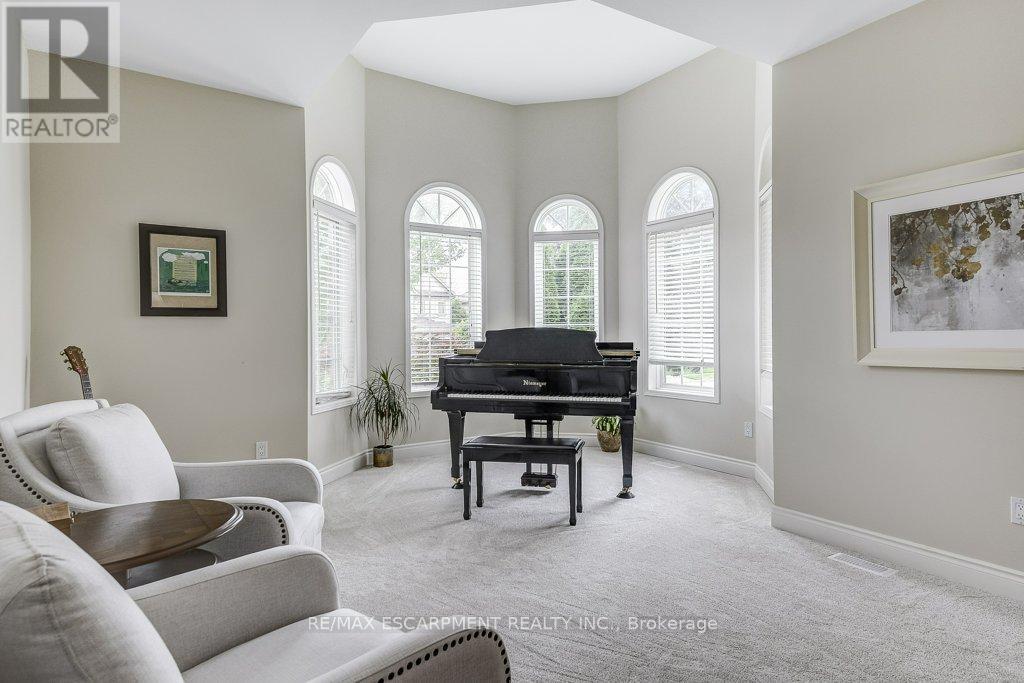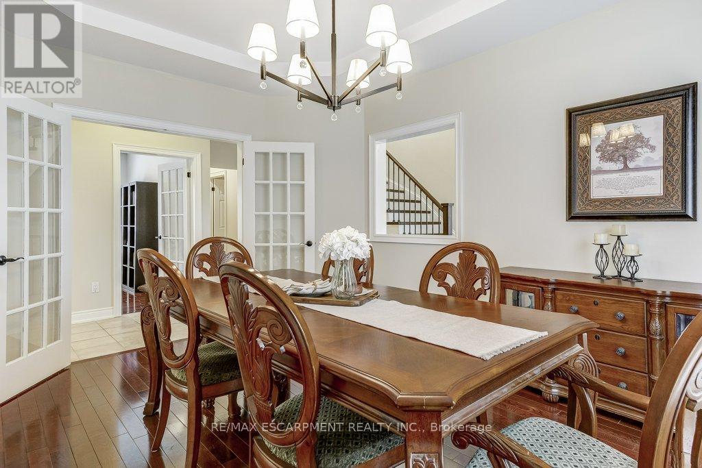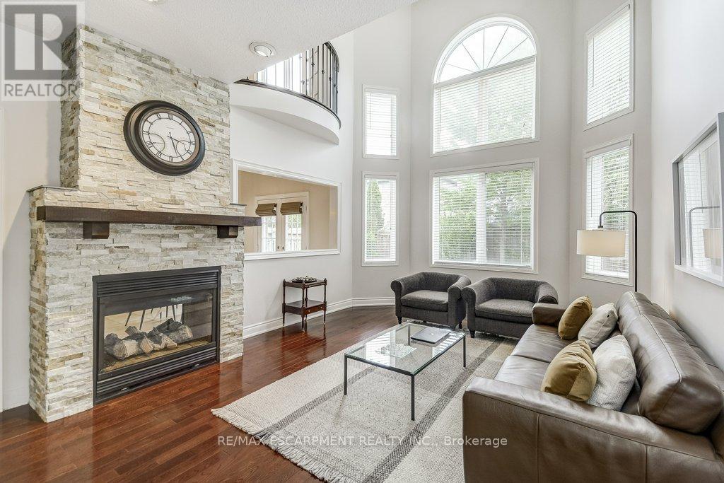 Impressive Executive Home in the Heart of Dundas Valley. With over 4,100 sq ft of beautifully finished living space, this stunning detached home is nestled on a mature, landscaped lot with outstanding curb appeal, just steps to the Bruce Trail, Dundas Conservation Area, and the Dundas Valley Golf & Curling Club. From the custom front door to the elegant staircase, the foyer sets the tone for the main floor, which includes a cozy, sunlit living room, formal dining space, and a private office perfect for working from home. The family room is a true showstopper with soaring ceilings and expansive windows overlooking the private backyard. The beautifully upgraded eat-in kitchen offers direct access to the backyard, perfect for everyday living and entertaining. The oversized primary retreat boasts a 5-piece ensuite, his and hers walk-in closets, and a comfortable sitting area. The second bedroom includes its own ensuite, while the 3rd and 4th bedrooms share a Jack & Jill. The finished lower level comes with a large rec room, 5th bedroom, 2nd office, plus room to expand. Say goodbye to car shuffling with a double garage and spacious 4-car driveway. Truly a rare find in a sought-after Dundas location! (id:51158)