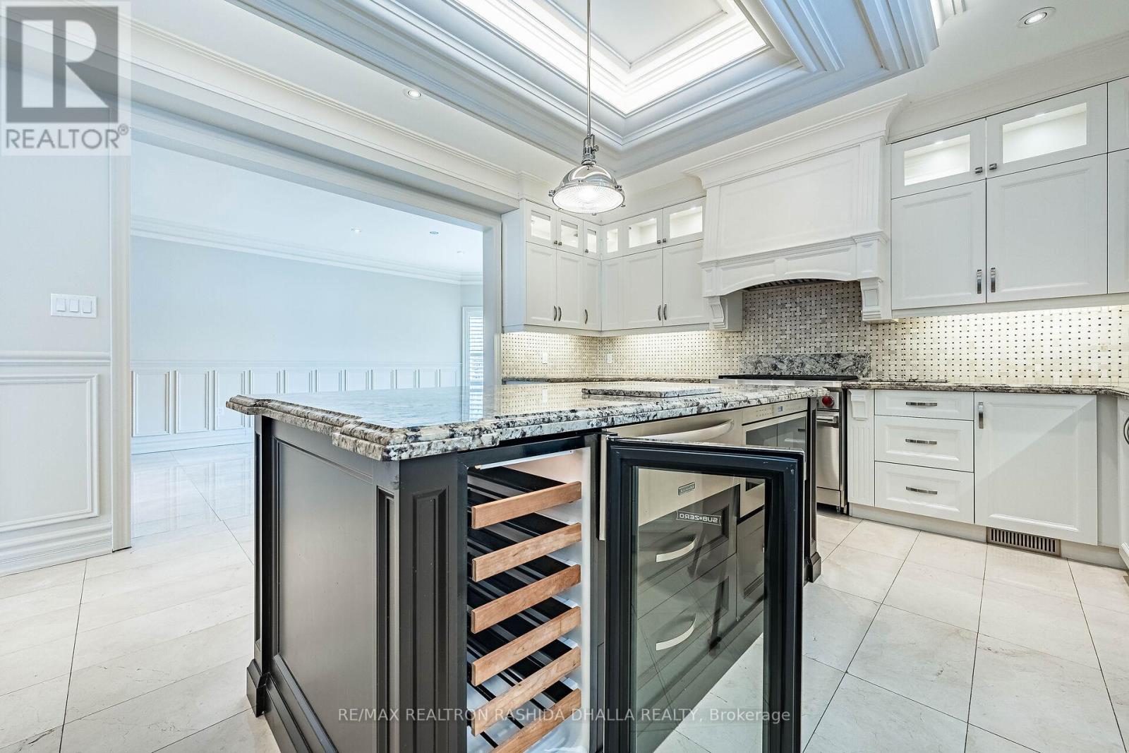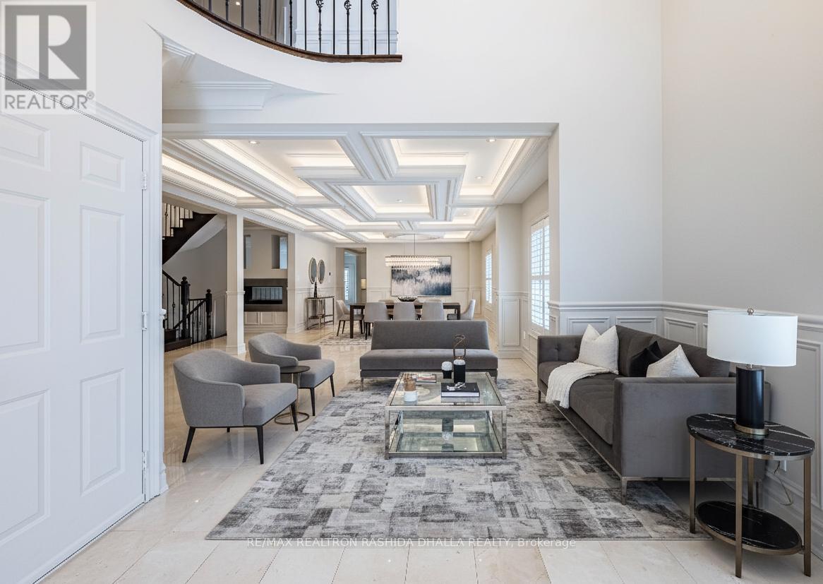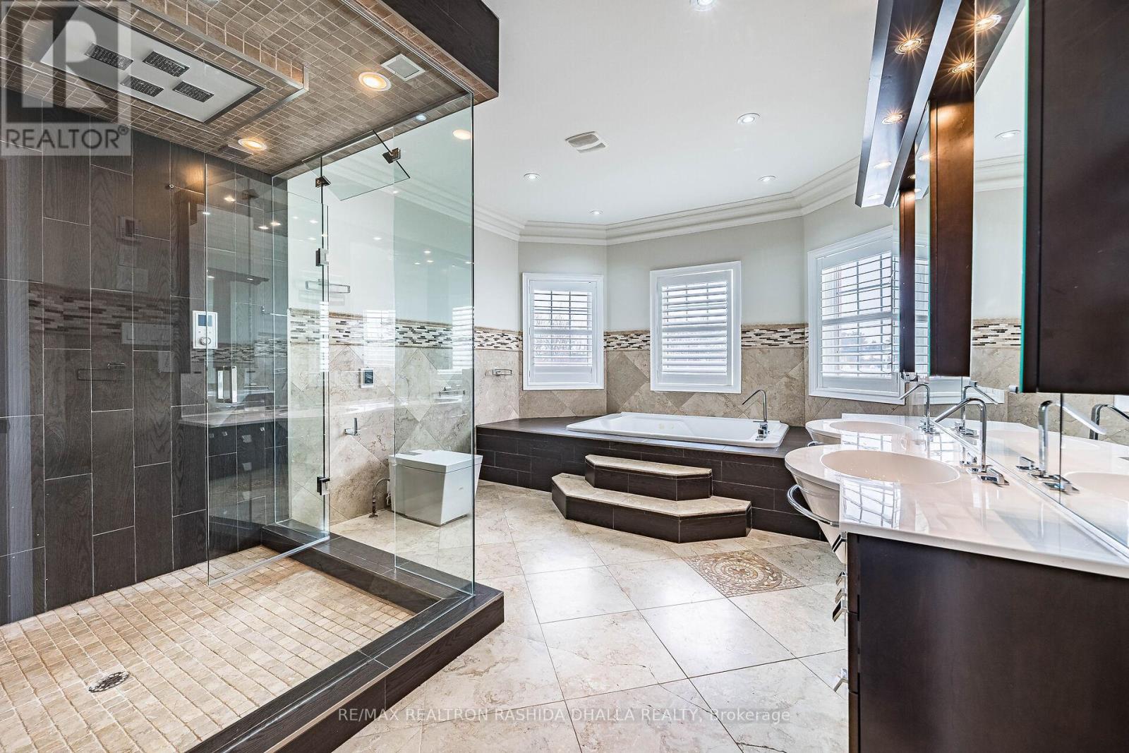 Executive luxury residence situated on a premium corner lot in prime Thornhill Woods Built in 2009 & recently upgraded throughout this home offers 5,124 sq. ft. of living space 8 bedrooms & 7 bathrooms combining elegant design modern technology and outstanding income potential Striking brick and stone façade w/double-door entry & new stone stairs dramatic 2 storey foyer w/crystal chandelier Bright & spacious principal rooms 9' smooth ceilings pot lights waffle ceilings w/integrated lighting wainscotting crown mouldings oversized baseboards & a 2-sided gas fireplace heated marble flooring throughout main & lower levels & heated flooring in upper bathrooms Open concept living/dining areas ideal for entertaining complete w/walk-in coat closet & powder room w/floating vanity designer mirror & lighting Custom chef's kitchen w/large centre island granite countertops designer backsplash soft-close cabinetry w/pull-out drawers undercabinet lighting undermount sink & premium appliances including Wolf gas stove w/oven Built-in double ovens & microwave Sub-Zero fridge & wine cooler Asko dishwasher KitchenAid warming drawer & hood fan. Family room w/walk-out to deck surround sound wiring & projection TV/screen wiring Elegant wrought-iron circular staircase w/crystal chandelier leads to upper & basement Upper level features wide landing w/Romeo Juliet balcony 2 linen closets & 4 generous bedrooms Primary suite includes double-door entry custom walk-in closet & spa-inspired ensuite w/double vanity jacuzzi tub w/lighting oversized steam shower w/multiple jets & Kohler Numi smart bidet system Secondary bedrooms offer walk-in or double closets w/semi-ensuites & private ensuites (id:51158)