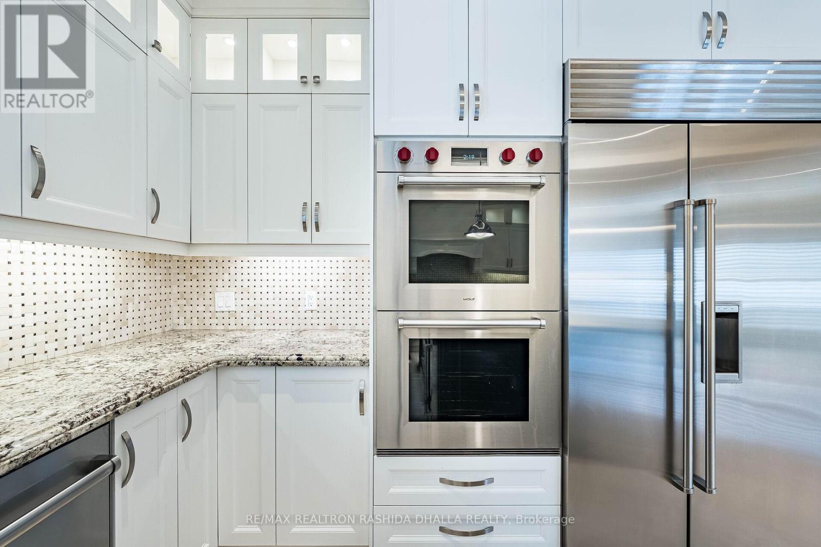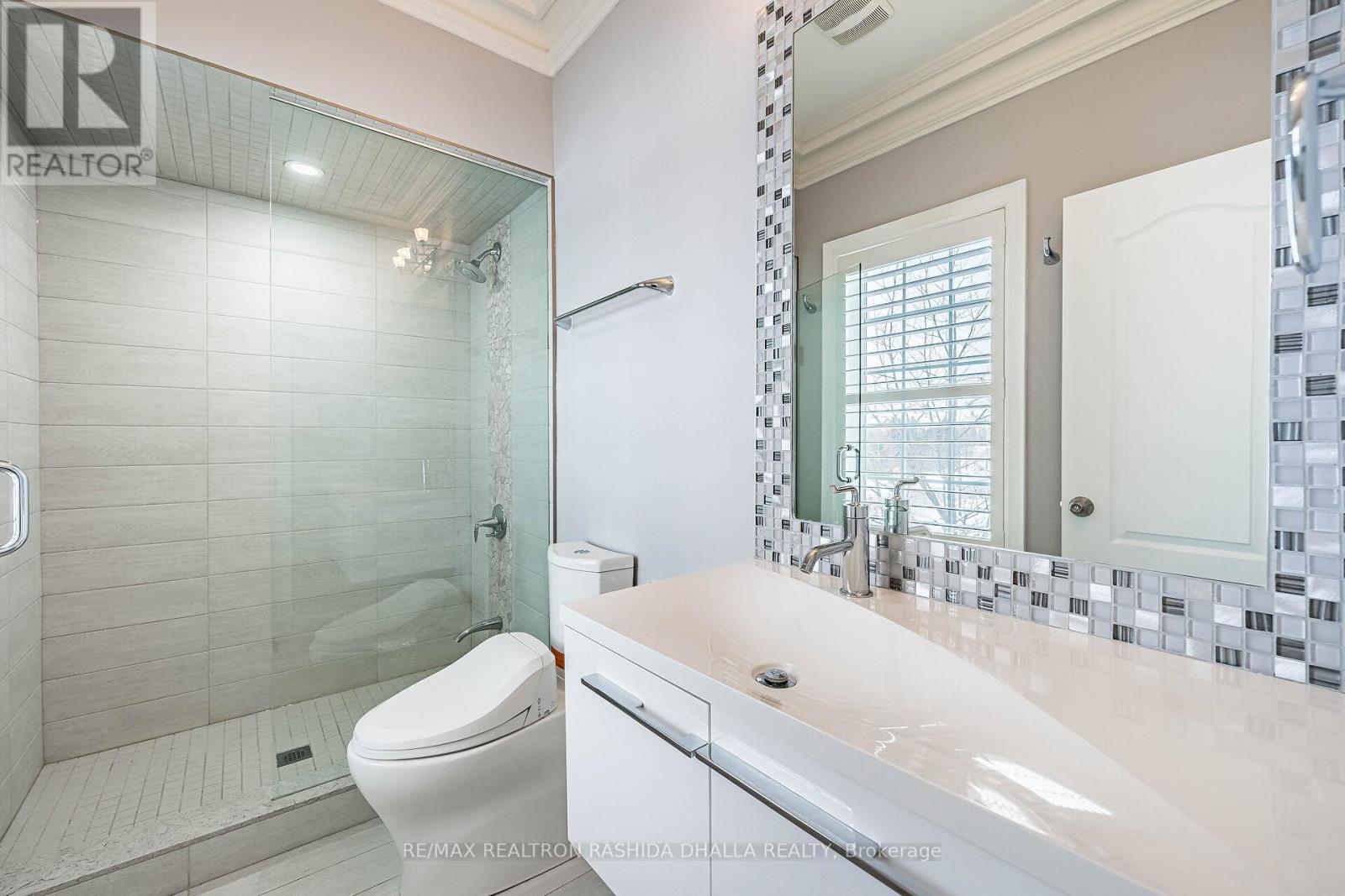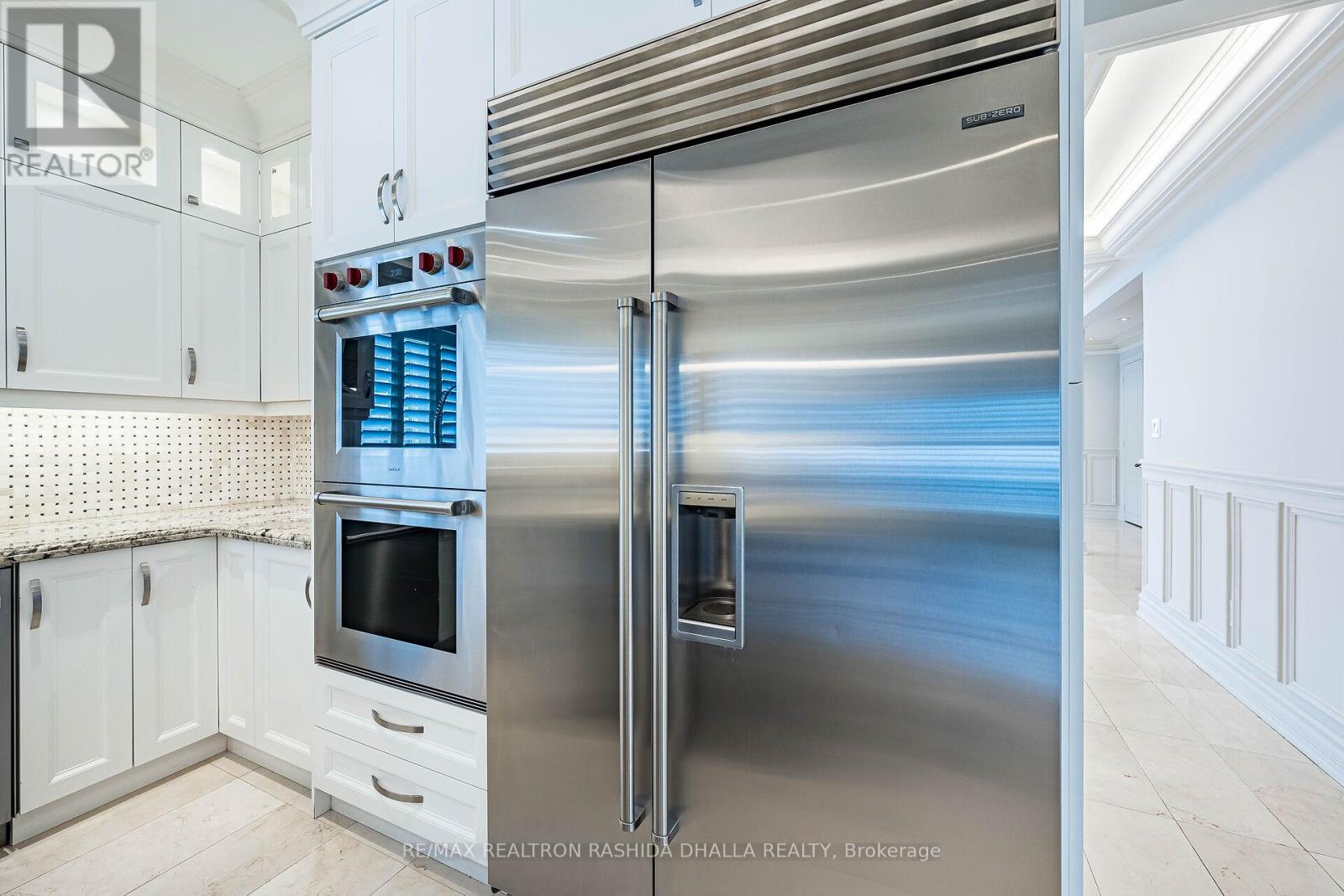 Executive luxury residence situated on a premium corner lot in prime Thornhill Woods Built in 2009 & recently upgraded throughout this home offers 5,124 sq. ft. of living space 8 bedrooms & 7 bathrooms combining elegant design modern technology and outstanding income potential Striking brick and stone façade w/double-door entry & new stone stairs dramatic 2 storey foyer w/crystal chandelier Bright & spacious principal rooms 9' smooth ceilings pot lights waffle ceilings w/integrated lighting wainscotting crown mouldings oversized baseboards & a 2-sided gas fireplace heated marble flooring throughout main & lower levels & heated flooring in upper bathrooms Open concept living/dining areas ideal for entertaining complete w/walk-in coat closet & powder room w/floating vanity designer mirror & lighting Custom chef's kitchen w/large centre island granite countertops designer backsplash soft-close cabinetry w/pull-out drawers undercabinet lighting undermount sink & premium appliances including Wolf gas stove w/oven Built-in double ovens & microwave Sub-Zero fridge & wine cooler Asko dishwasher KitchenAid warming drawer & hood fan. Family room w/walk-out to deck surround sound wiring & projection TV/screen wiring Elegant wrought-iron circular staircase w/crystal chandelier leads to upper & basement Upper level features wide landing w/Romeo Juliet balcony 2 linen closets & 4 generous bedrooms Primary suite includes double-door entry custom walk-in closet & spa-inspired ensuite w/double vanity jacuzzi tub w/lighting oversized steam shower w/multiple jets & Kohler Numi smart bidet system Secondary bedrooms offer walk-in or double closets w/semi-ensuites & private ensuites (id:51158)