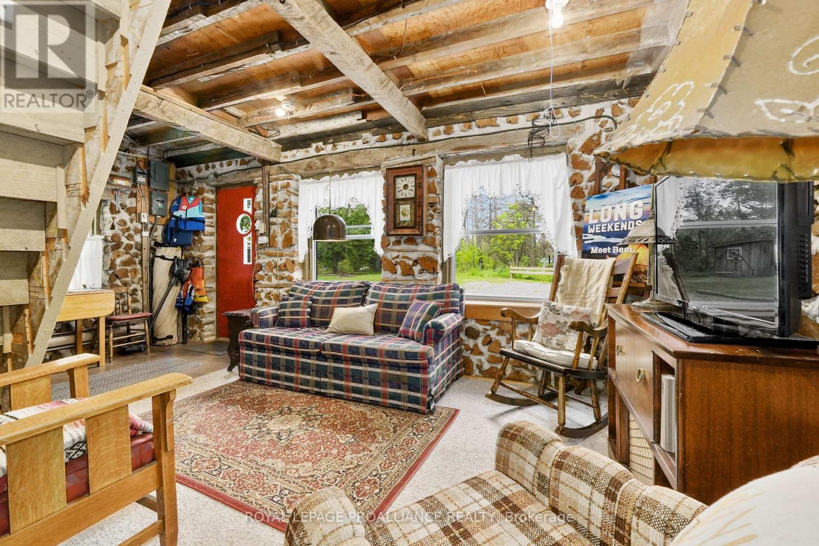Create unforgettable family memories at this charming waterfront cottage, perfectly situated on the Trent Severn Canal between Locks 10 and 11, just 10 minutes from the heart of Campbellford. Lovingly maintained by the same family for years, this spacious retreat property is ideal for relaxing, reconnecting, and enjoying the great outdoors. The main cottage offers 2 bedrooms, a 3-piece bathroom, a cozy kitchen, a welcoming living room with a woodstove, and a sunroom that's perfect for board games or morning coffee. Recent updates include a new bathroom floor, sunroom flooring, a new deck, and a newer roof. The real highlight? A separate, rustic cabin with its own wood stove that can sleep up to 7, perfect for kids, cousins, or visiting friends. There's also a garage and woodshed for extra storage and year round convenience. The expansive, private lot offers plenty of room to play, explore, and relax. With no close neighbors and direct waterfront access, its a safe and peaceful space for kids to run free and families to unwind. Enjoy evenings in the hot tub, roast marshmallows by the fire, or sit on the front deck and watch boats pass by on the canal. Nearby, Farris Park and scenic trails offer more opportunities for hiking, biking, and nature walks. The fishing is fantastic, the boating is top-notch, and the memories made here will last a lifetime. Fully furnished and ready to enjoy, this rare find is the ultimate family escape. The property is on leased land with Parks Canada but come see it for yourself, you'll understand why its so special. (id:51158)