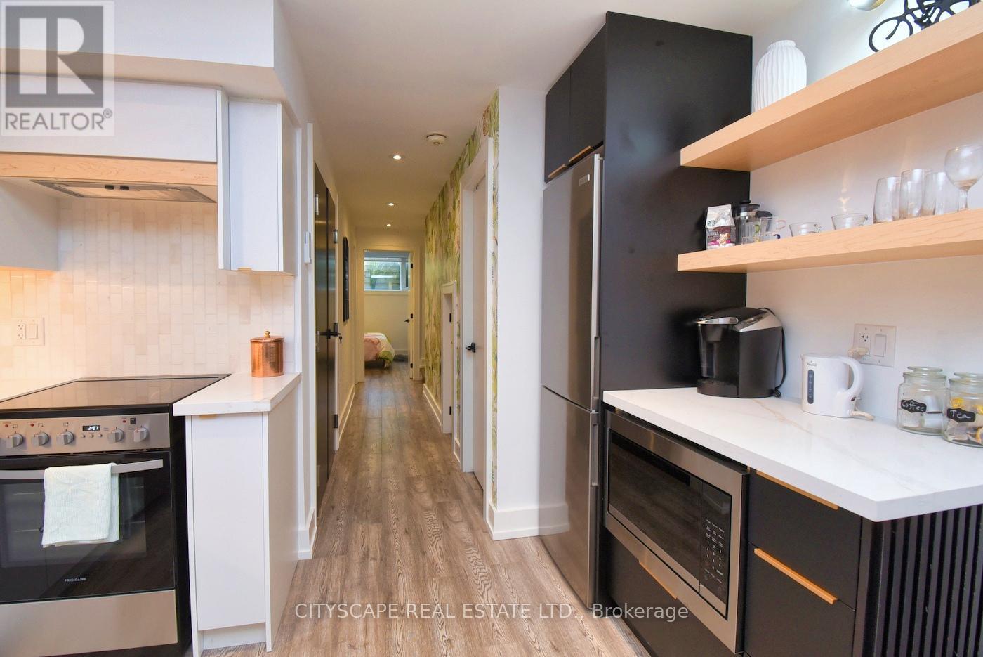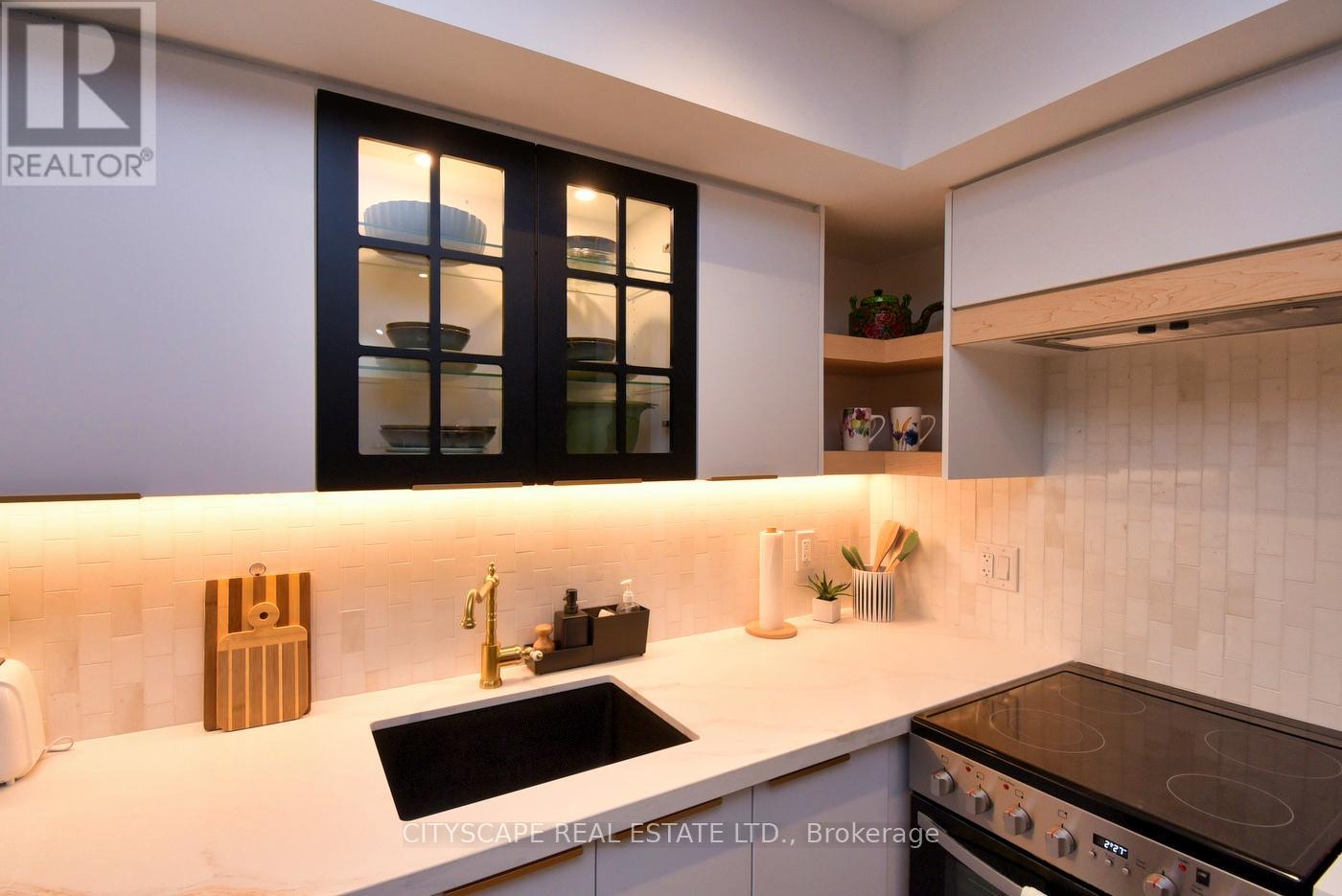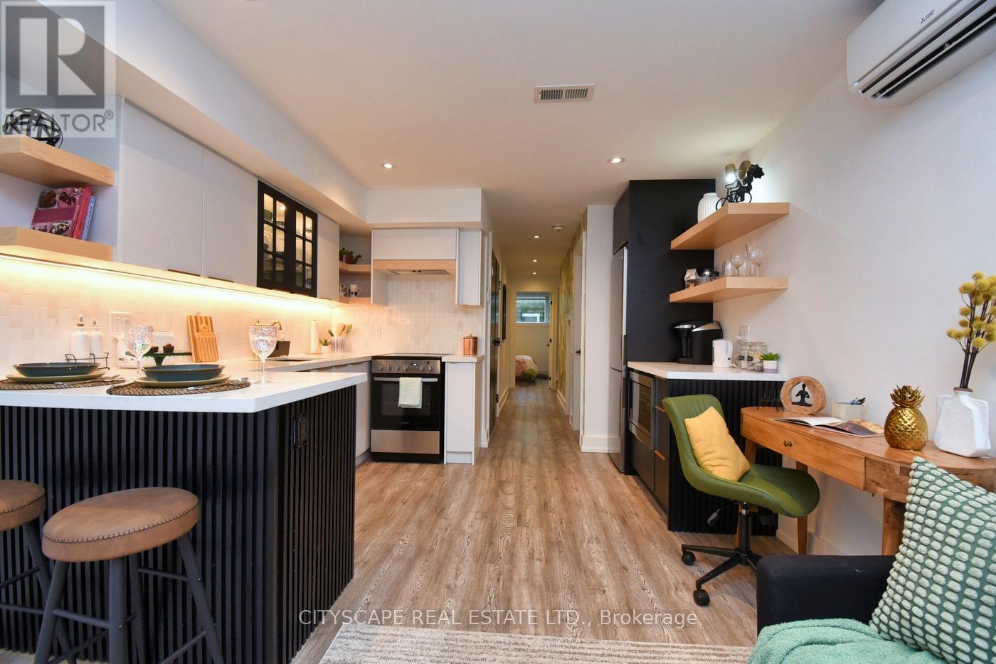 Bright and chic, fully furnished apartment in prime Annex. Featuring a spacious one-bedroom layout plus a cozy office nook, this unit boasts an abundance of natural light that flows through its floor-to-ceiling windows. You'll be wowed by the beautiful custom kitchen with the pristine white quartz countertops and marble backsplash, custom range hood, B/I appliances, breakfast bar with hidden storage, and an additional coffee/drinks station. The kitchen is equipped with all kitchen essentials. Abundant storage space with multiple closets. Separate Laundry with stackable Washer/Dryer. Tastefully decorated with meticulous attention to detail, this space is truly move-in ready with smart and comfortable furnishing. Perfect for professionals or couples seeking style, comfort and convenience in a desirable neighbourhood at an affordable price. Easy access to Bloor street shops, dining, Christie's pit, parks, UofT, hospitals and transit - just 2 min. walk to Bathurst station, close to trendy Yorkville. Bright and cheerful with a separate entrance that feels bright and cheerful. Fully furnished and move in ready. Don't miss out on this beautifully designed space! Shorter term is negotiable. (id:51158)