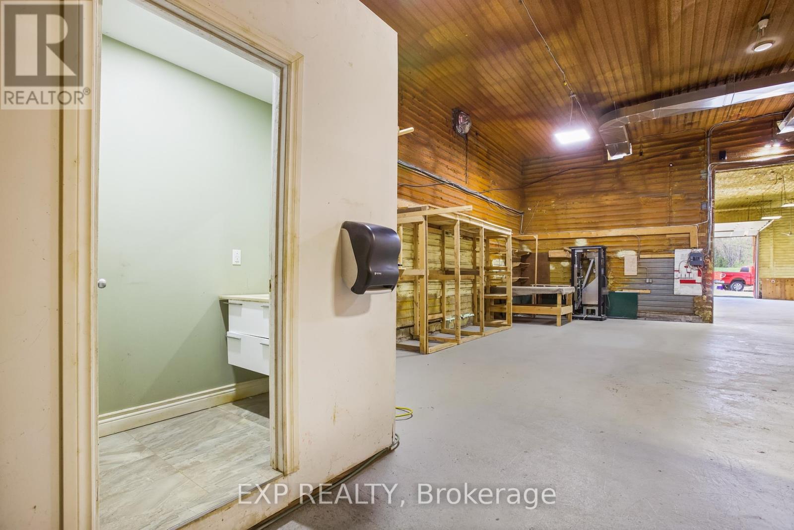 Rare opportunity to purchase approximately 4,500 sq ft of versatile barn space situated on 8.44 acres withprime exposure at the intersection of Highway 400 and Canal Road. This high-traffic location is just a shortdrive from both Toronto and Barrie, offering exceptional accessibility and visibility. The barn features highceilings, electricity, water, two furnaces, a wood stove, and a washroom, ideal for a wide range of usesincluding a market, showroom, or storage facility. A covered porch wraps around the building, addingcharm and functionality. The fertile land has supported a variety of crops, including lettuce, beets, carrots,and onions, making it well-suited for continued agricultural use. The property is also zoned for a single-family residential home, offering the potential to build or sever and build, presenting an excellentopportunity for both commercial and residential development. (id:51158)