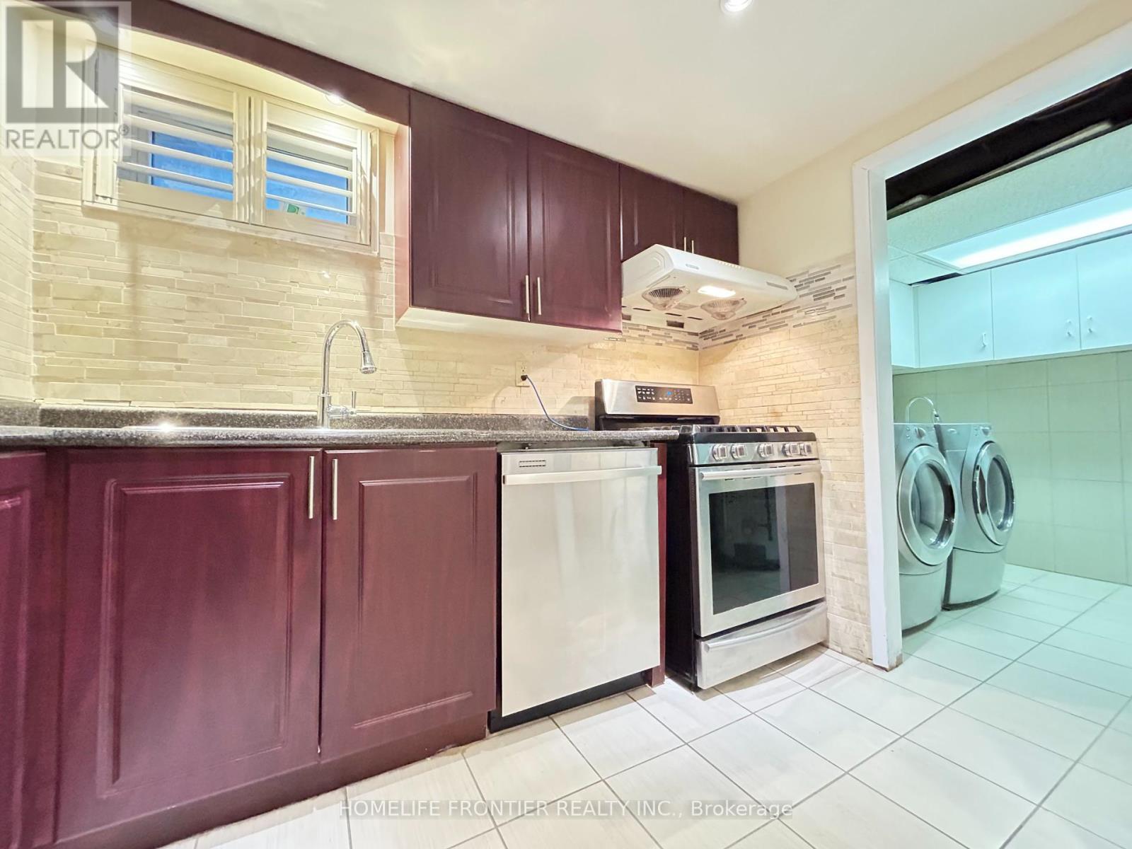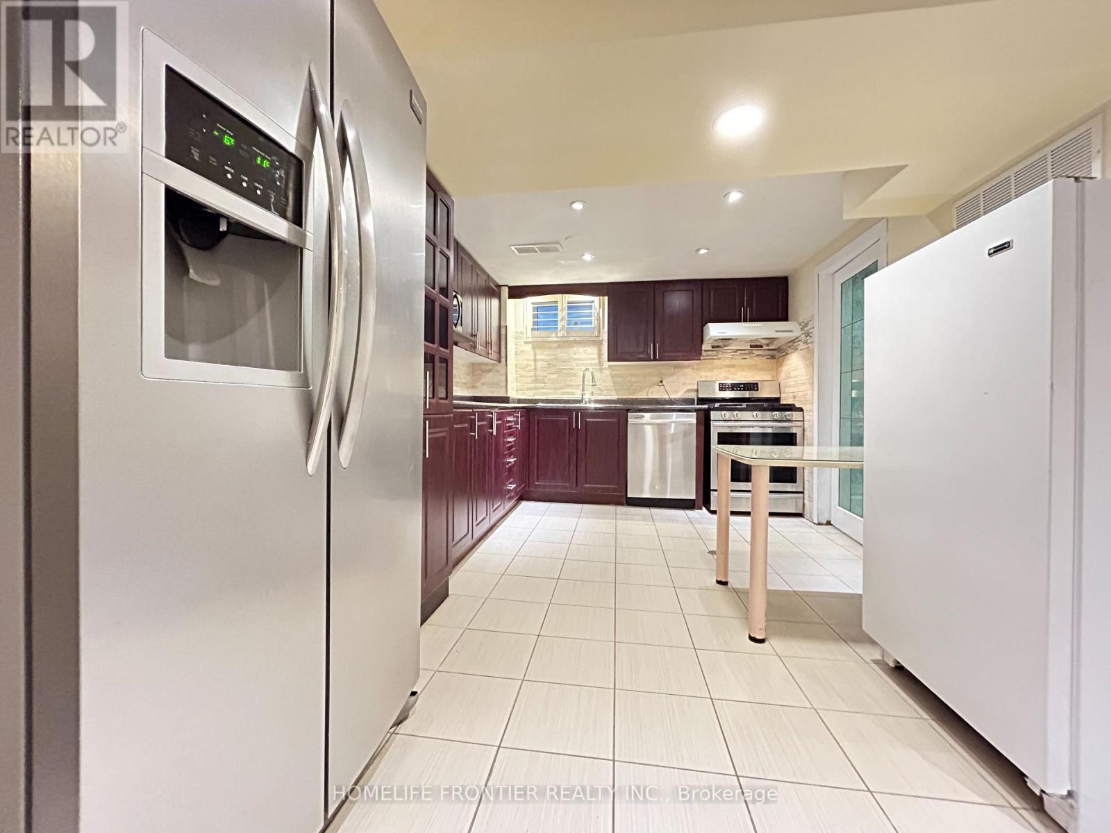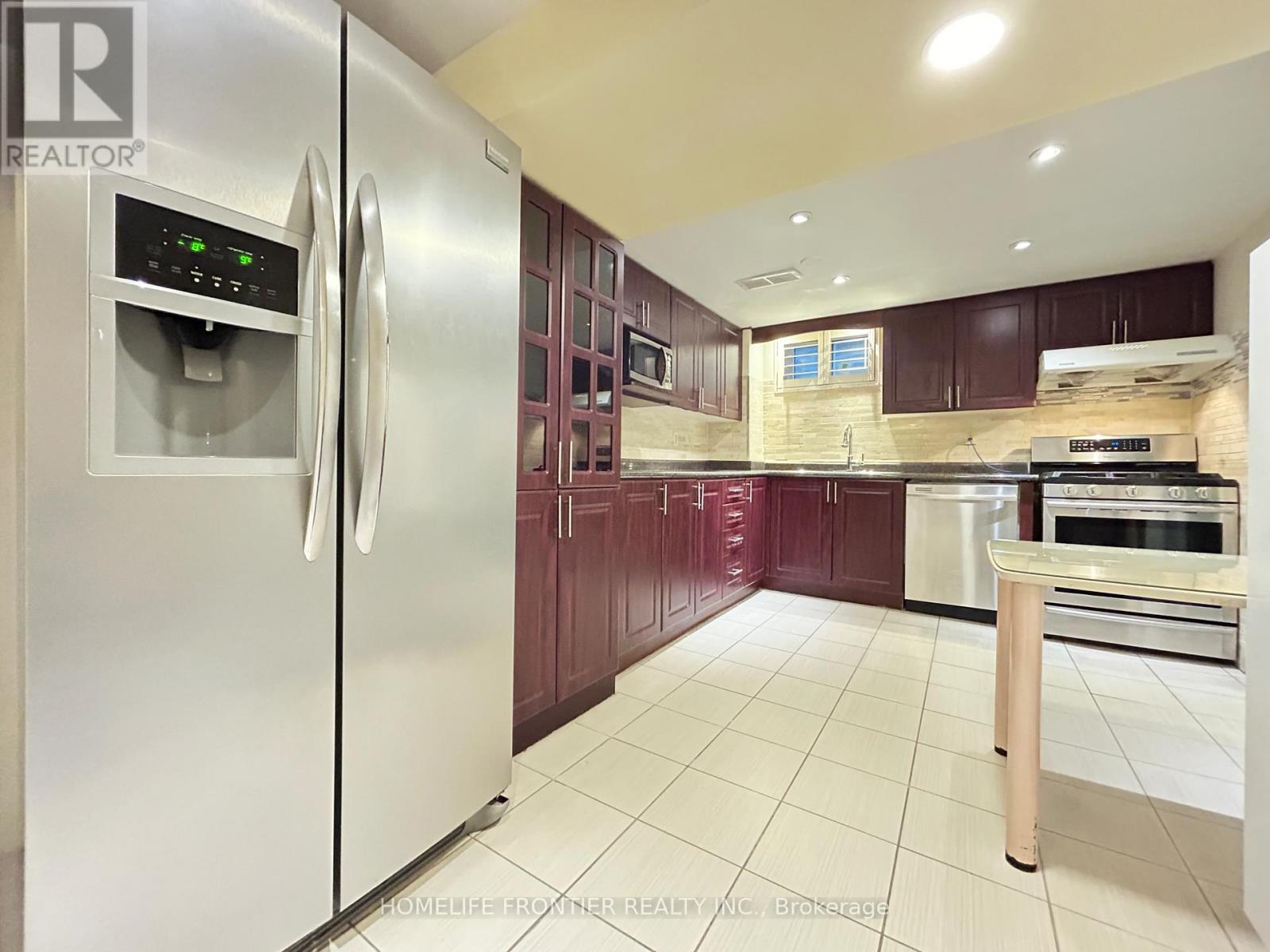 Spacious 2-Bedroom Basement Apartment In Woodbridge Area! Features A Large Family-Size Kitchen With Ample Storage, Generous Living Room With Convenient Web Bar-Perfect For Family Living.Easy Access To Hwy 7, 27, 427 & 407. Steps To Schools, Shopping Mall, Parks. Includes Ensuite Laundry, Extra Freezer, One Parking Spot On The Driveway And Separate Entrance With Auto DoorLock. Tenant Pays 40% Of Whole Utilities In The House And Removes Snow On The Passway To The Basement And Tenant's Parking Area. (id:51158)