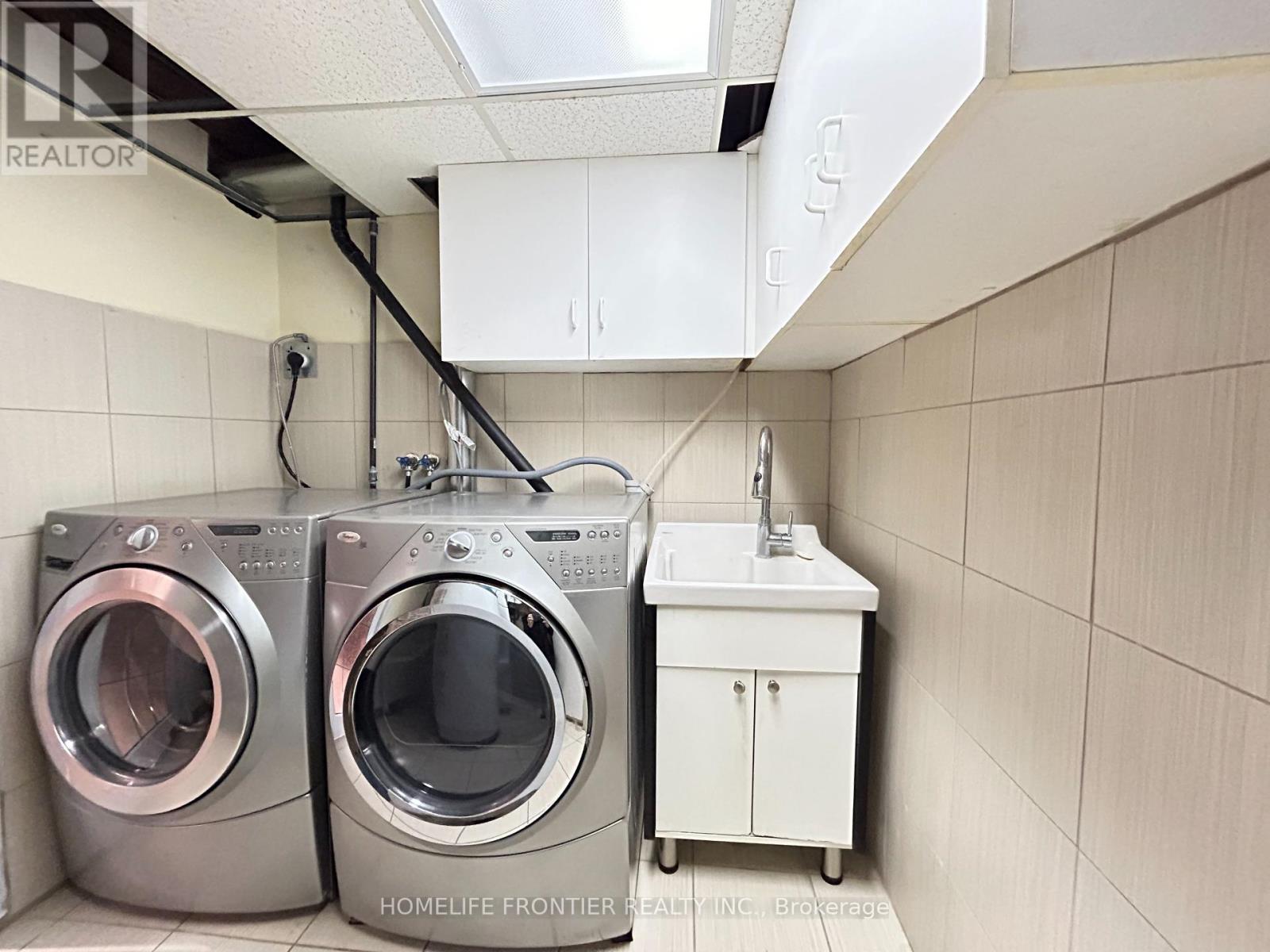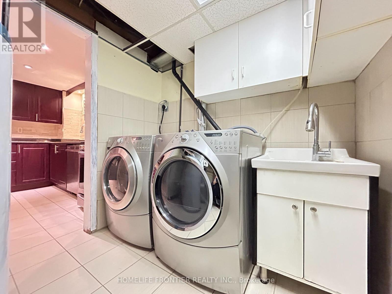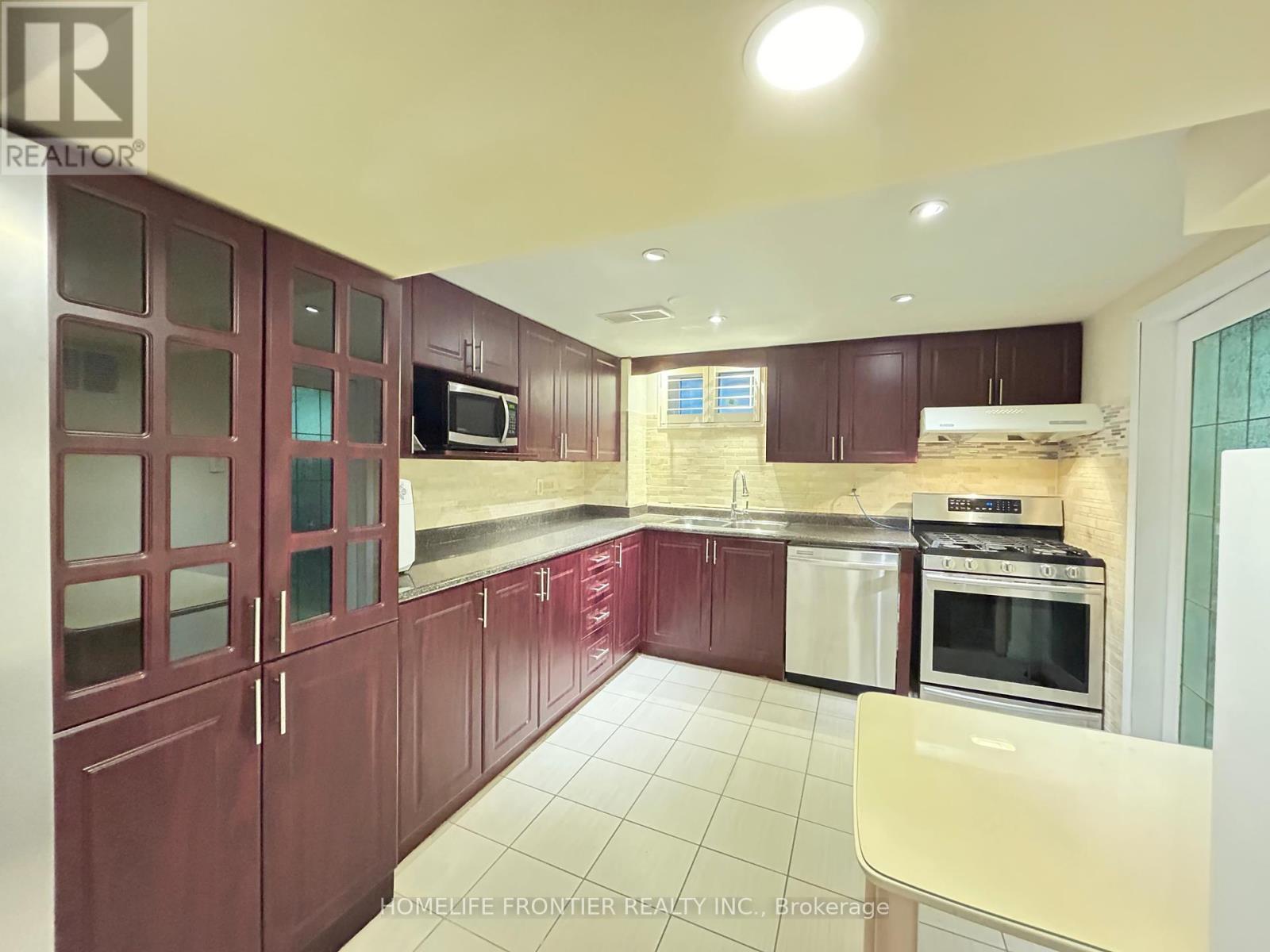 Spacious 2-Bedroom Basement Apartment In Woodbridge Area! Features A Large Family-Size Kitchen With Ample Storage, Generous Living Room With Convenient Web Bar-Perfect For Family Living.Easy Access To Hwy 7, 27, 427 & 407. Steps To Schools, Shopping Mall, Parks. Includes Ensuite Laundry, Extra Freezer, One Parking Spot On The Driveway And Separate Entrance With Auto DoorLock. Tenant Pays 40% Of Whole Utilities In The House And Removes Snow On The Passway To The Basement And Tenant's Parking Area. (id:51158)