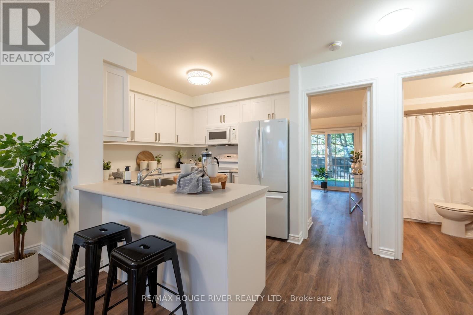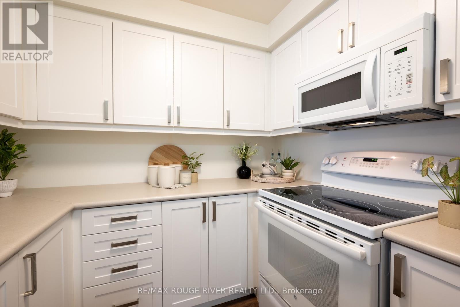 $335 MonthlyEnjoy the perfect blend of charm and convenience in one of Cobourg's most sought-after condo locations. Just a short stroll to downtown, the beach, harbour, Victoria Park, and trendy shops, this ground-floor unit is move-in ready with newer kitchen, flooring, and appliances. The bright, open-concept layout includes in-suite laundry, a walk-in closet, storage, and a spacious bedroom with ensuite effect. Step outside to your private patio with bonus storage. With low condo fees, utilities, and taxes, this is an affordable opportunity for first-time buyers, downsizers, or investors looking for a low-maintenance lifestyle in the heart of Cobourg. (id:51158)