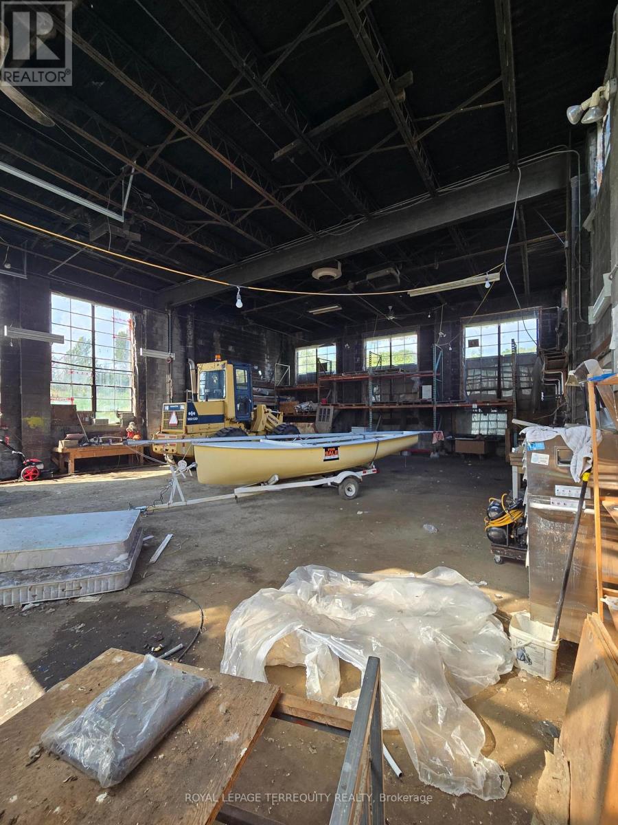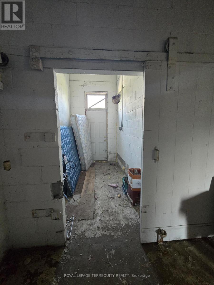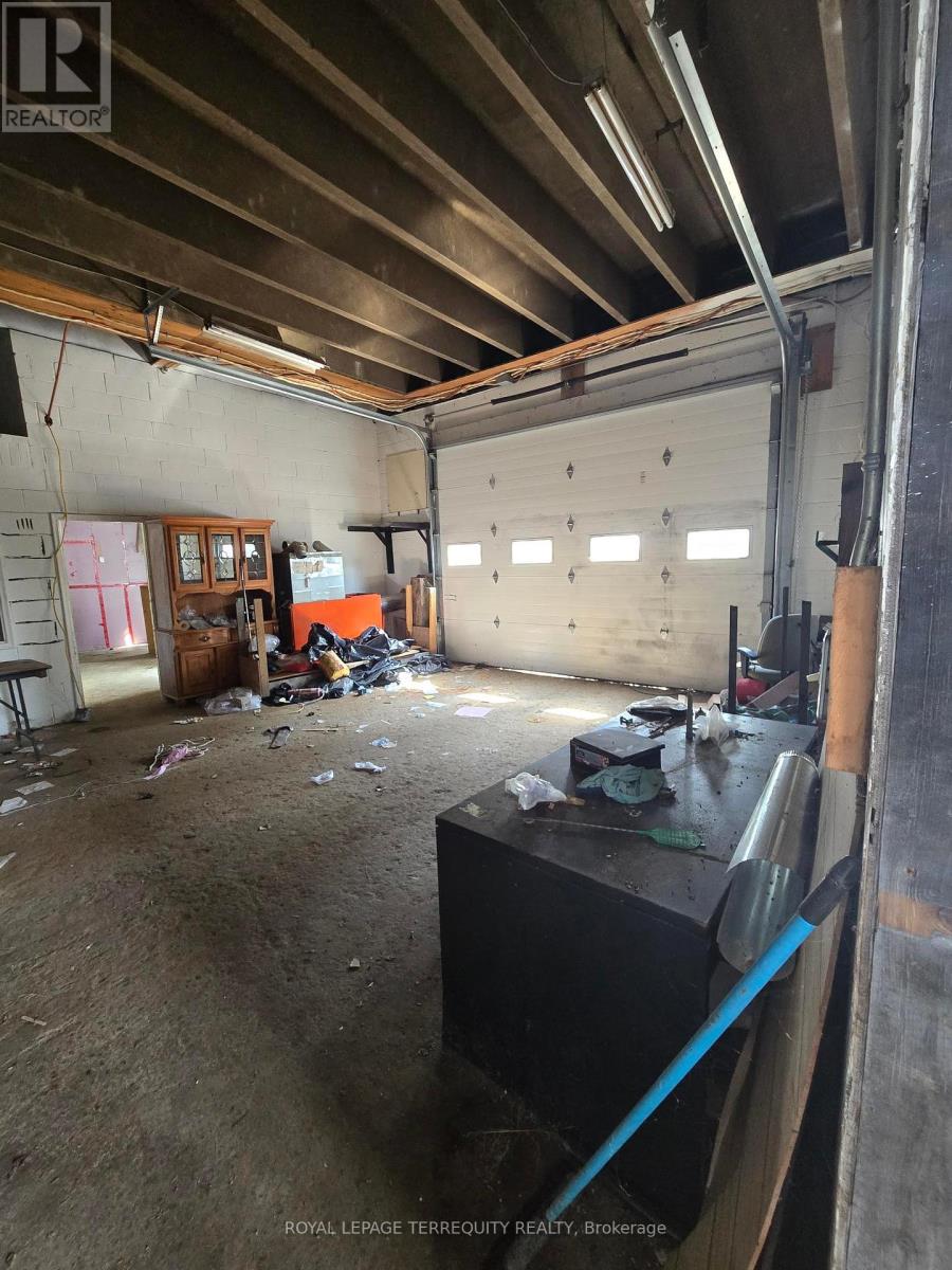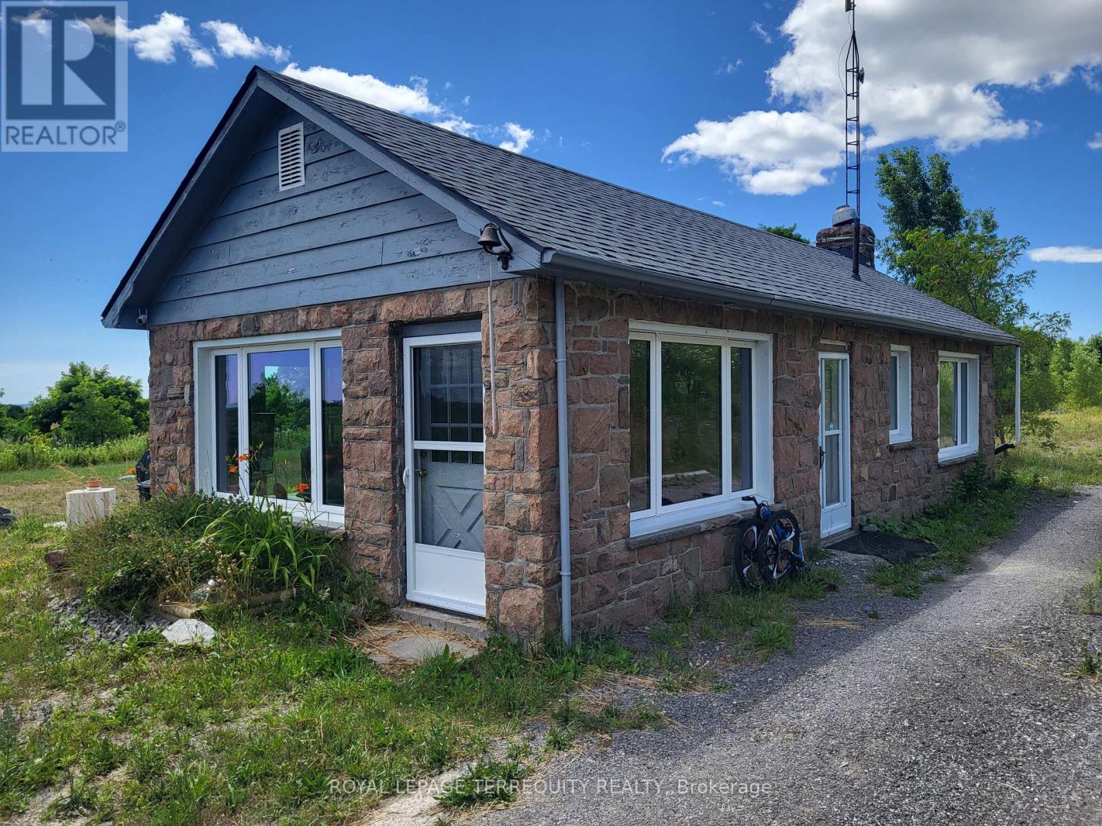 14407 County Road 2 is an irregularly shaped property comprising of five adjacent parcels which combine for 25.71-acres (1,119,953 s.f.) and have a combined 2,912 feet of road frontage on County Road 2, Hunt Road, and Barnes Road. The property is zoned for industrial ME-1 as well as RU. Many possibilities exist for rezoning! The main parcel, being 15.94-acres and located in the northeast section of the property, is developed with a house, an industrial style building, and a storage outbuilding. Great panoramic views of Lake Ontario. The 770 s.f. single-story bungalow features a single bedroom and three-piece bathroom. Originally constructed in 1954 it was extensively renovated in 2016. New windows 2022, New roof 2020, New Electrical 2024, New Heat Pump 2023. A new roof was installed in 2020, windows were replaced in 2022. The three-piece bathroom includes a walk-in shower, ceramic bowl sink set in a wooden countertop and frosted windows. The bedroom has a closet and glass patio door providing access to a rear wooden patio deck. The home is serviced by hydro, a septic tank, and a private well. Heating and cooling is provided by an electric heat pump and a supplemental propane fireplace. The 4,091 s.f. single storey industrial style building features two bays, each equipped with a roll-up drive-in door. The front section has a clear height of 24 ft. high, and the rear is 18 ft. Constructed on a poured concrete and concrete block foundation with slab on grade flooring, the exterior walls are primarily comprised of concrete block with sections of exposed structural steel and wood frames. The roof is a flat, asphalt membrane built-up roof with a gravel ballast. The building is serviced by a private well and septic tank system installed in 2014. It has 200-amp electrical service and is mainly unheated except for the bathroom which has an electric baseboard. There is an old wood fired furnace, but is not currently connected. (id:51158)