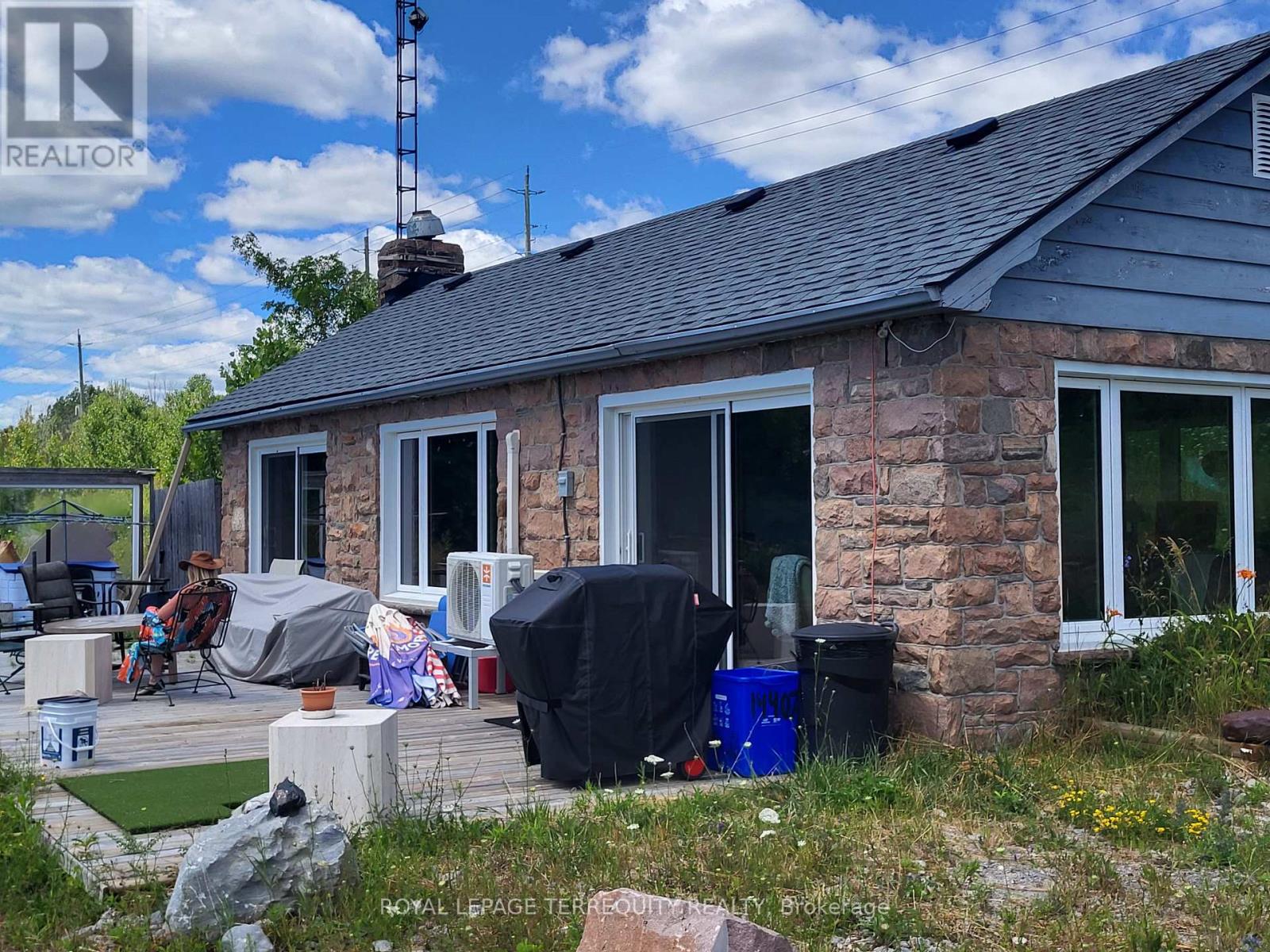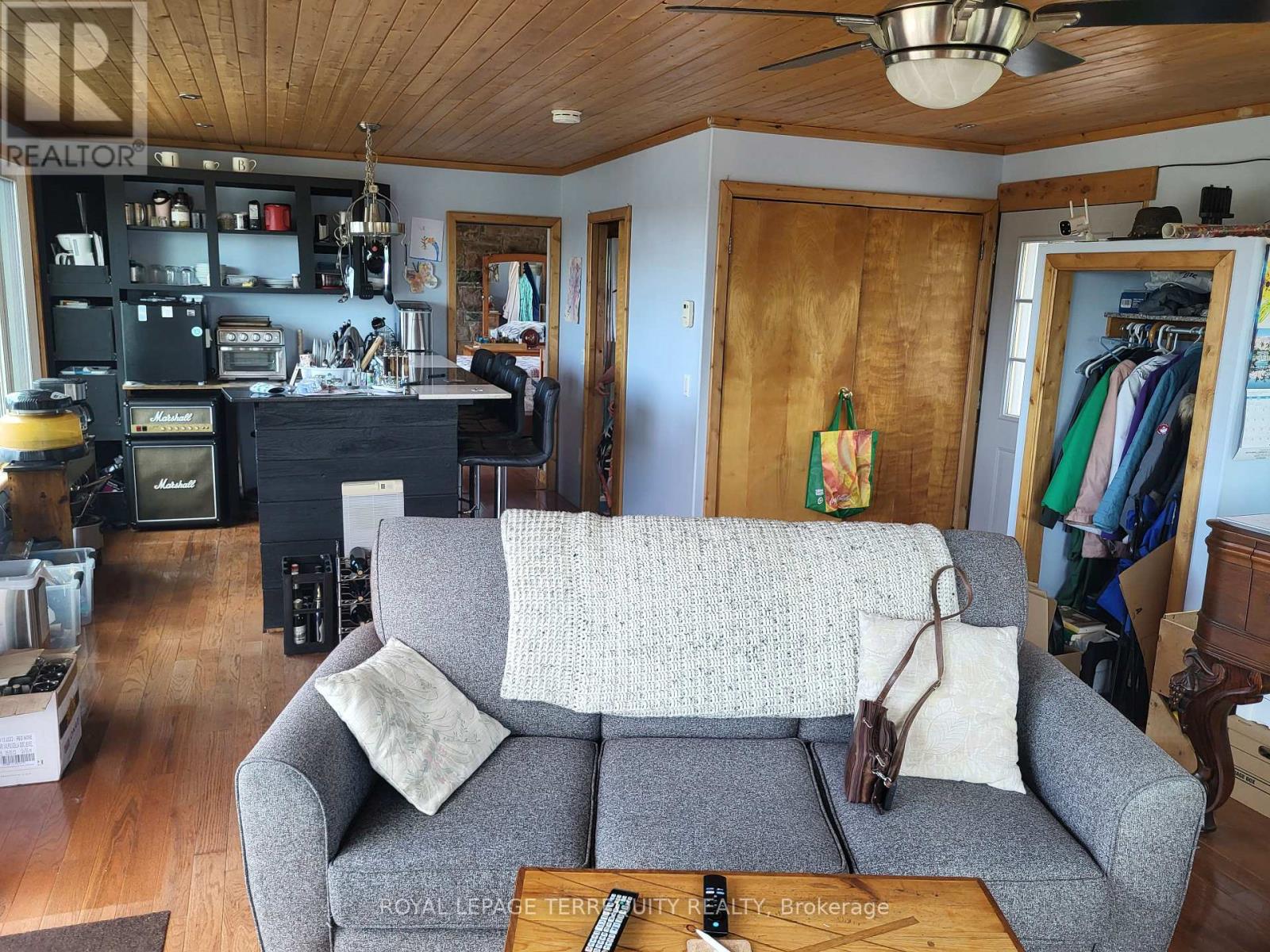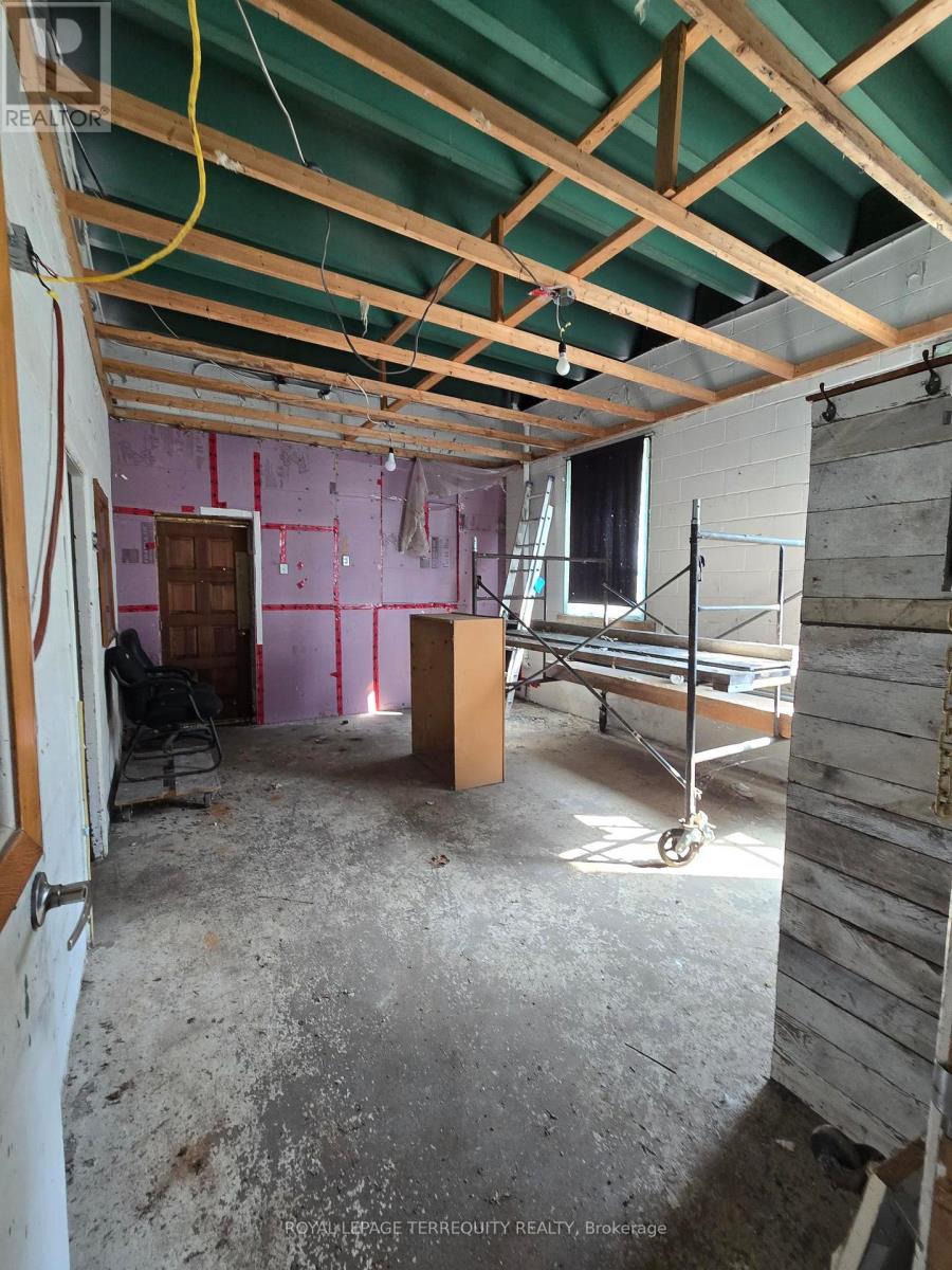 14407 County Road 2 is an irregularly shaped property comprising of five adjacent parcels which combine for 25.71-acres (1,119,953 s.f.) and have a combined 2,912 feet of road frontage on County Road 2, Hunt Road, and Barnes Road. The property is zoned for industrial ME-1 as well as RU. Many possibilities exist for rezoning! The main parcel, being 15.94-acres and located in the northeast section of the property, is developed with a house, an industrial style building, and a storage outbuilding. Great panoramic views of Lake Ontario. The 770 s.f. single-story bungalow features a single bedroom and three-piece bathroom. Originally constructed in 1954 it was extensively renovated in 2016. New windows 2022, New roof 2020, New Electrical 2024, New Heat Pump 2023. A new roof was installed in 2020, windows were replaced in 2022. The three-piece bathroom includes a walk-in shower, ceramic bowl sink set in a wooden countertop and frosted windows. The bedroom has a closet and glass patio door providing access to a rear wooden patio deck. The home is serviced by hydro, a septic tank, and a private well. Heating and cooling is provided by an electric heat pump and a supplemental propane fireplace. The 4,091 s.f. single storey industrial style building features two bays, each equipped with a roll-up drive-in door. The front section has a clear height of 24 ft. high, and the rear is 18 ft. Constructed on a poured concrete and concrete block foundation with slab on grade flooring, the exterior walls are primarily comprised of concrete block with sections of exposed structural steel and wood frames. The roof is a flat, asphalt membrane built-up roof with a gravel ballast. The building is serviced by a private well and septic tank system installed in 2014. It has 200-amp electrical service and is mainly unheated except for the bathroom which has an electric baseboard. There is an old wood fired furnace, but is not currently connected. (id:51158)