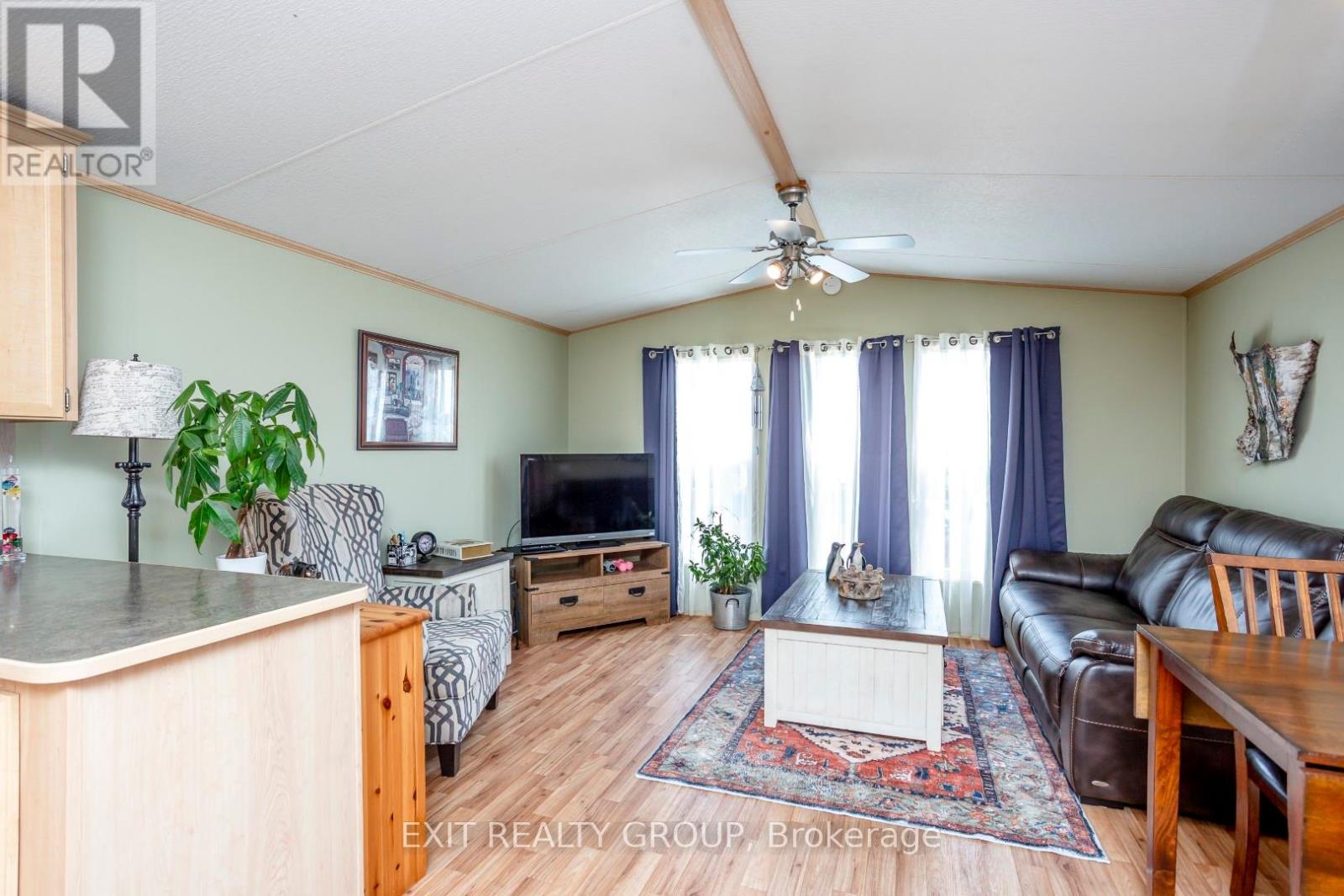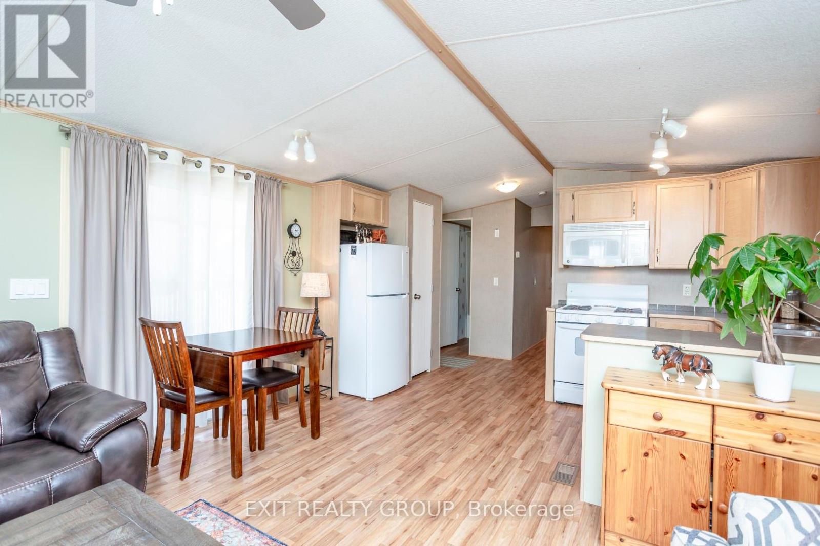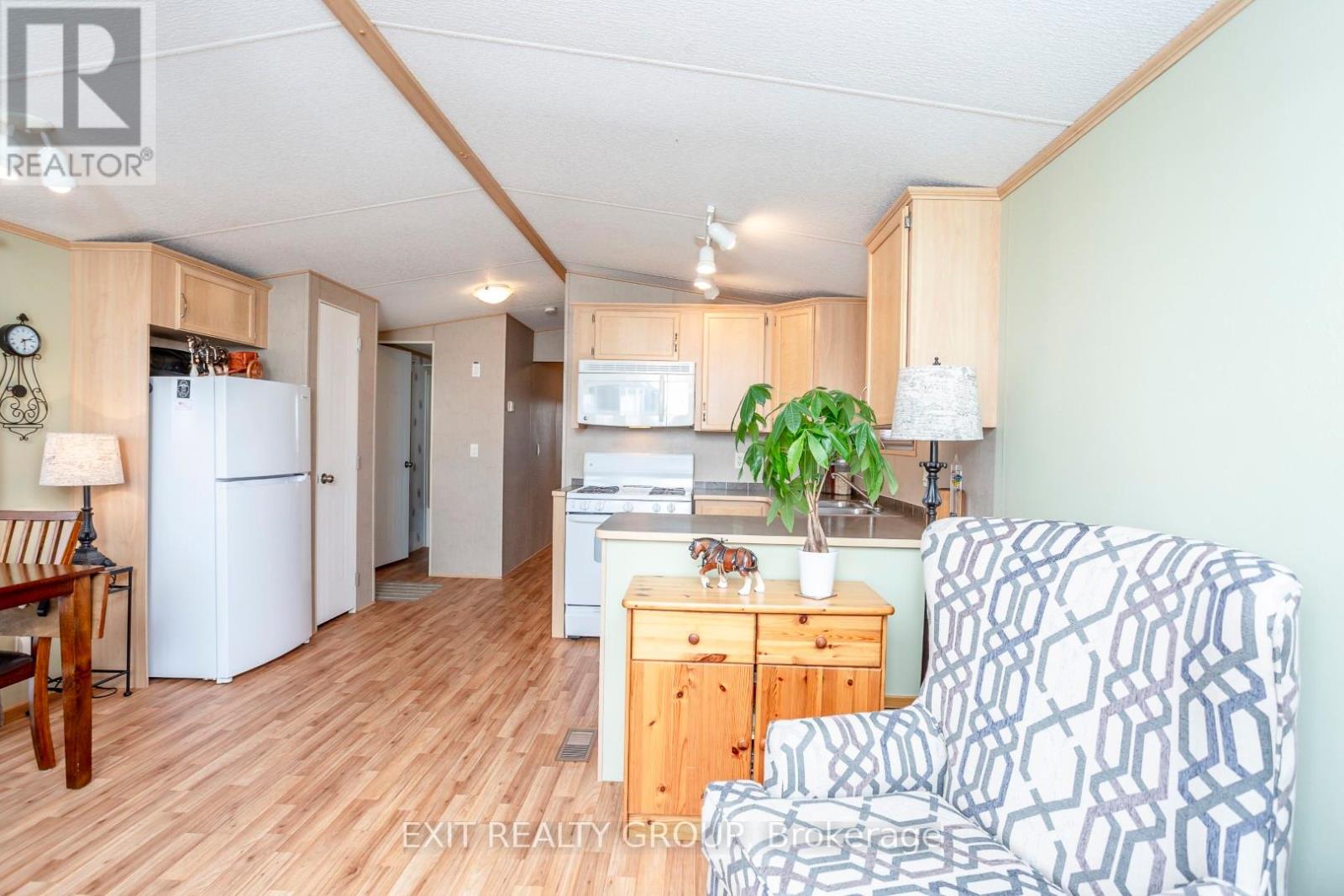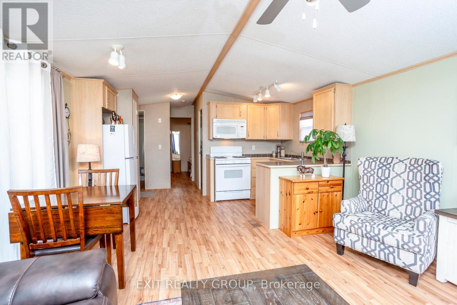 Looking to downsize into a minimal maintenance home and be mortgage free? This unit is cute and cozy in a quiet park in Prince Edward County. Enjoy summer entertaining on the covered deck that runs along the full length of the home. Open concept kitchen / living room with warm and inviting colours running throughout the home. Cathedral ceilings and large windows to keep it light and spacious. The U-shaped kitchen is functional and comes with appliances. 4pc bathroom is conveniently located beside the entrance if out on the deck, and right by the primary bedroom. The Park has saltwater pool to enjoy or go to the club house library. They organize numerous events, ensuring that you will always have opportunities for social engagement. Does this sound like the lifestyle for you. Come one come all. (id:51158)