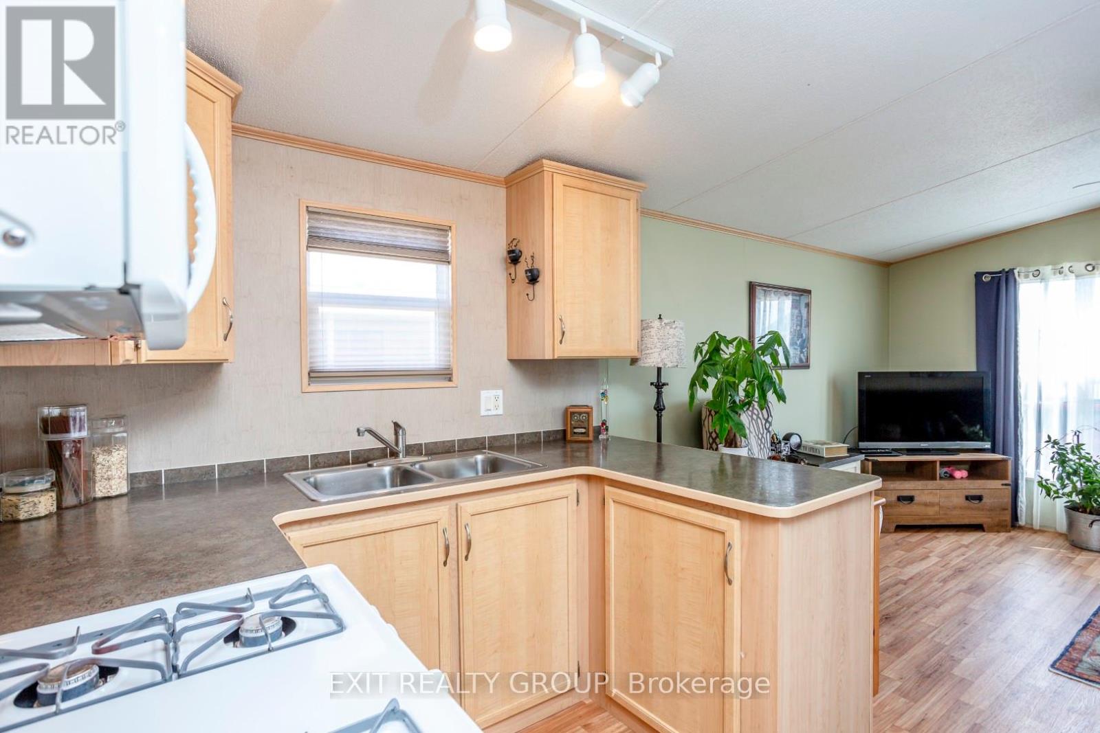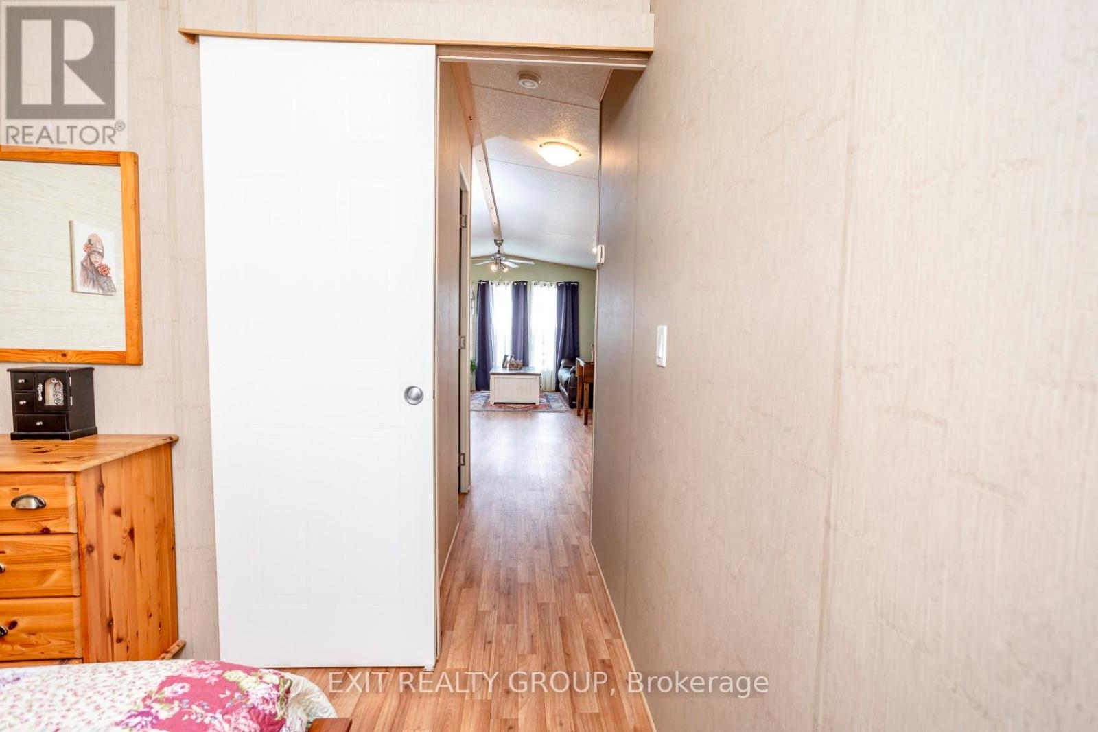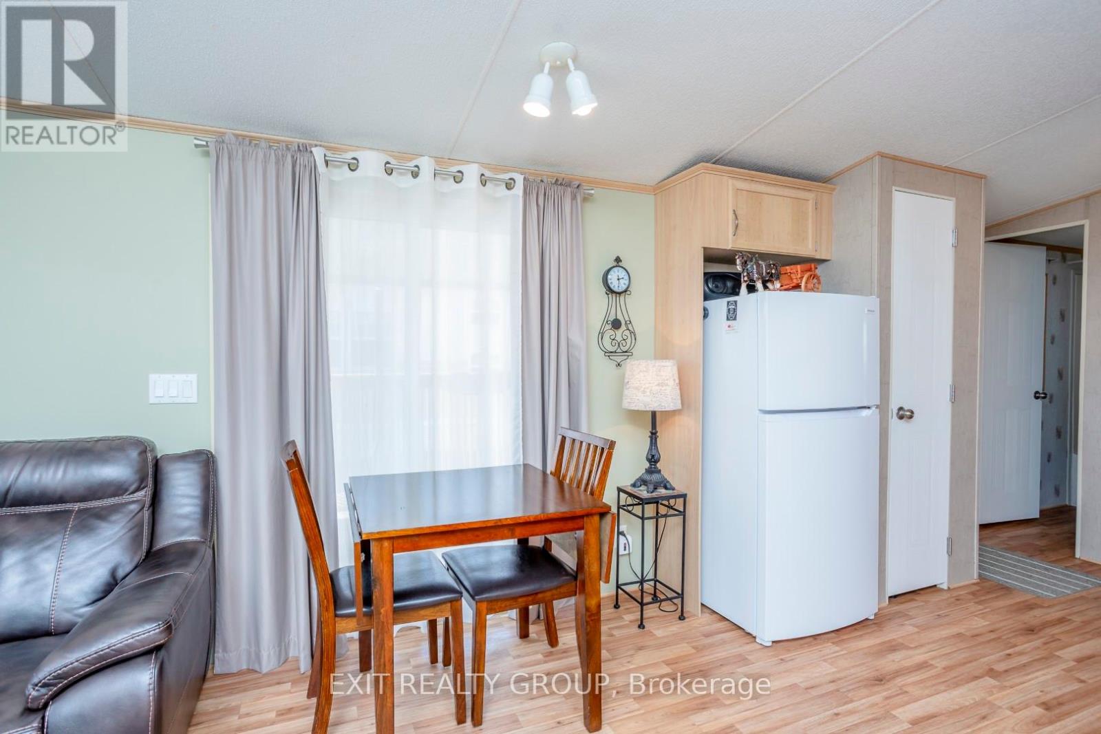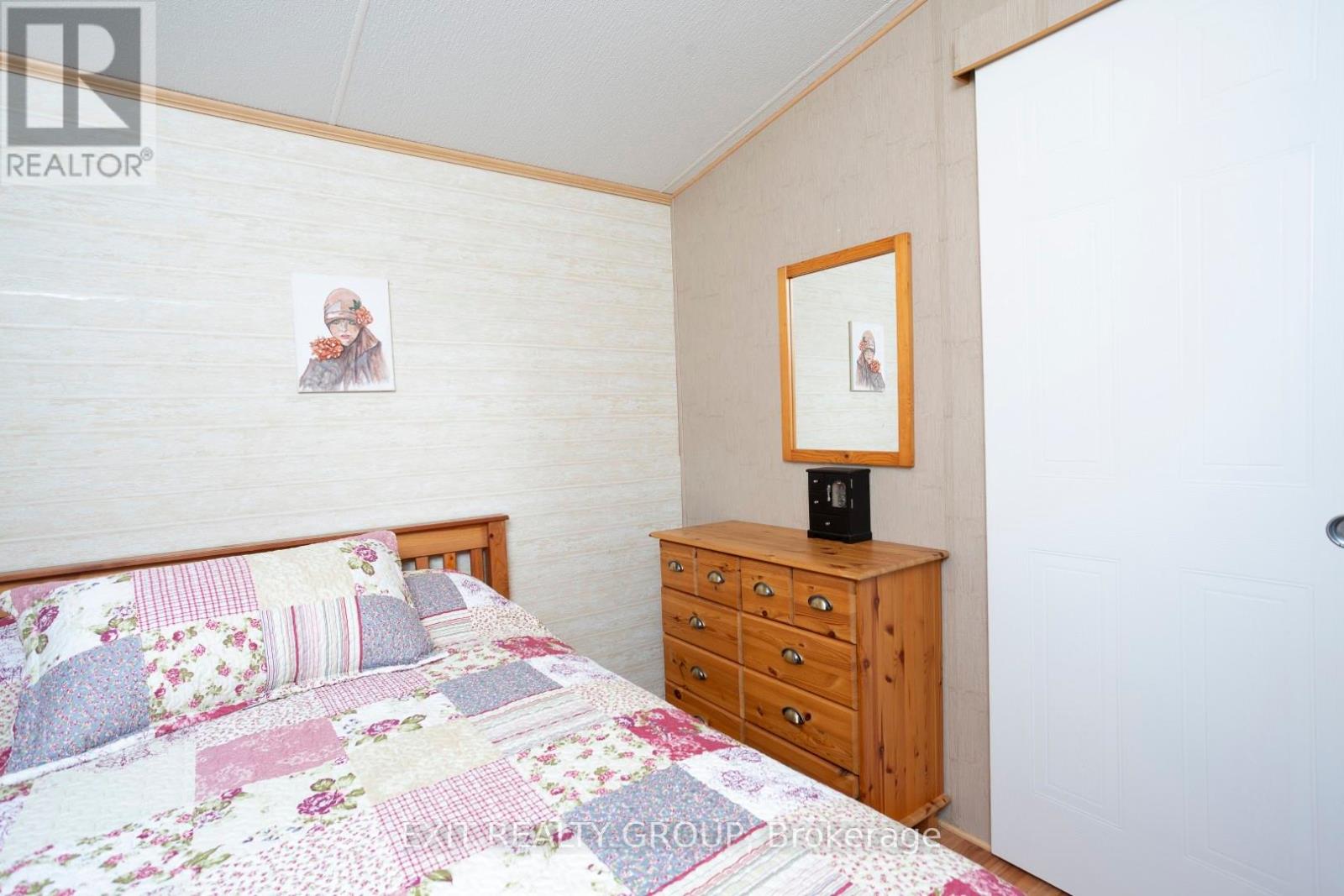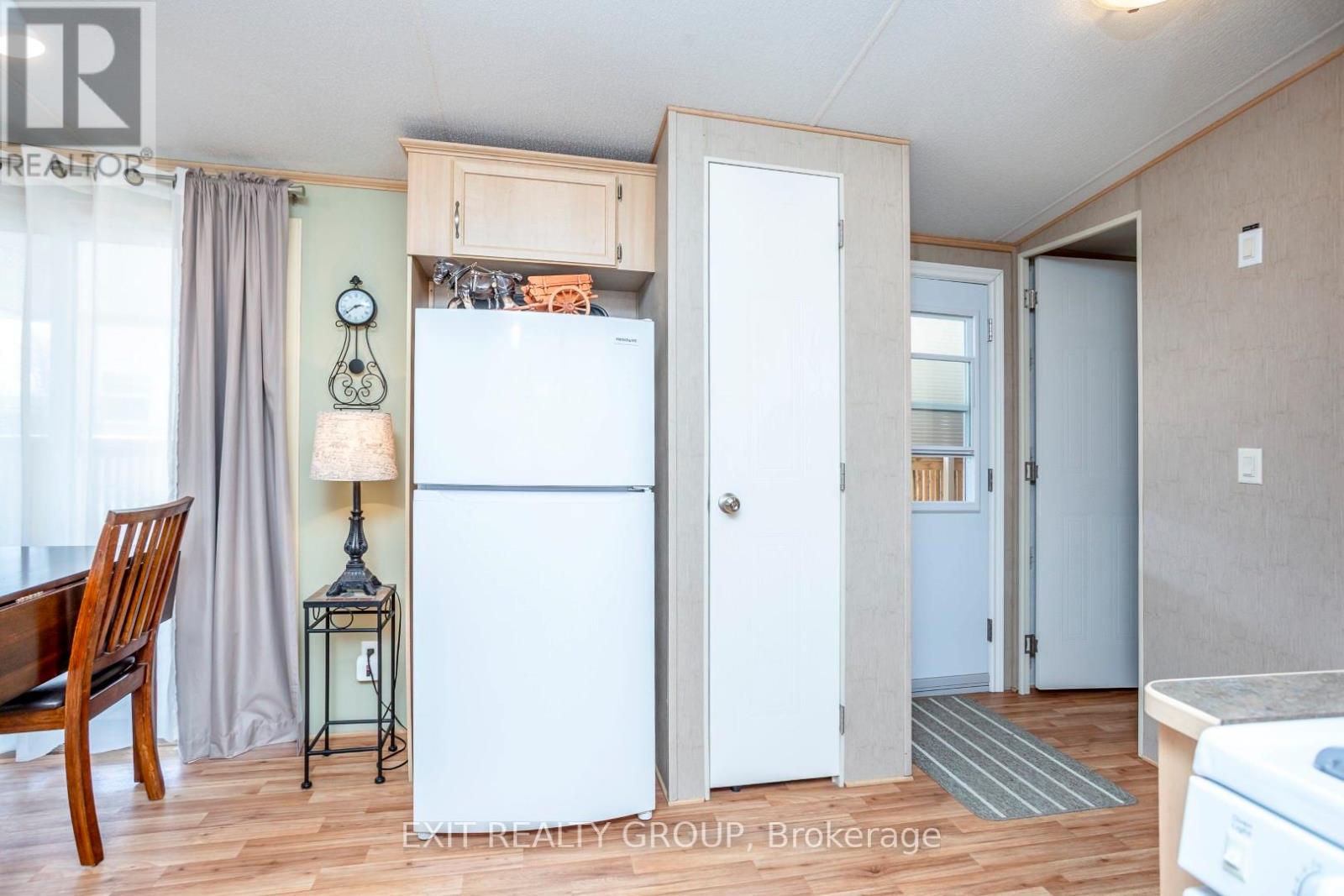 Looking to downsize into a minimal maintenance home and be mortgage free? This unit is cute and cozy in a quiet park in Prince Edward County. Enjoy summer entertaining on the covered deck that runs along the full length of the home. Open concept kitchen / living room with warm and inviting colours running throughout the home. Cathedral ceilings and large windows to keep it light and spacious. The U-shaped kitchen is functional and comes with appliances. 4pc bathroom is conveniently located beside the entrance if out on the deck, and right by the primary bedroom. The Park has saltwater pool to enjoy or go to the club house library. They organize numerous events, ensuring that you will always have opportunities for social engagement. Does this sound like the lifestyle for you. Come one come all. (id:51158)