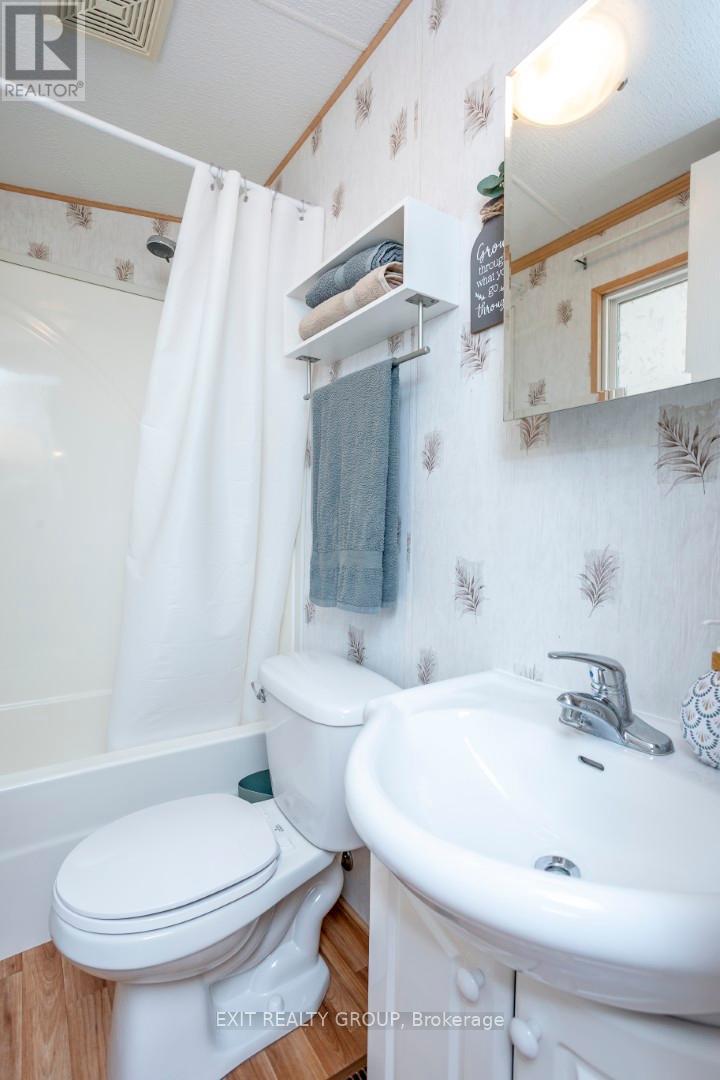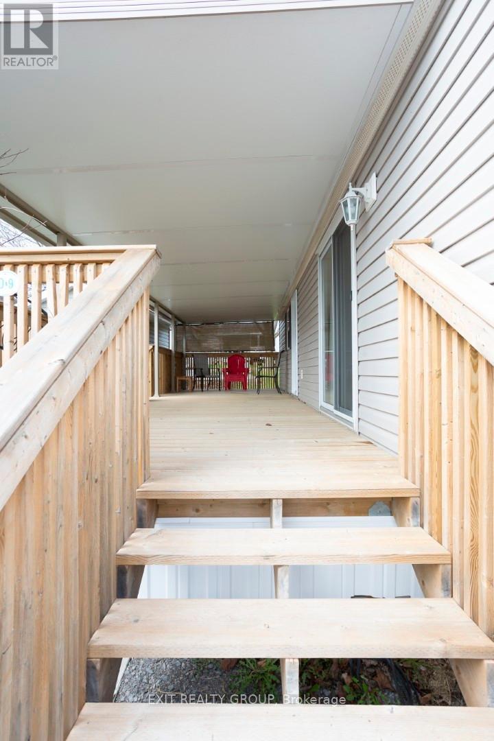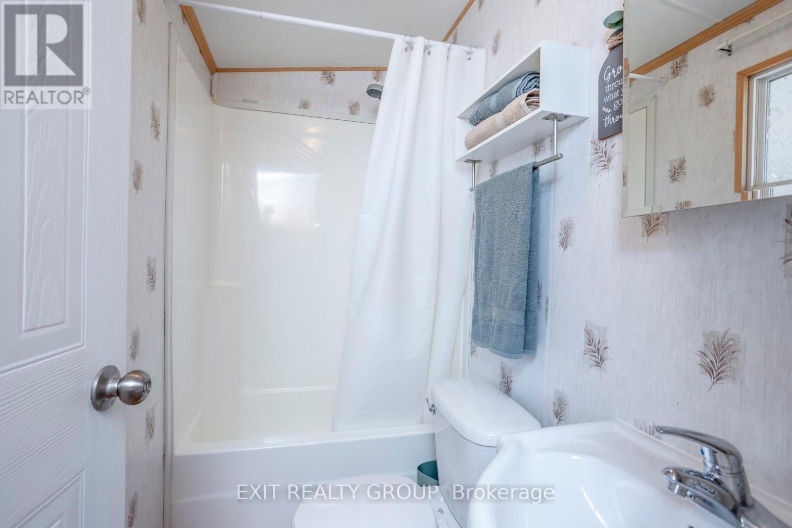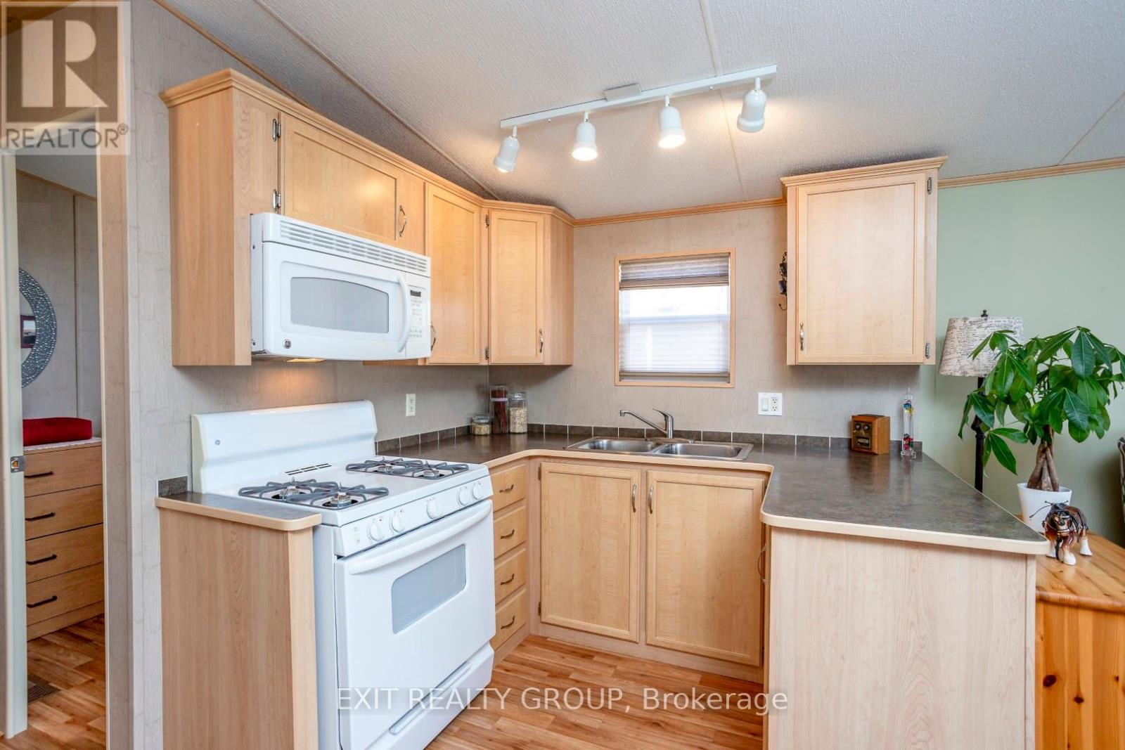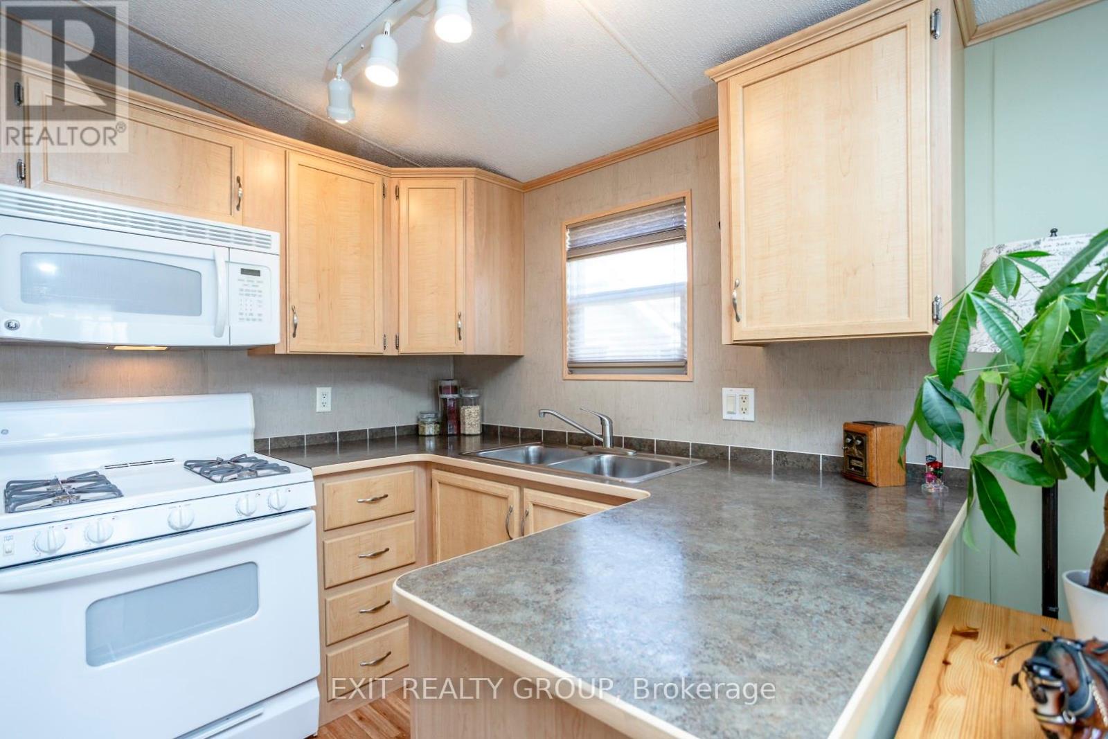 Looking to downsize into a minimal maintenance home and be mortgage free? This unit is cute and cozy in a quiet park in Prince Edward County. Enjoy summer entertaining on the covered deck that runs along the full length of the home. Open concept kitchen / living room with warm and inviting colours running throughout the home. Cathedral ceilings and large windows to keep it light and spacious. The U-shaped kitchen is functional and comes with appliances. 4pc bathroom is conveniently located beside the entrance if out on the deck, and right by the primary bedroom. The Park has saltwater pool to enjoy or go to the club house library. They organize numerous events, ensuring that you will always have opportunities for social engagement. Does this sound like the lifestyle for you. Come one come all. (id:51158)