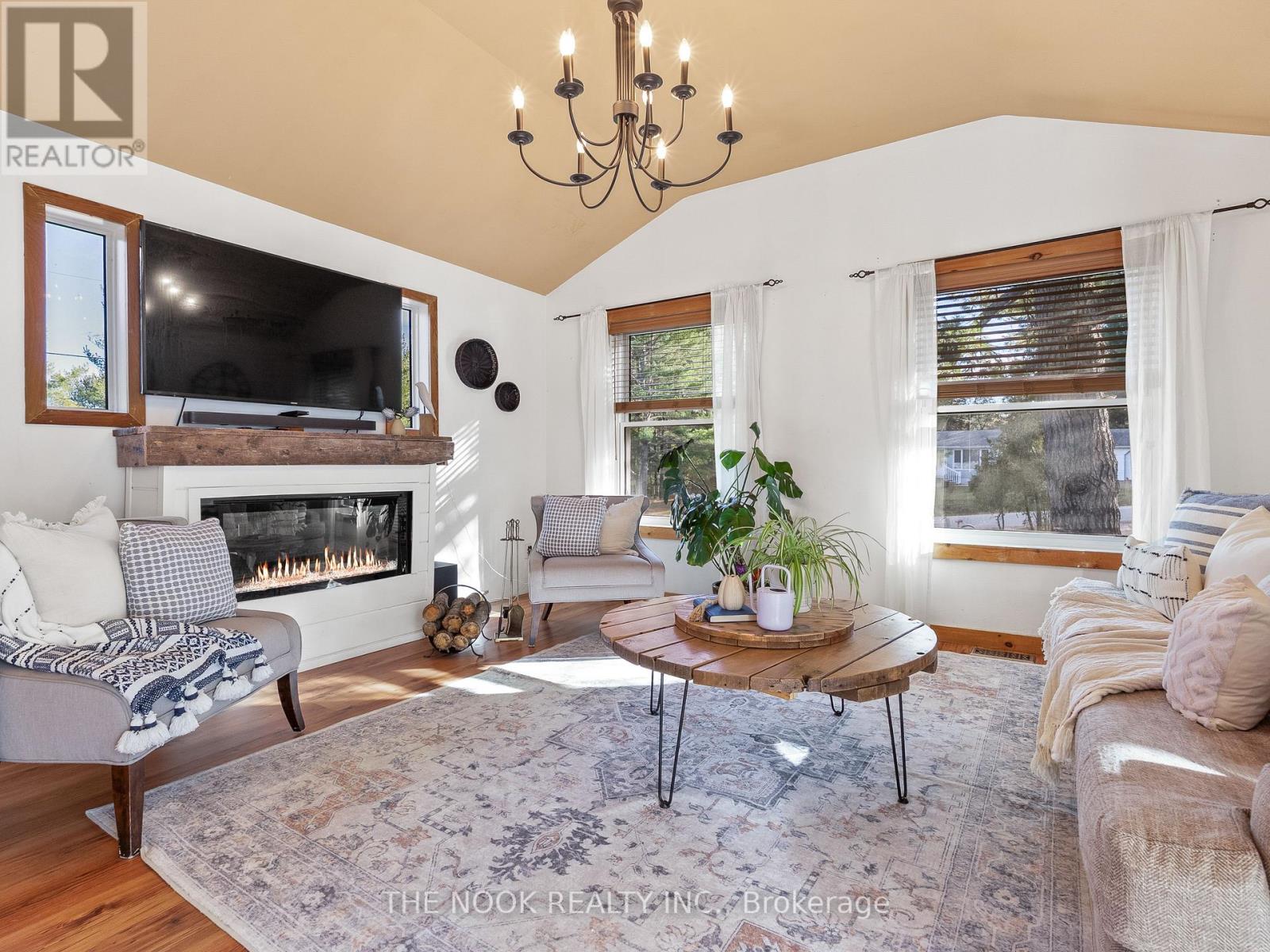 Exuding cottage country charm, this home perfectly captures the essence of relaxed, small-town living just steps from Rice Lake and minutes from the Ganaraska Forest. Surrounded by scenic landscapes and friendly neighbours, it offers year-round adventure with endless opportunities for snowmobiling, ATVing, hiking, fishing, and ice fishing possibilities directly from the property to trails and lake! The property blends rustic character with thoughtful updates, including a roof replaced by Oak Hill Roofing in 2021, and a spacious backyard oasis featuring a hot tub and large deck ideal for summer barbecues or evening stargazing. Inside, the upper level welcomes you with warmth and character. The living room features a vaulted ceiling, rich wood accents, and a cozy electric fireplace, flowing naturally into a charming dining area framed by exposed beams. The kitchen combines style and functionality with abundant solid wood cabinetry, stainless steel appliances, and a convenient island-perfect for meal prep or casual dining. The primary bedroom offers a serene escape, while the second bedroom provides flexibility for guests or a home office. A fully renovated 4-piece bathroom completes the level with modern finishes and natural wood accents that tie the home's inviting aesthetic together. The lower level extends the home's comfort and versatility with a bright walkout foyer and a spacious rec room that's ideal for family gatherings or relaxing by the fire. A bonus bedroom adds space for guests or hobbies, while the laundry and utility rooms keep daily life organized. Ample storage throughout ensures both practicality and ease, making this home the perfect blend of country charm, comfort, and functionality-tailor-made for those who value peaceful living with adventure at their doorstep. (id:51158)
