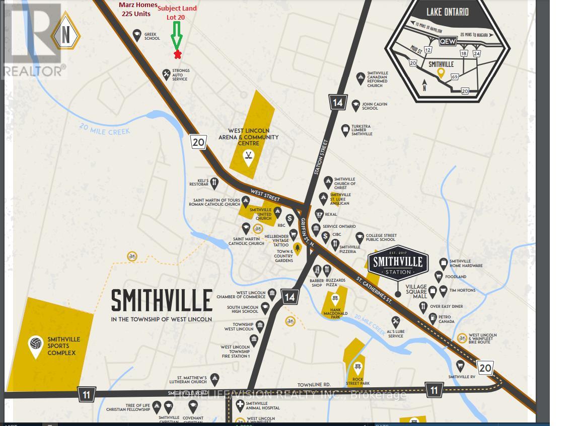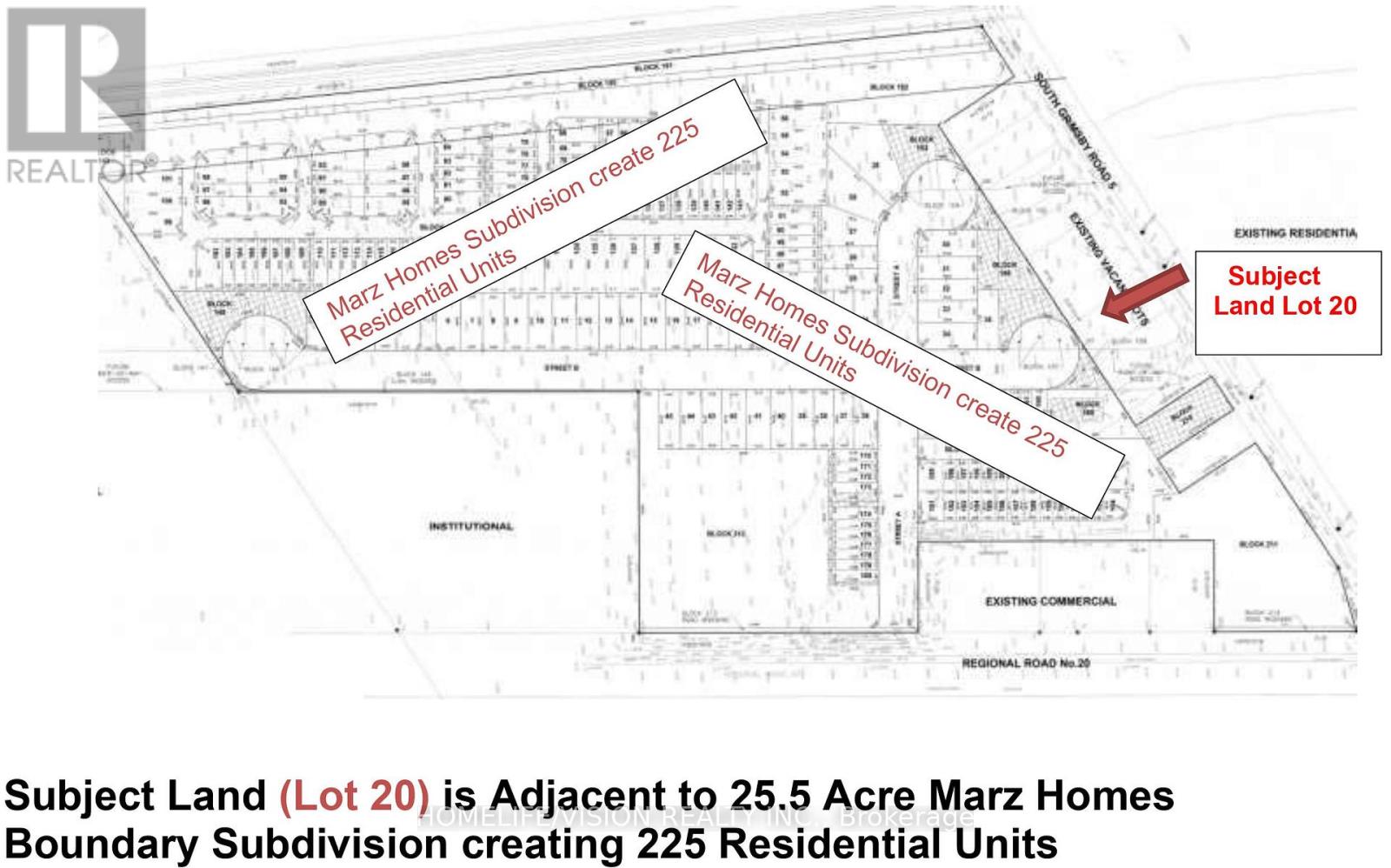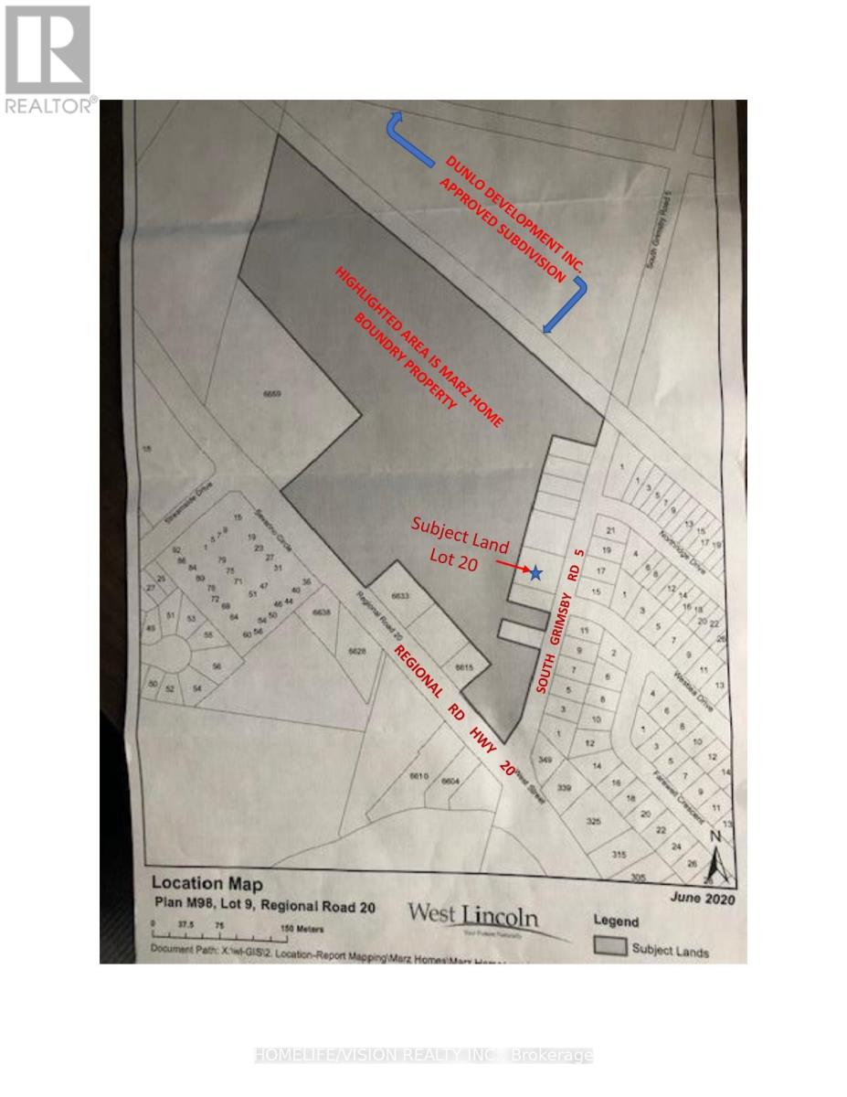 MLS: X10408903 For sale : LOT 20 SOUTH GRIMSBY ROAD 5 ROAD This is an incredible investment opportunity in the prime location of Niagara West Lincoln. This spacious residential corner lot, with a 150 ft frontage, is surrounded by new subdivisions and established homes, with extensive development taking place in the area. The land is subject to rezoning from R1 to R2 and High-Density RM3, which provides flexibility for various residential developments(multiple fourplexes/triplexes, 4-6-story apartment buildings, condominiums, detached/semi-detached/townhouses, rental units, and retirement residences). This is an excellent opportunity for individual buyers looking to build their dream home on a generously sized lot with 150 ft of frontage. It is an amazing demanded area, less than 30 minutes to Niagara Falls and the U.S. border, close to major cities like St. Catharines, Hamilton, Burlington, Oakville, Guelph, and Mississauga. All essential services are conveniently located along South Grimsby Rd 5, with easy access to amenities, shopping, schools, transit, and recreation centers. Don’t miss this unique opportunity to build in a thriving community! **EXTRAS** Buyers To Perform Due Diligence, Obtain A Permit Regarding Any Developments And Verify Information. (id:51158)
