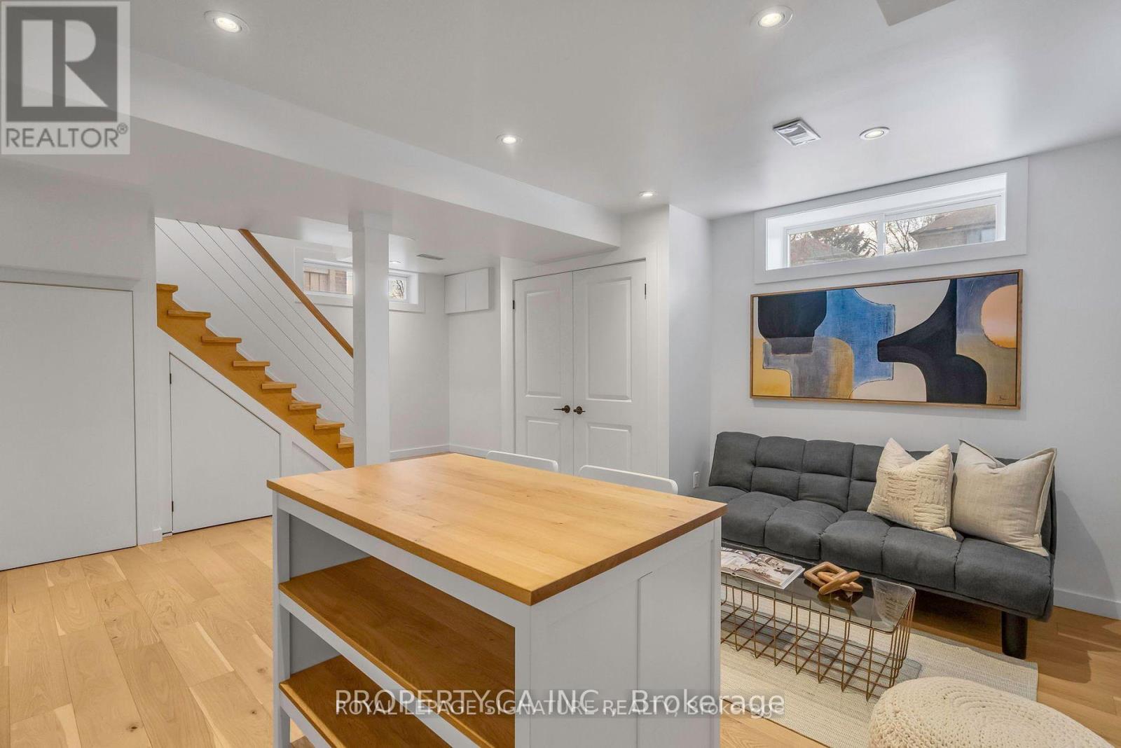 Renovated one-bedroom basement apartment with private entrance and parking spot just steps toLakeshore streetcar, groceries, restaurants, cafés and Humber Lakeshore Campus. Features include an underpinned (high ceiling) modern living room and kitchen with stylish appliances and soft-close cabinetry, spa-like 3-piece bath, and full-size exclusive ensuite laundry. All-inclusive rent with utilities & internet. Available for immediate move-in. (id:51158)