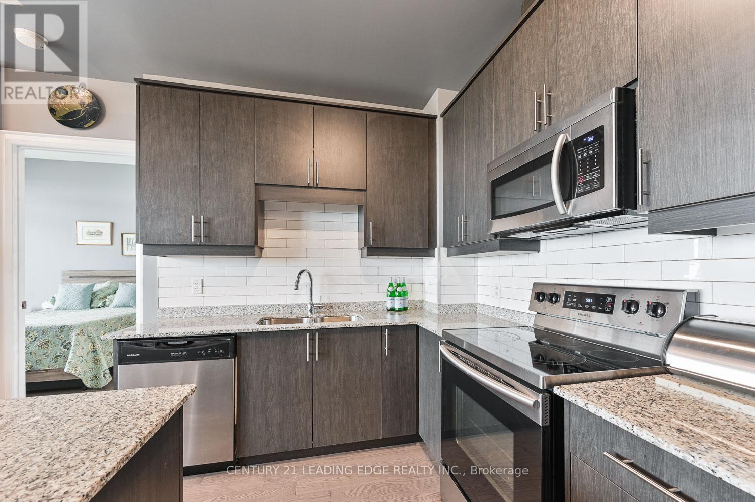Welcome to upscale urban living in the heart of it all. This stunning penthouse suite in UV1, Greenparks prestigious building, offers a rare blend of modern elegance, comfort, and convenience. From the moment you enter the building, you're greeted by a stylish, hotel-inspired lobby with full concierge service. Inside, this one-of-a-kind unit features approximately 1,000 sq. ft. of sophisticated living space, featuring 10-foot floor-to-ceiling windows that flood the home with natural light. The sleek, contemporary design is enhanced by premium finishes throughout. A gourmet kitchen is a chefs dream, complete with granite countertops, stainless steel appliances, and a centre island with breakfast bar. The split-bedroom layout provides maximum privacy. The spacious primary suite includes a walk-in closet and a spa-like ensuite bath. The second bedroom is ideally located on the opposite side of the unit, just steps from the main bath. The showstopper is a sprawling 240 sq. ft. private terrace offering breathtaking, unobstructed panoramic views to the south, east, and west perfect for relaxing or entertaining in style. Located just steps from Mount Joy GO Station, with schools, shopping, and dining nearby, this is luxurious condo living at its finest. (id:51158)