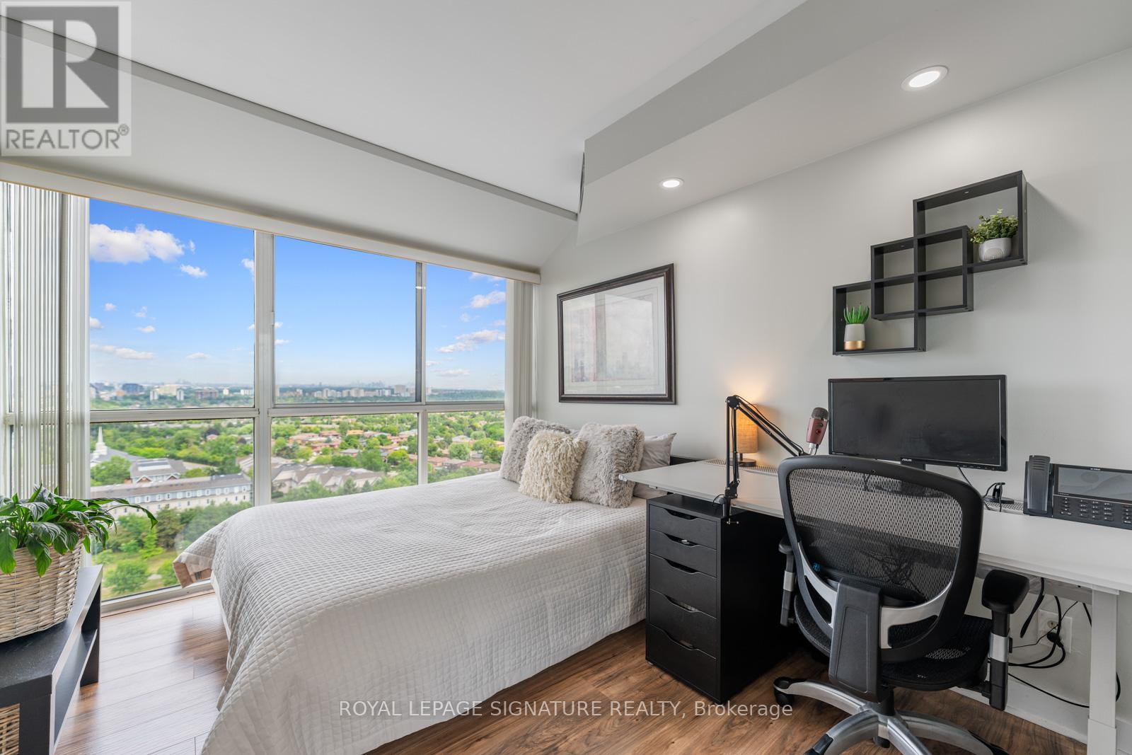 Stunning Penthouse Condo with Breathtaking Lake & City Views!Welcome to this beautifully maintained 2+1 penthouse suite in the highly sought-after Kingsmere on the Park, offering unobstructed views of Lake Ontario and panoramic sunrises from wall-to-wall, floor-to-ceiling windows. This spacious 2-bedroom plus den layout features an open-concept living/dining area, a Modern & Upgraded kitchen with ample cabinetry/ Quartz Countertops and Stainless steel appliances. The generously sized primary suite includes a 4-piece ensuite bath and walk-in closet, complemented by a second full bathroom, ensuite laundry, and additional pantry/storage. This unit comes with 2 premium parking spots and a private storage locker. Residents enjoy exceptional indoor amenities, lush landscaped grounds, an expansive outdoor patio, and direct access to trails and Huron Park. Experience the serenity of a quiet, community-oriented building ideally located near shopping, transit, schools(including UofT), hospitals, and recreation. Amazing amenities: Carwash, Hobby room, Indoor Pool, Gym, Sauna, Bike Room, Guest Suite, Party room, Cinema room. All Utilities are included as well as Cable TV/Internet and Daily Sunrise* (id:51158)