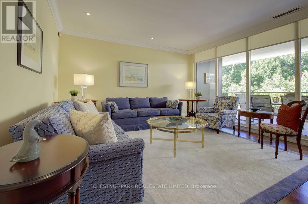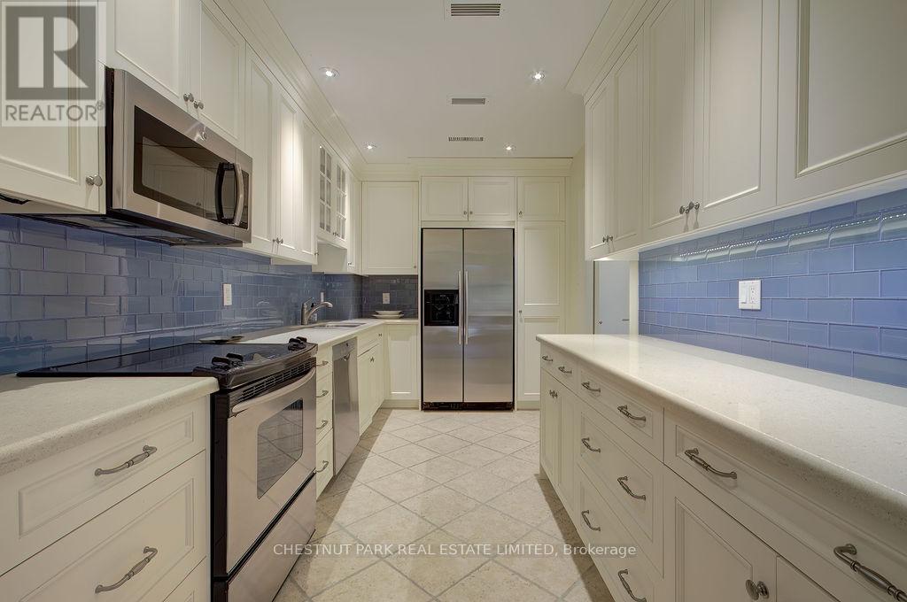 $2,424.50 MonthlySpectacular West-facing Penthouse Suite at highly sought after York Mills Place! Welcome to this truly exceptional 2 bedroom + den penthouse perfectly designed with an ideal layout. This sun-filled residence offers breathtaking treetop views of the ravine from every room. From the moment you enter, you are greeted by an expansive wall of floor-to-ceiling windows and a walkout to the magnificent terrace overlooking lush greenery. The spacious living room with beautiful hardwood floors, is perfect for both relaxed family gatherings and elegant entertaining. Adjacent, is the generously sized dining room with hardwood floors, framed by oversized windows bathing the room with natural light.The impressive kitchen features abundant cabinetry and counter space, pot lighting, under-cabinet lighting, and convenient access from both the dining room and foyer.A beautifully lit hallway leads to the private wing of the suite, accented by pot lights and hardwood flooring, with a powder room and laundry room on the left. On the right, the charming second bedroom offers direct access to the terrace. A generous primary retreat showcases stunning ravine views, a large walk-in closet and a luxurious spa-inspired ensuite with a freestanding tub and glass shower. At the opposite end of the suite, the private den easily functions as a third bedroom for family, guests or perhaps a caregiver. Adjacent to the den is a walk-in closet and a lovely 4-piece bathroom creating a complete and private space within the home.The pièce de résistance is the extraordinary terrace, a true outdoor oasis ideal for al fresco dining, entertaining, and enjoying magnificent views and sunsets.This one-of-a-kind suite includes two parking spaces and one locker. (id:51158)