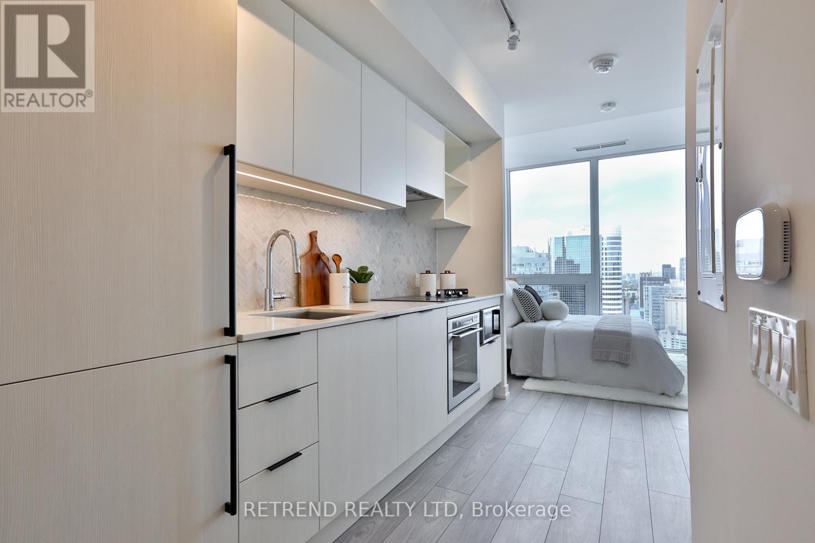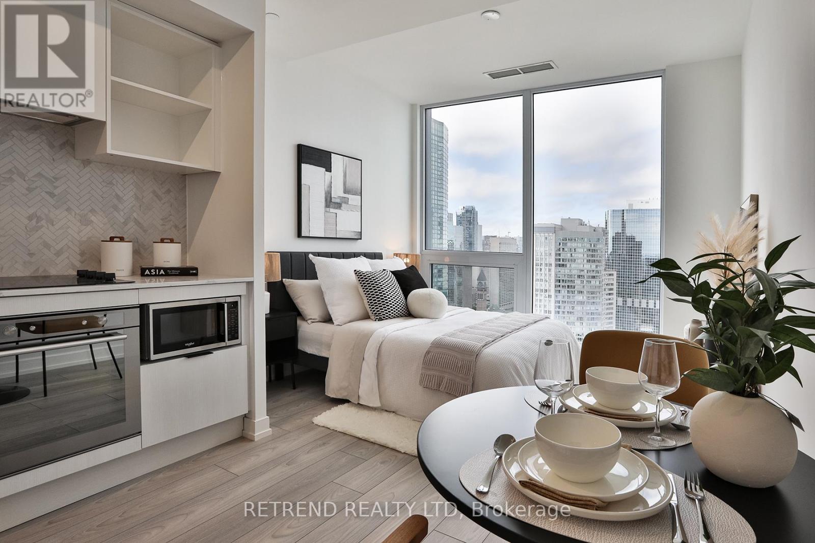 Experience Urban Sophistication in This Exceptional Penthouse Studio! Welcome to this rare penthouse studio suite in the heart of downtown Toronto. Featuring floor-to-ceiling windows that flood the space with natural light, this suite showcases breathtaking panoramic views of Toronto's dynamic skyline. The open-concept layout is thoughtfully designed to maximize both comfort and functionality, creating a seamless blend of modern style and everyday practicality. Sleek cabinetry, premium finishes, and a contemporary kitchen elevate the space, while the efficient floor plan ensures no wasted space. Ideally located just steps from Dundas Square, the Eaton Centre, Toronto Metropolitan University, and the TTC subway and streetcar, you'll enjoy unparalleled convenience surrounded by Toronto's best shopping, dining, and entertainment options. This penthouse-level gem offers the perfect balance of modern design, natural light, and unbeatable downtown access. It is a rare find in one of Toronto's most vibrant neighbourhood. (id:51158)