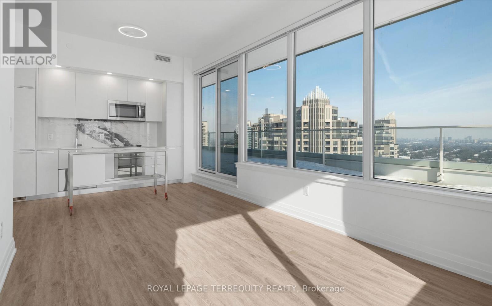 Rare Huge Terrace. Two bedroom, 2 baths Penthouse suite. 10 ft Ceiling height, Beautiful Bright, Smart design, like new. Suite is full of light. Extraordinary south & east wide open view at The Diamond on Yonge, by award winning builder. Upgraded finishes, luxury modern quality throughout. Meticulous modern layout. Open kitchen/Living/Dining, window coverings incl. Two parking spaces & 1 locker. 91% walkscore, in the heart of the best of North York. The Diamond sits in a protected quite enclave, one-minute walk to Yonge st. TTC, Subway, grocery, shopping, restaurants, all services & entertainment + Parks at your doorstep. Close to Hwy. Building Amenities: Sauna, gym, changerooms, party room w/ Kitchen/Dining, yoga room, theatre, 2 quest suites, outdoor garden bbq area. 24-Hour concierge. Photos are of vacant suite & virtual staging. Huge 48' x 9' Terrace, + Small 2nd Balcony. (id:51158)