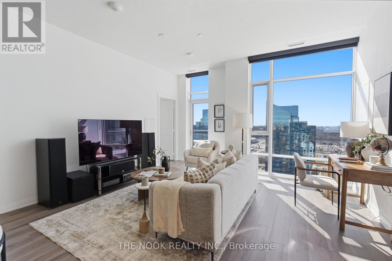 $1,383.05 MonthlyPenthouse living without the downtown price tag! Welcome to this stunning Tridel-built corner penthouse, where luxury, space, & breathtaking views come together in one of the building's most coveted offerings. Spanning 1,284 sq ft with 3 spacious bedrooms & 3 bathrooms, this top-floor, south east exposure residence features soaring 10 ft ceilings and floor-to-ceiling windows that fill the home with natural light showcasing unobstructed views of Toronto's skyline. Enjoy not only one but two private balconies, including one off the primary bedroom. Thoughtfully upgraded throughout, enjoy wide plank laminate flooring, fresh designer paint & new upgraded light fixtures. The primary retreat offers a walk-in closet & spa-inspired ensuite with soaker tub & glass shower, while the second & third bedrooms share a convenient Jack & Jill ensuite. The kitchen impresses with full-height cabinetry, quartz counters, full-size stainless steel appliances & upgraded faucet (2025). A true standout feature is the walk-in laundry room with storage, cabinetry, & full size laundry sink, rarely found in condo living. Additional highlights include two programmable thermostats for two HVAC fan coil units with ERV system & a suite alarm system. Premium window coverings include 3M UV/thermal film (2022) and 10 ft designer cellular & roller combination blinds. Enjoy the perks of an exclusive oversized P1parking space with dedicated garage door, ideally located beside the elevator lobby, along with convenient access to a privately owned locker on same level. Enjoy resort-style amenities: fitness centre, swim spa, sauna, theatre room, billiards, party room with terrace and fireplace, guest suites, BBQ areas, lounges, smart elevators, and 24/7 concierge. Bell Fibre 3 Gbps internet included! Steps to Goodlife Fitness, TTC, 3 mins to Don Mills subway & Fairview Mall, with easy 401/404 & downtown access. An exceptional blend of luxury, lifestyle, and convenience, this is penthouse living redefined! (id:51158)
