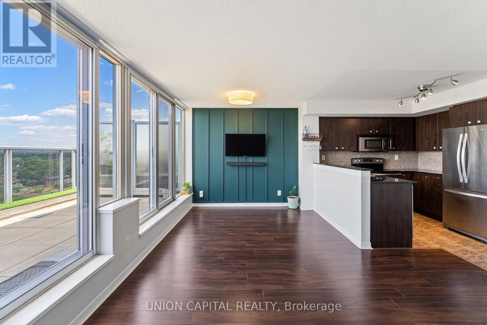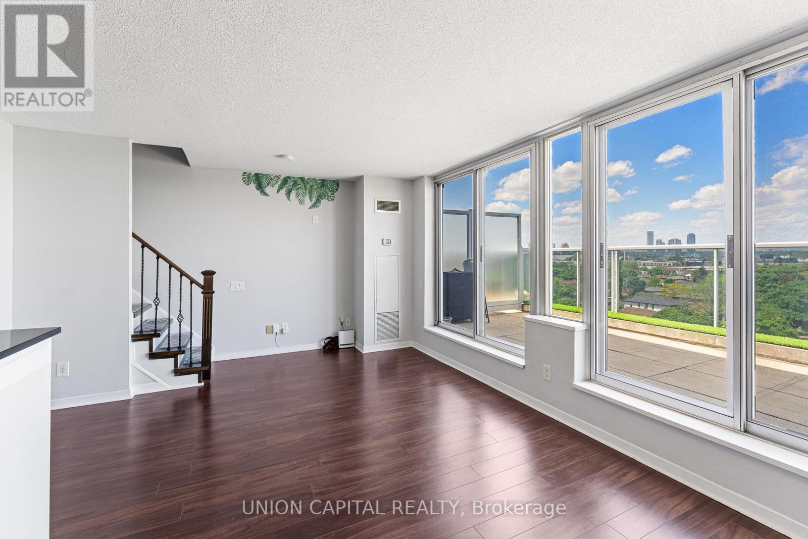 Welcome to this stunning 2-storey penthouse suite, offering 862 sq ft of stylish urban living. The upper level features two spacious bedrooms, each with its own Juliette balcony, and two bathrooms, including a private 4-piece ensuite in the primary bedroom. Take in the beautiful city views on the walk out terrace from the living area! There is 1 parking spot included. The building offering a concierge, indoor lap pool, sauna, gym and party room. Located In A High Demand And TTC Accessible Neighbourhood. Minutes To Hwy 427/401/QEW. Steps From Cineplex, Restaurants, Ikea, Costco, Banks, Sherway Gardens, Walmart & Much More. 5Minute Drive To Kipling TTC And Mimico Go Station. Islington And Queensway Bus Stop A Short Walk Away. 7 Minute Walk To Sobeys. 15 Minutes To Downtown. Tenant pays hydro. Pictures taken before current tenant moved in. (id:51158)